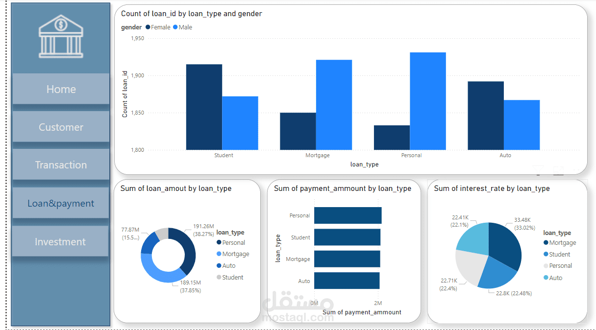 قمت بتنفيذ مشروع تحليل بيانات بنك باستخدام power pi و عمل داش بورد