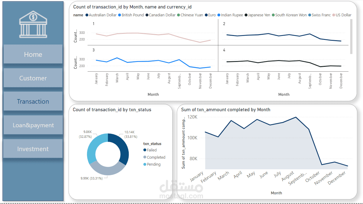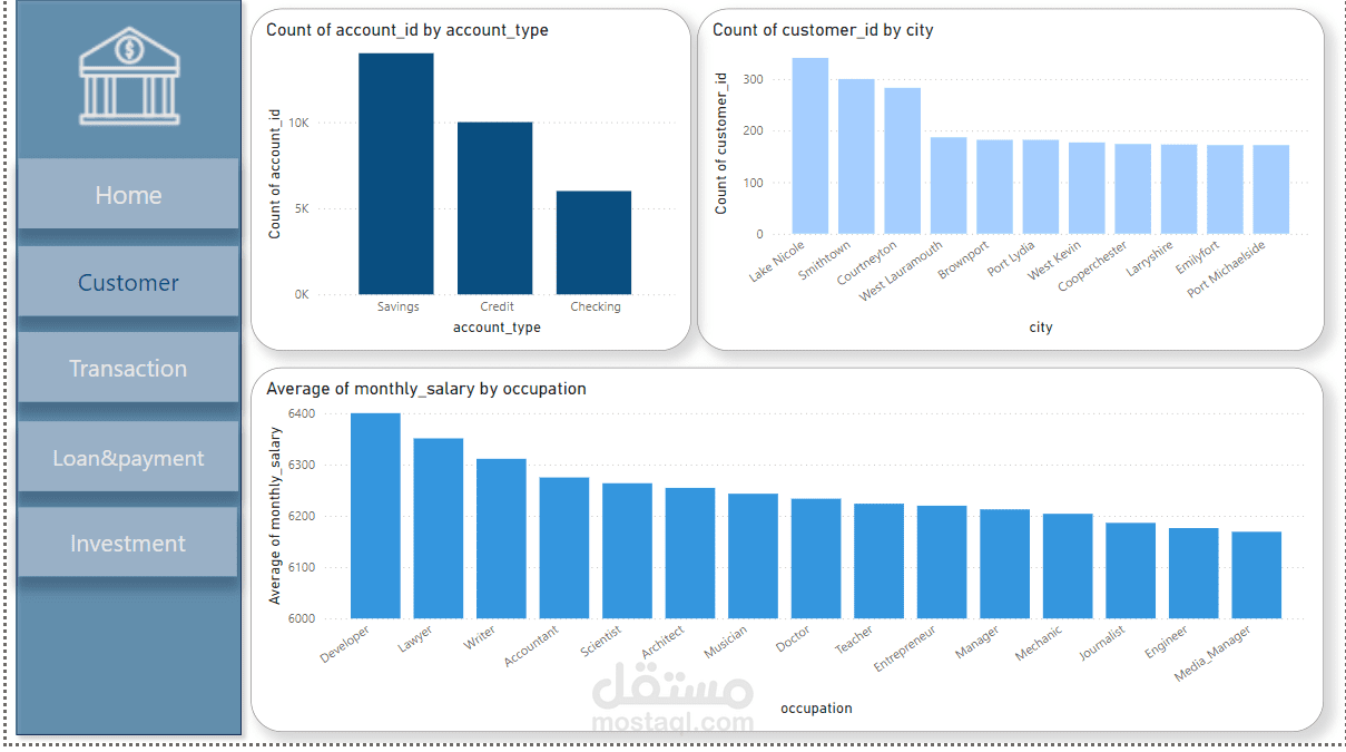 حيث قمت بخدمة إنشاء لوحة تحكم (Dashboard) لنظام بنك: