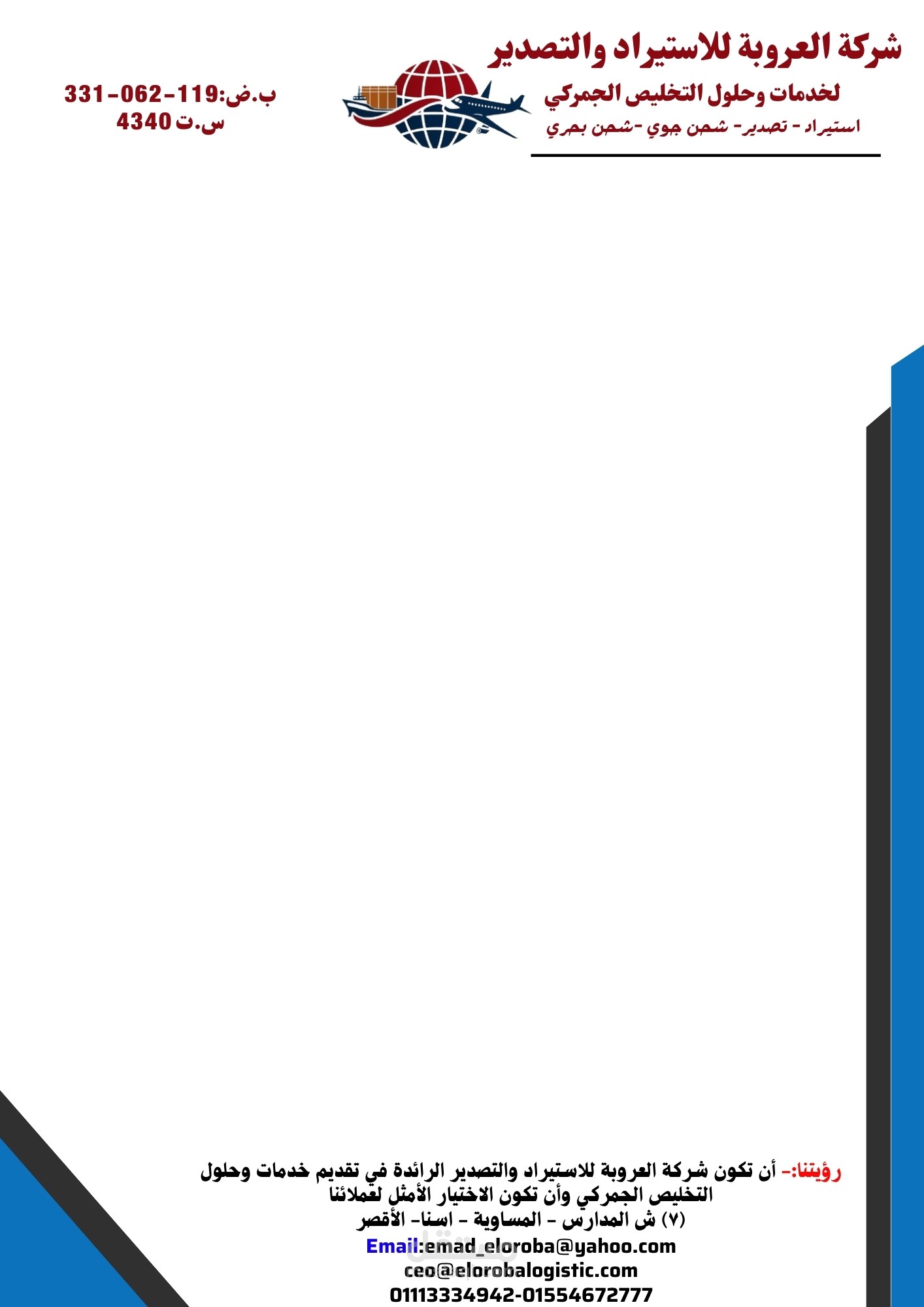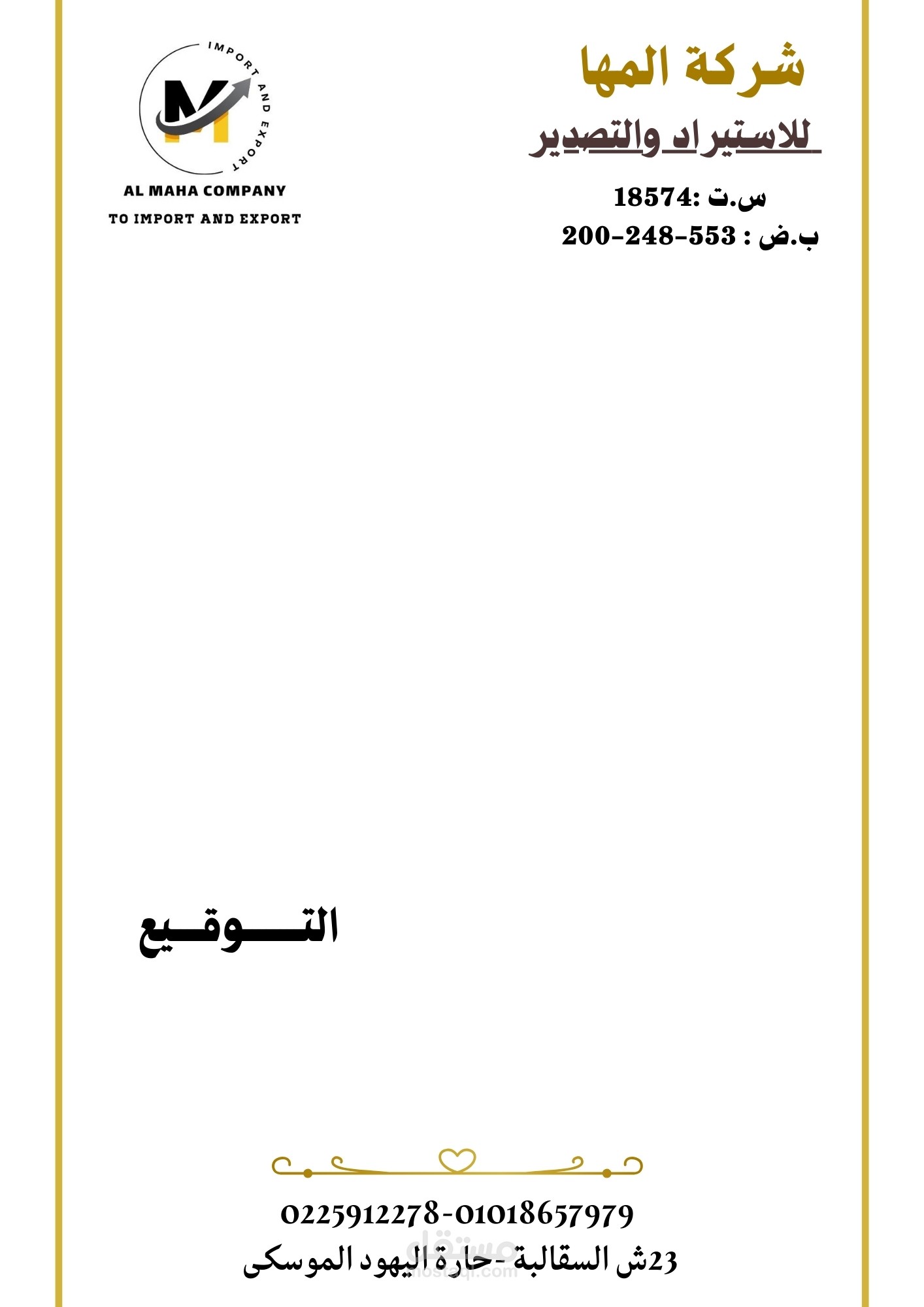 "لو بتدور على خطابات شركات مختلفة أو تصميم مميز يخلّي شغلك يظهر بأحسن شكل، فأنا هنا عشان أساعدك! اللي معروض هنا مجرد لمحة بسيطة من شغلي، وعندي تصاميم أكتر متنوعة وحصرية محتفظ بيها حفاظًا على حقوق الملكية. تقدر تتواصل معايا لو حابب تشوف نماذج أكتر أو عندك فكرة خاصة عايز تحولها لتصميم احترافي أنا جاهز أساعدك في كل خطوة، وتأكد إن الشغل هيكون على أعلى مستوى! "