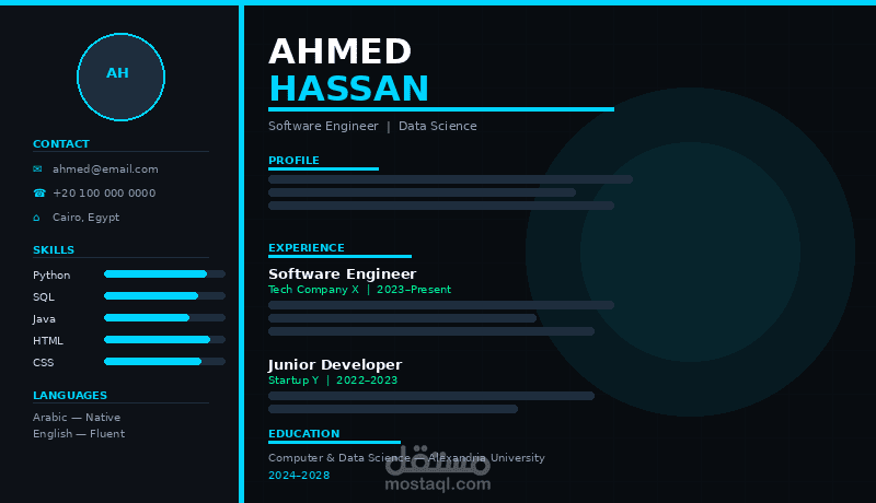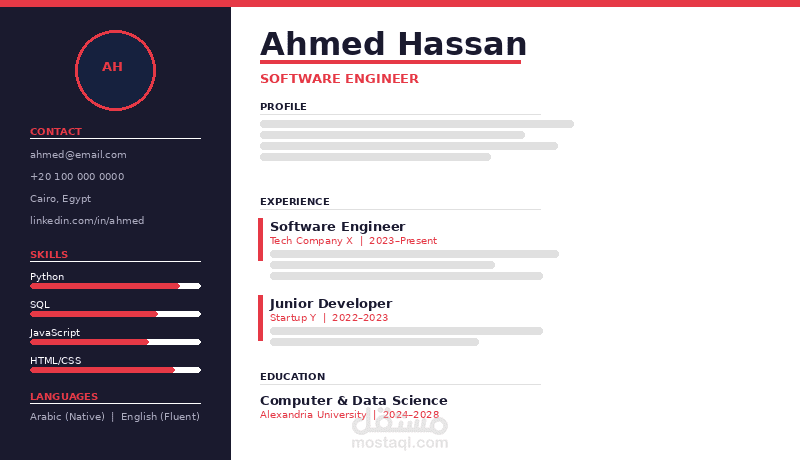 تنسيق خاص حسب المجال (IT – Business – Engineering – Medical – Student CV)