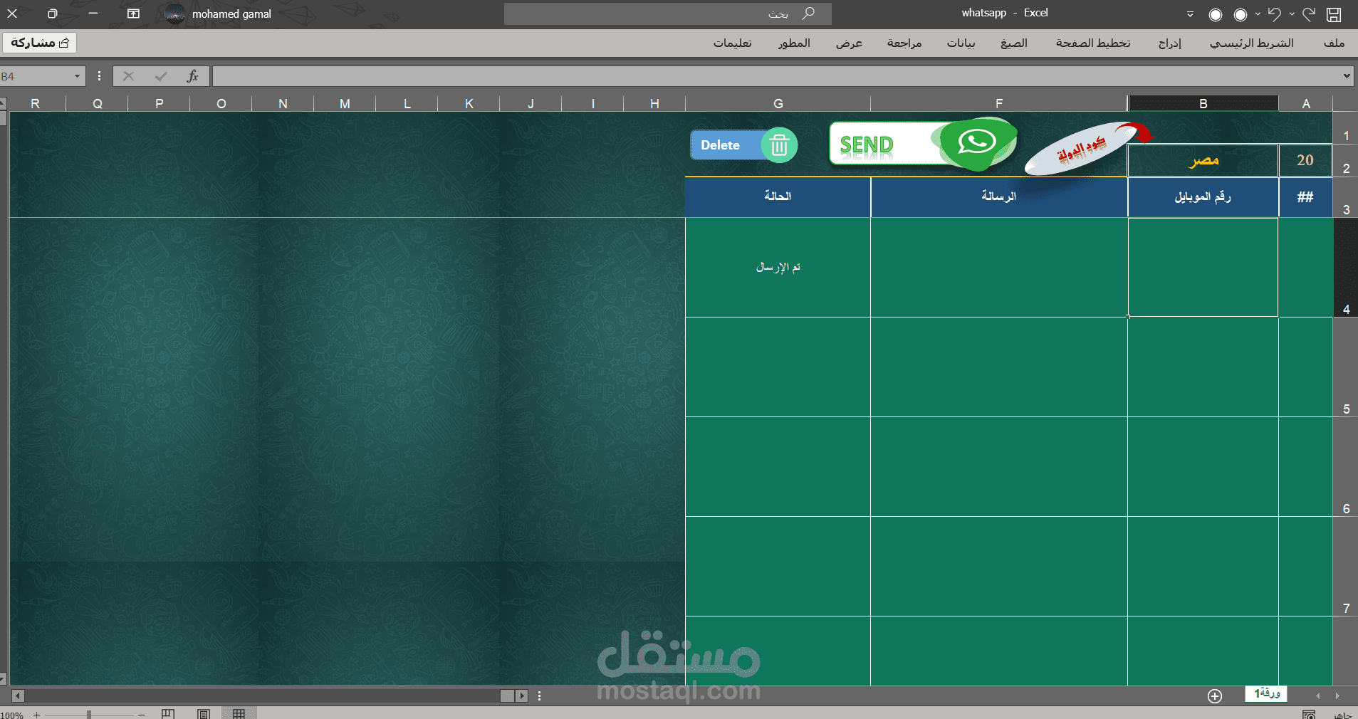 نقدّم لك شيت Excel احترافي مصمم خصيصًا لتسريع وإنجاز عملية المراسلة الجماعية والفردية عبر واتساب بكل سهولة.