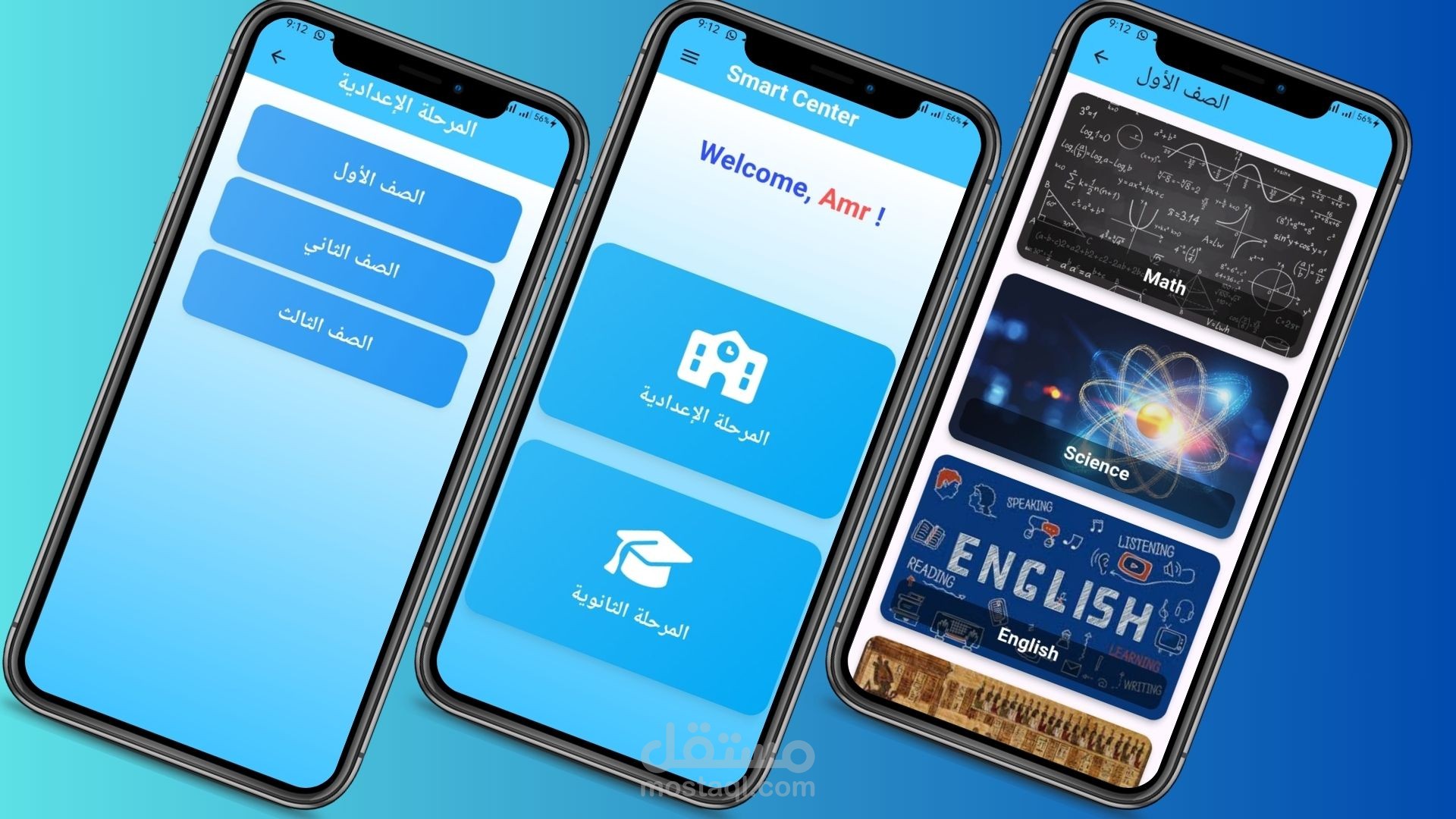يمكن للطلاب اختيار صفوف تعليمية محددة، من الصف الأول إلى الصف الثالث، لكل مرحلة، ثم اختيار المادة والمعلم الذي يرغبون بالتسجيل لديه.