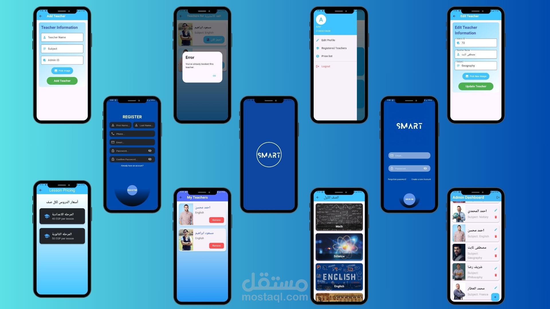 الهدف من المشروع: يهدف مشروع "Smart Center" إلى تقديم منصة تعليمية مبتكرة تتيح للطلاب التسجيل في دروس ومعلمين مختلفين بطريقة سهلة وفعالة عبر تطبيق مخصص. يوفر هذا التطبيق للطلاب إمكانية حجز الدروس مع معلمين من اختيارهم ومتابعة معلومات الحجز بطريقة سلسة، بالإضافة إلى تمكين المعلمين من إدارة طلبات الحجز الخاصة بالطلاب.