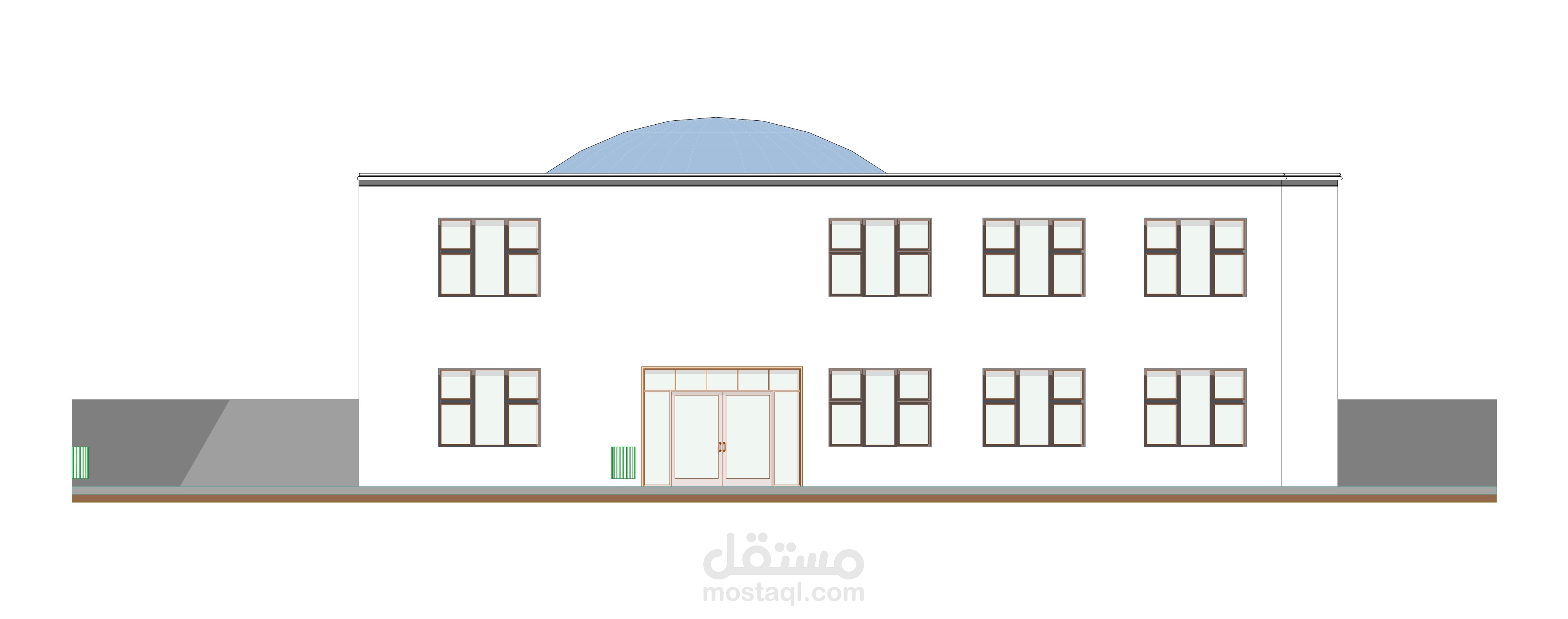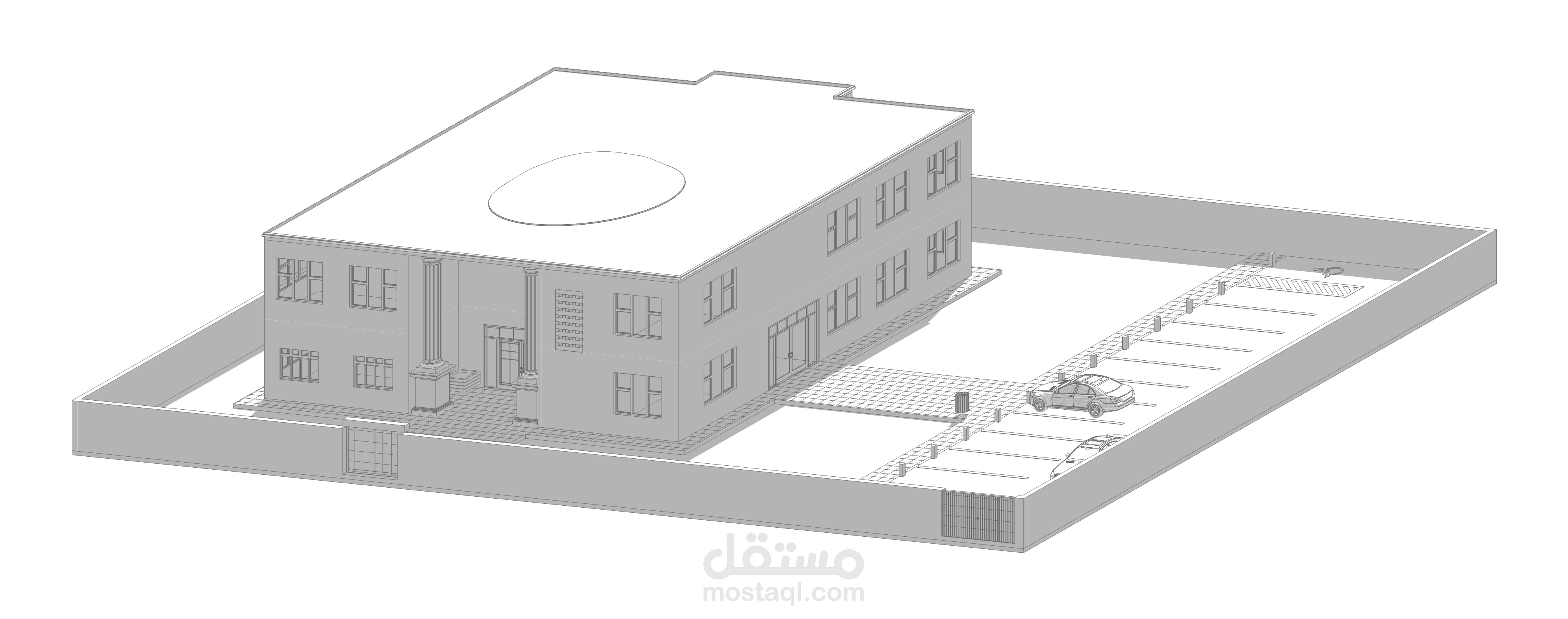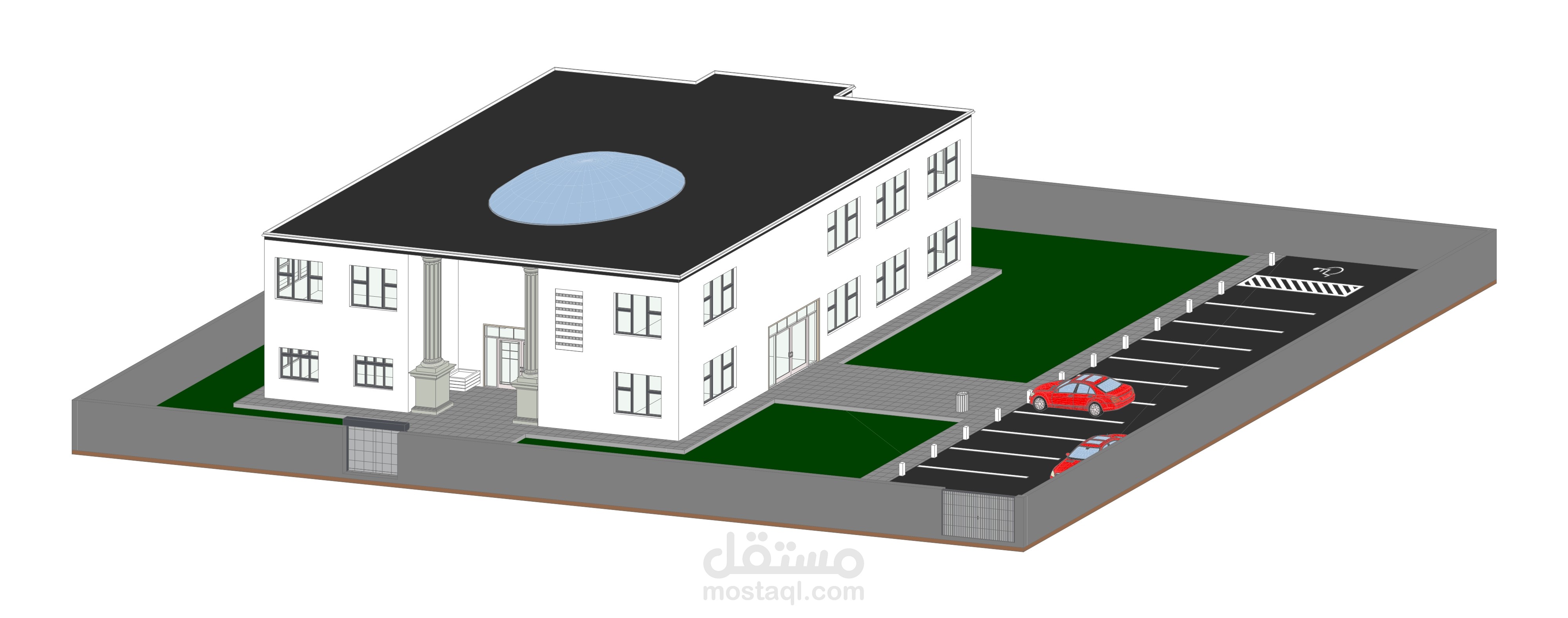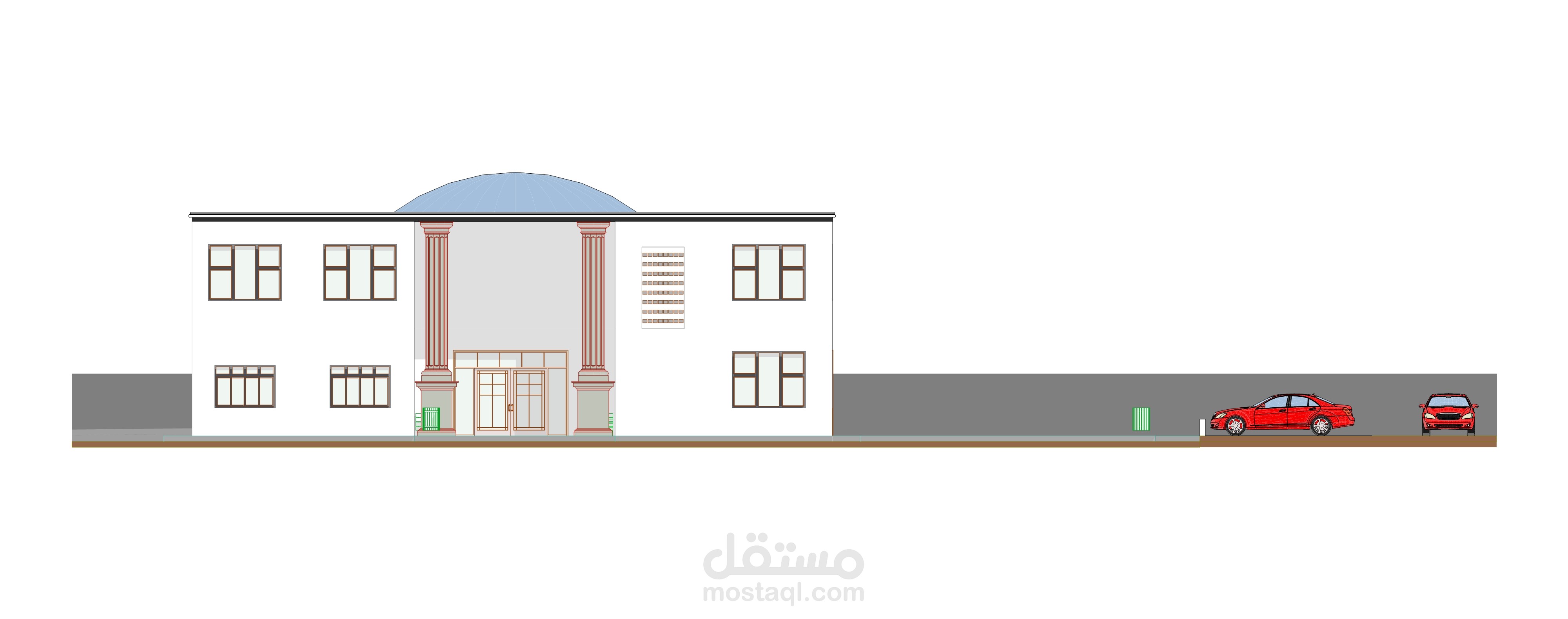 التصميم الهيكلي لمبنى مجتمعي يحتوي على الطابق الأرضي والطابق العلوي (R+1)