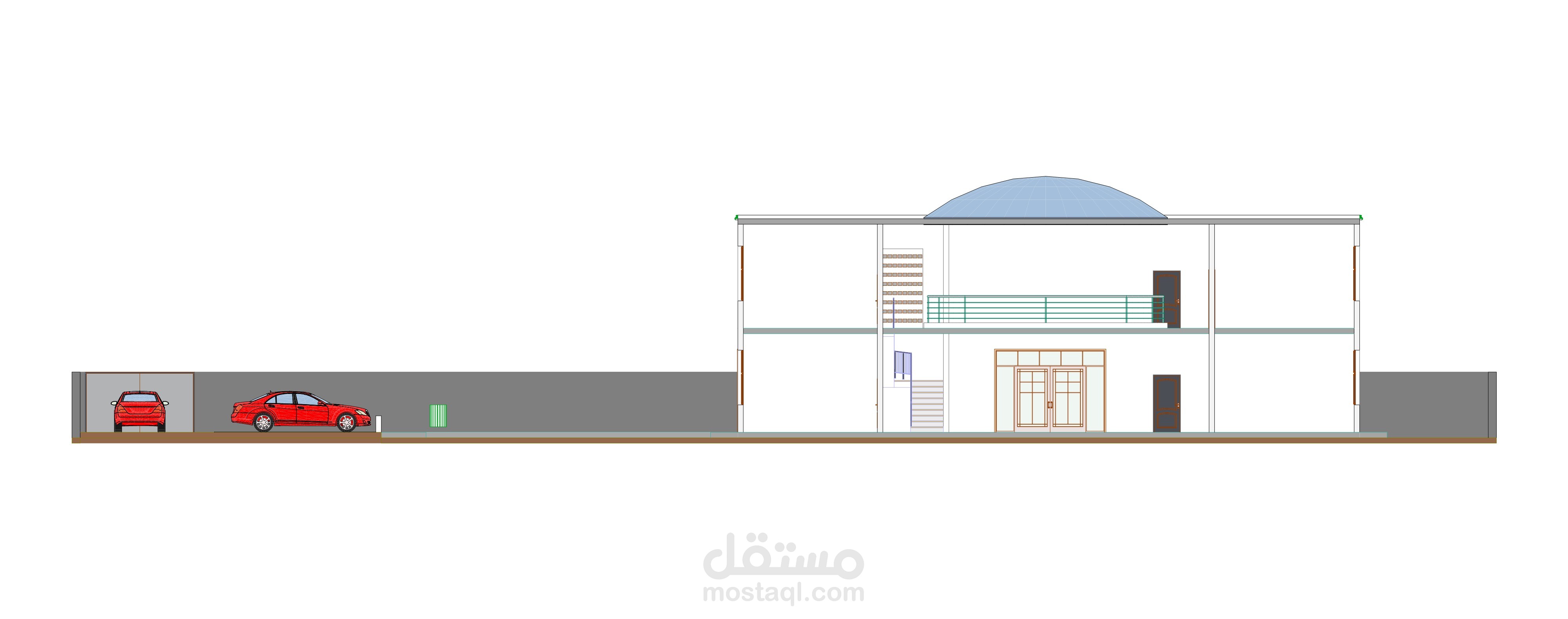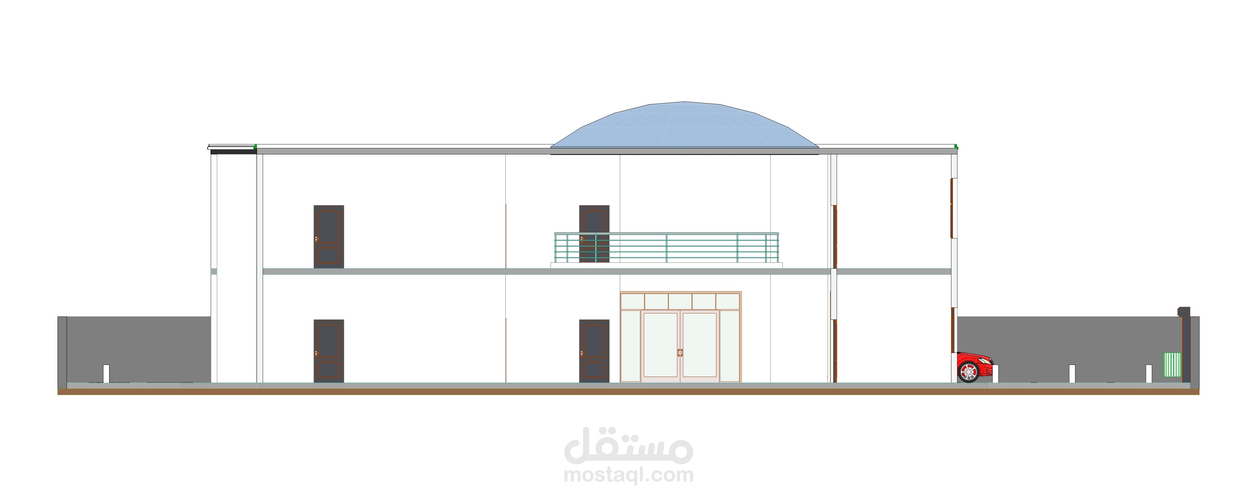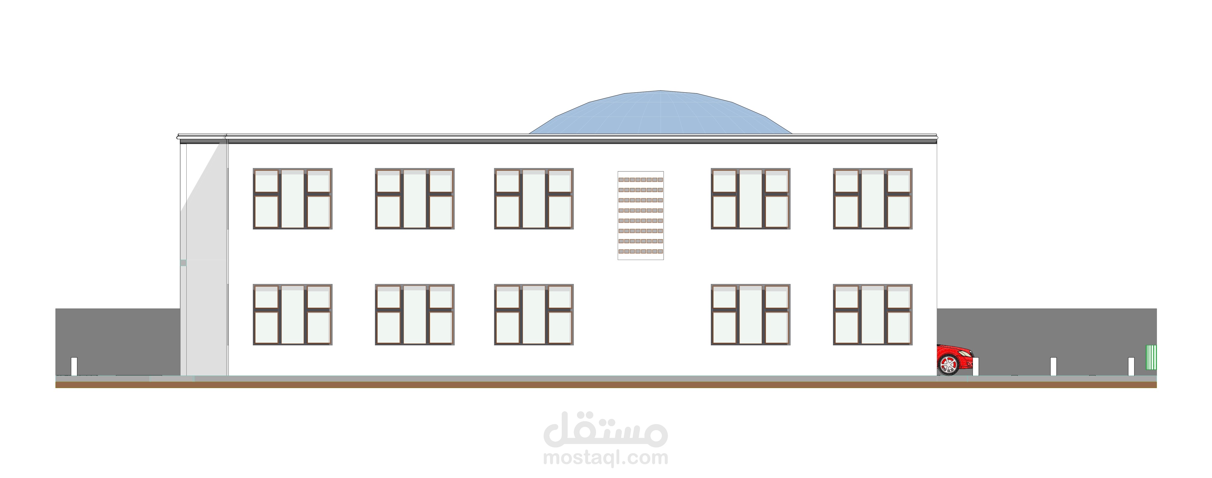 التصميم الهيكلي لمبنى مجتمعي يحتوي على الطابق الأرضي والطابق العلوي (R+1)