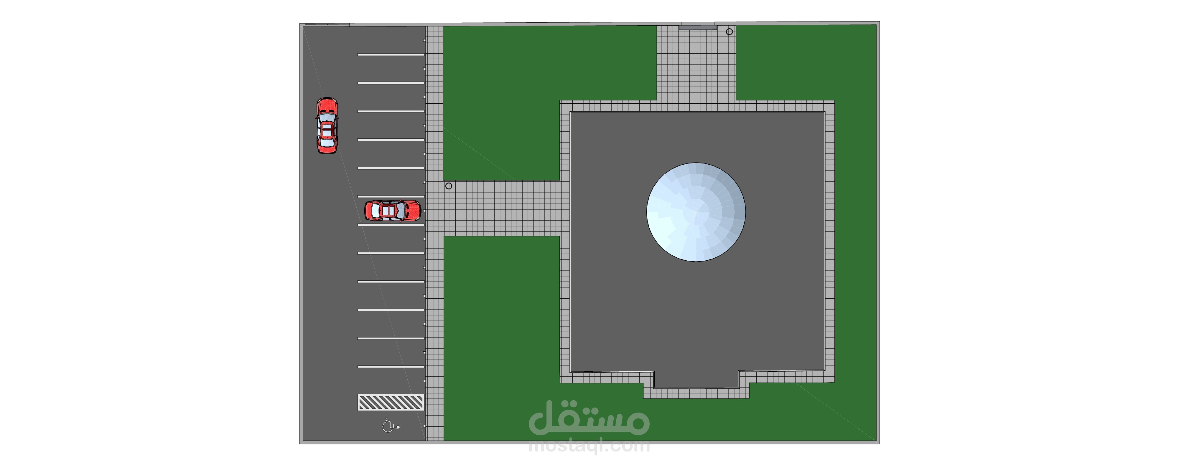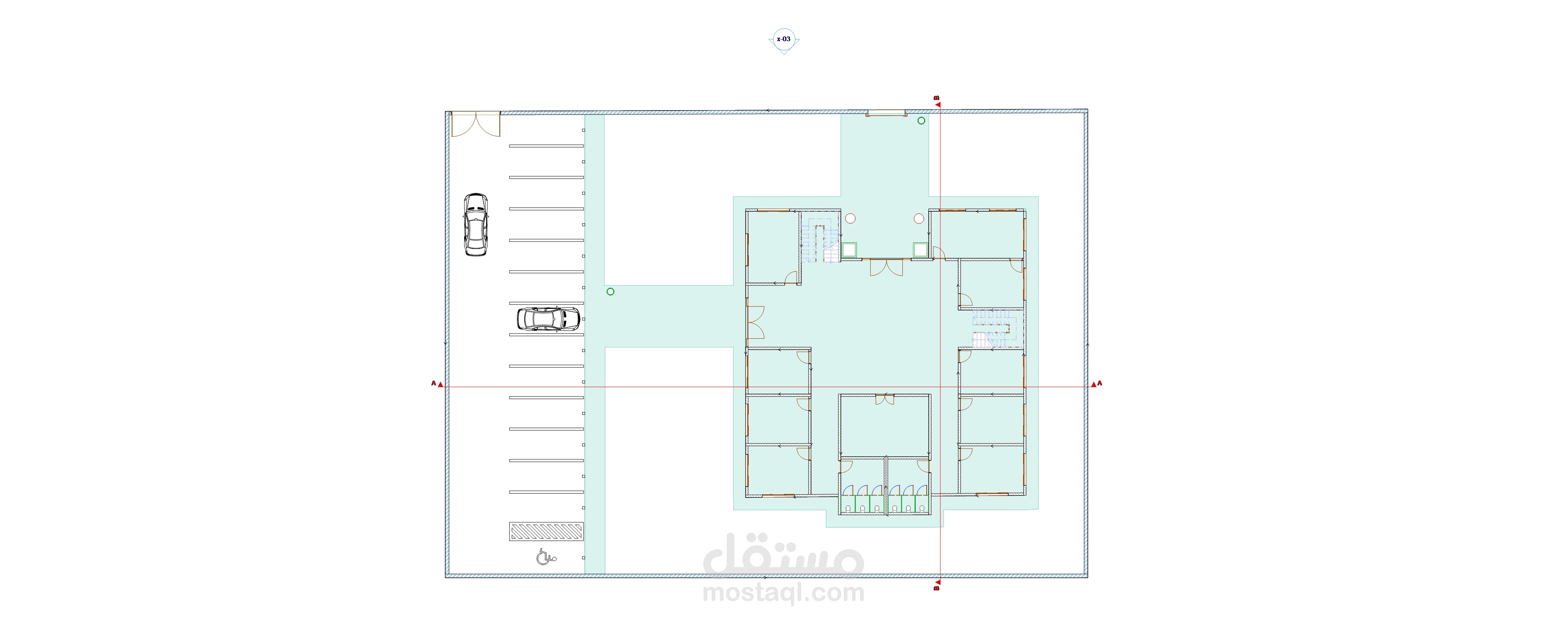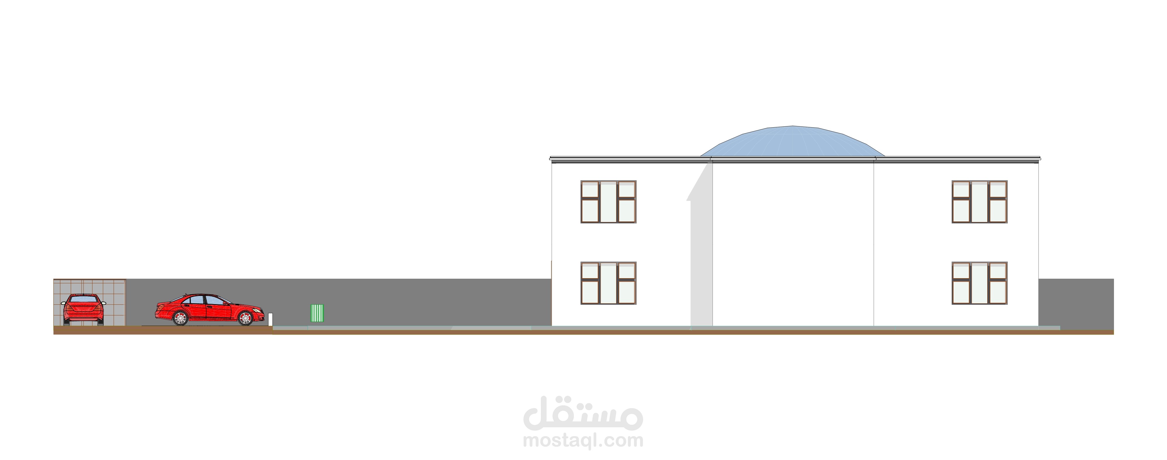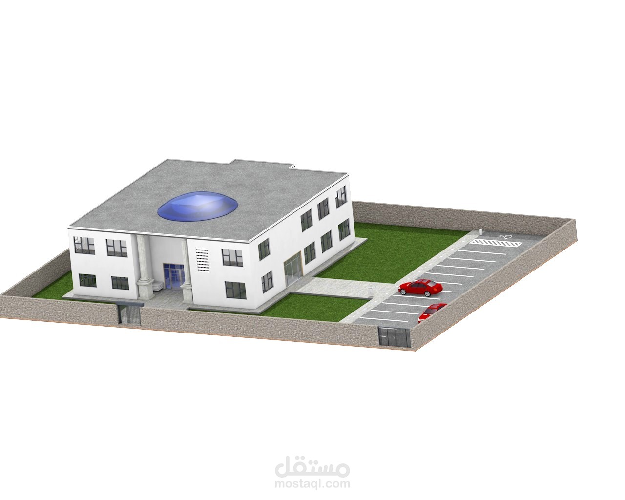 التصميم الهيكلي لمبنى مجتمعي يحتوي على الطابق الأرضي والطابق العلوي (R+1)