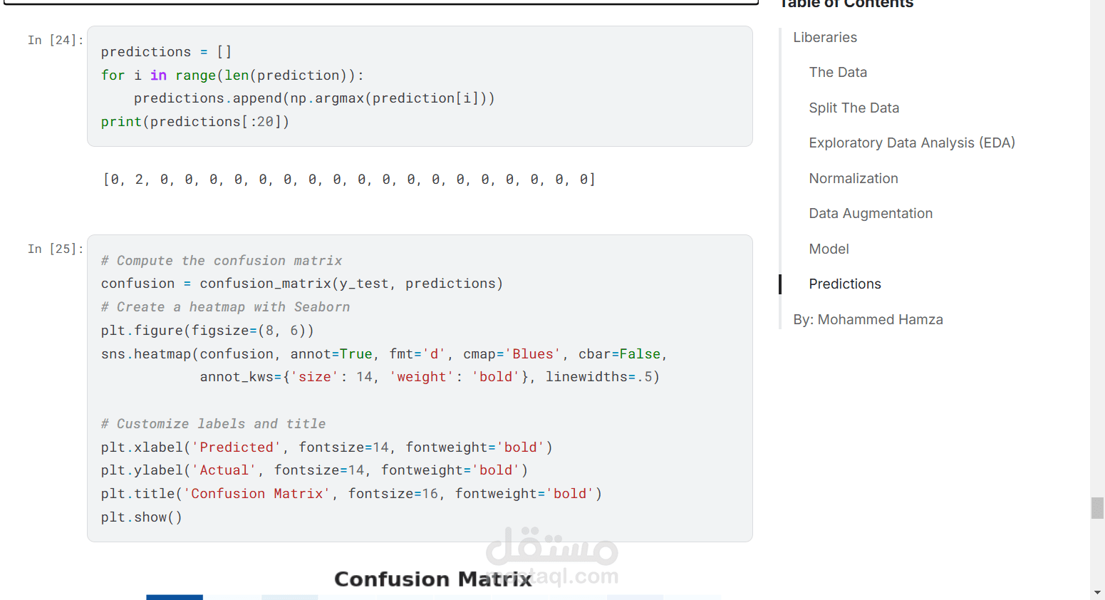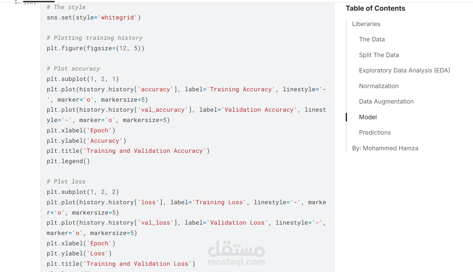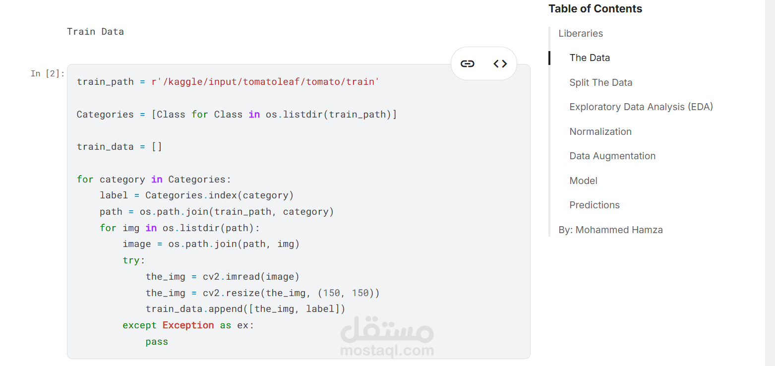 يُعد هذا المشروع تطبيقاً متقدماً في مجال الذكاء الاصطناعي والتعلم العميق، حيث يهدف إلى تطوير نظام ذكي قادر على تشخيص أمراض نبات الطماطم من خلال تحليل صور الأوراق باستخدام الشبكات العصبية التلافيفية (CNN). يبدأ المشروع بمعالجة مجموعة كبيرة من صور أوراق الطماطم وتجهيزها، ثم يقوم بتحليل البيانات وعرض توزيع الفئات المختلفة للأمراض، ليتم بعد ذلك بناء وتدريب نموذج عميق يتكون من خمس طبقات تلافيفية مع تقنيات متقدمة لتحسين الأداء مثل Data Augmentation وDropout، وأخيراً يتم تقييم النموذج من خلال مجموعة من المقاييس والرسوم البيانية التي تظهر دقة تصنيفه للأمراض المختلفة، مما يجعل هذا النظام أداة قيّمة للمزارعين وخبراء الزراعة في الكشف المبكر عن أمراض الطماطم واتخاذ الإجراءات العلاجية المناسبة في الوقت المناسب.