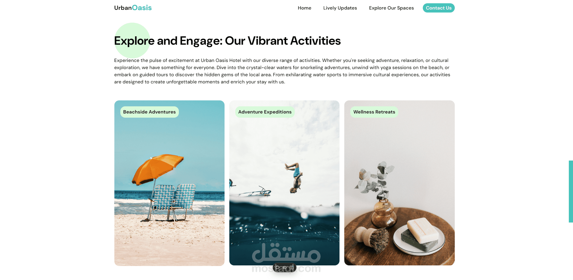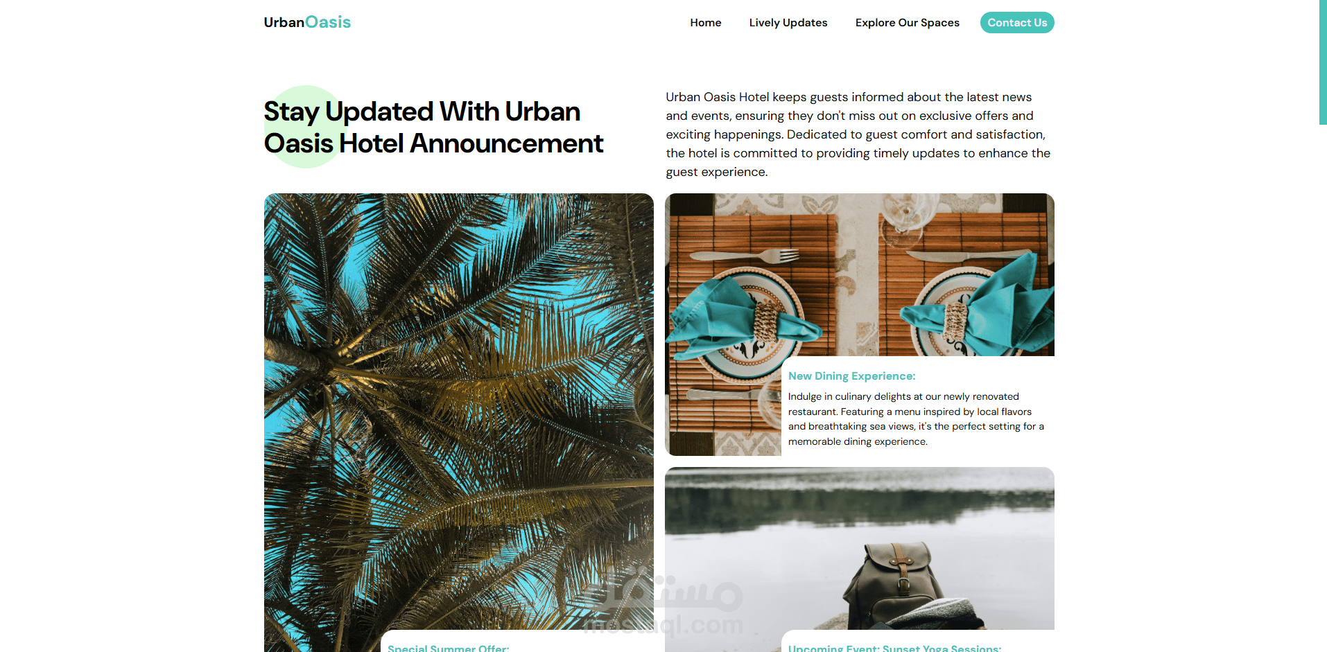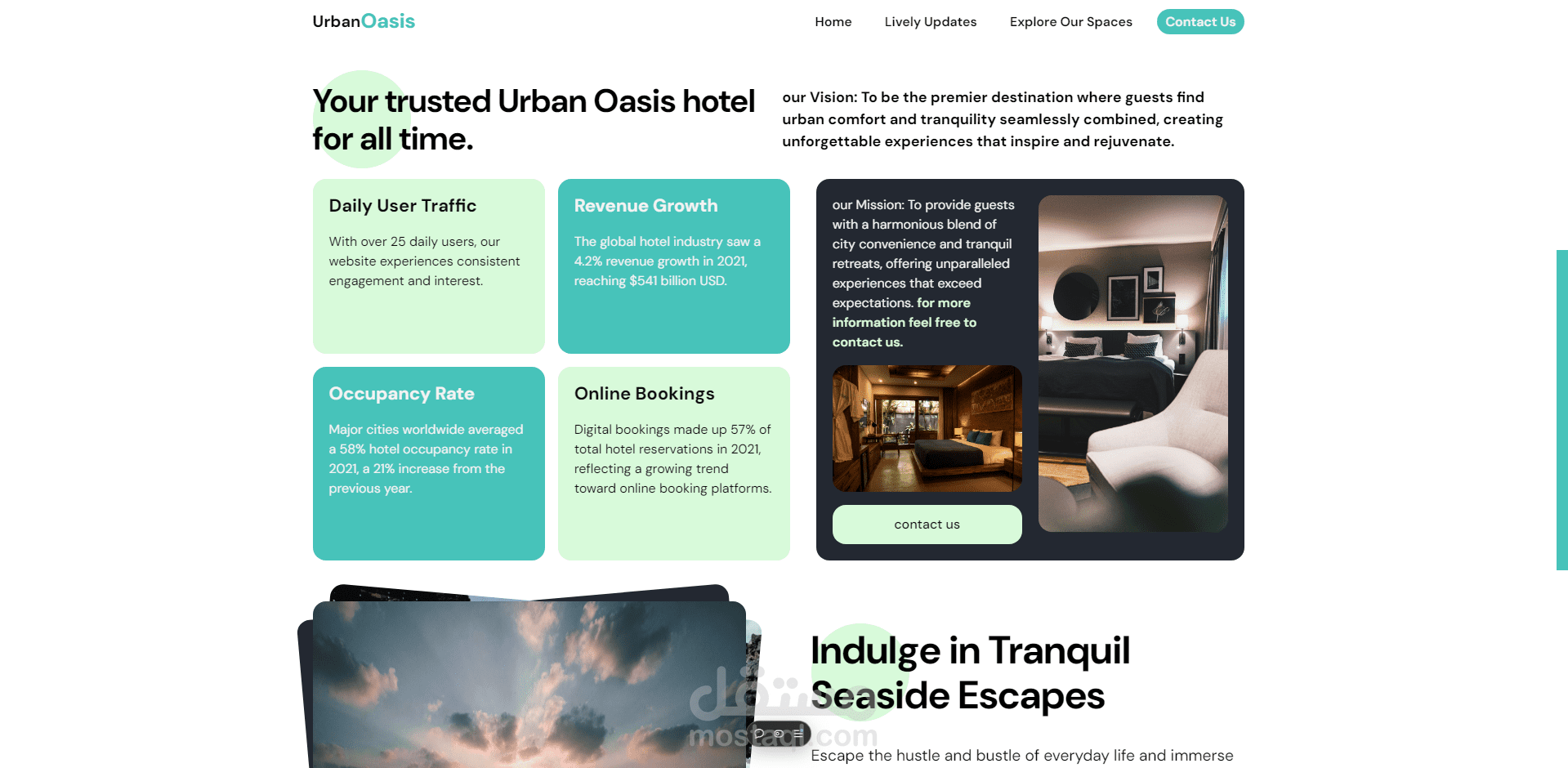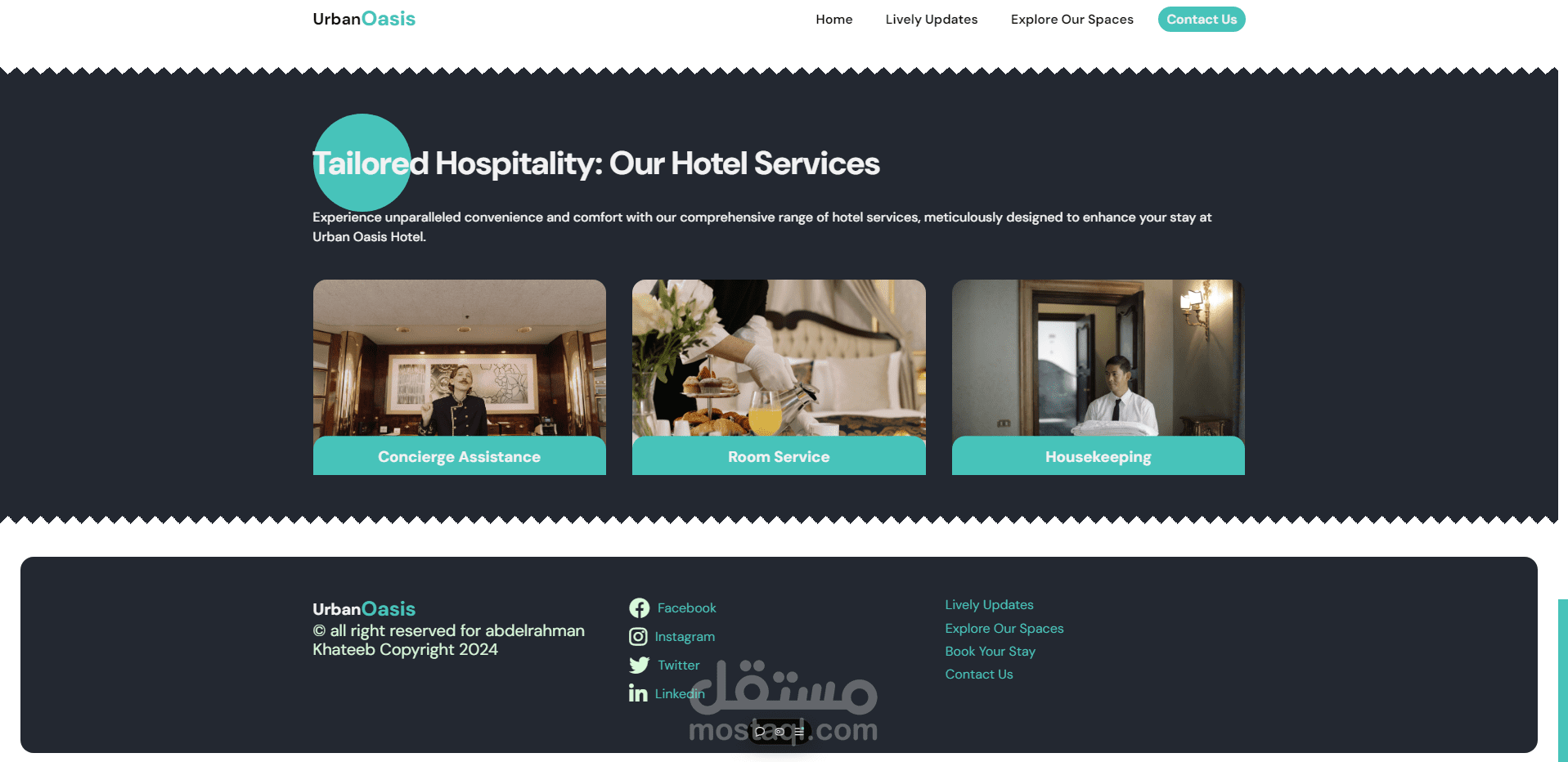 في مشروع **Urban Oasis Hotel** ، قمت بتطوير واجهة مستخدم جذابة ومتكاملة لعرض خدمات فندق افتراضي باستخدام **HTML، CSS، وJavaScript**. المشروع يهدف إلى تقديم تجربة مريحة وسلسة للمستخدم، مع التركيز على إبراز ميزات الفندق بطريقة بصرية منظمة.