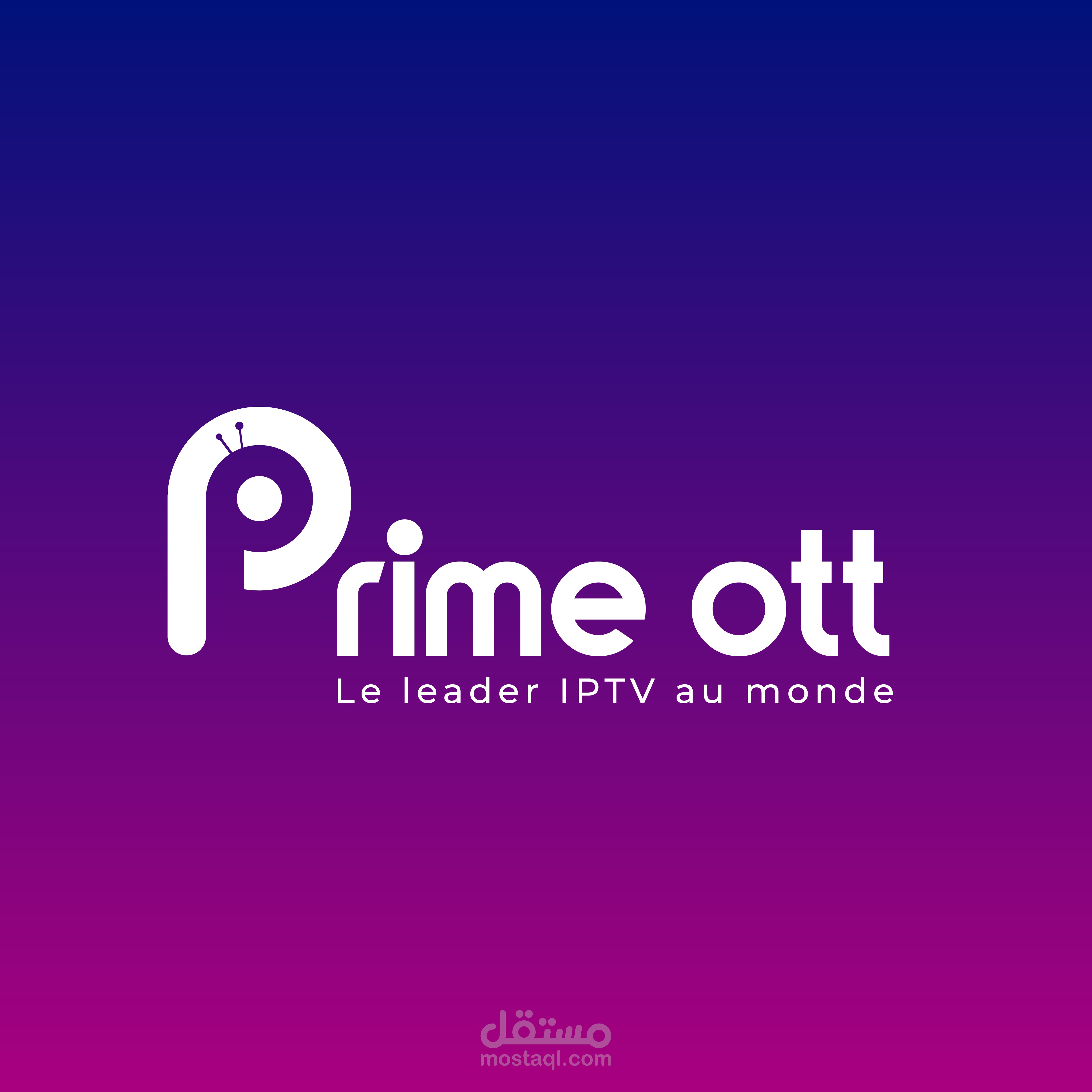 The logo for "Prime OTT" has a sleek, minimalist design, with a modern and tech-inspired look that aligns with the company's position as a leader in IPTV. The logo features a large stylized "P" that stands out, with a subtle TV antenna symbol integrated into its upper left corner, symbolizing the streaming and broadcasting aspect of the service. The word "Prime" is bold and prominent, with "ott" in lowercase for a balanced visual flow. Below the brand name, the tagline "Le leader IPTV au monde" is presented in a clean, sans-serif font, emphasizing the brand’s global leadership in IPTV. The overall monochromatic black-and-white color scheme adds a professional and timeless feel, perfect for a technology-focused brand aiming for clarity and authority in its industry.
