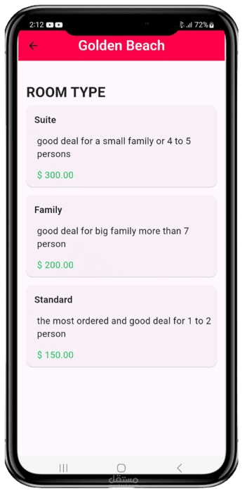 يتميز التطبيق بواجهة مستخدم حديثة وسهلة الاستخدام، حيث يتمكن المستخدم من البحث عن سيارات للإيجار وحجز غرف فندقية في عدة مدن أو وجهات سياحية باستخدام فلترة دقيقة لخيارات البحث. يتيح التطبيق للمستخدمين عرض التفاصيل الخاصة بكل خيار (سيارة أو فندق)، إضافة إلى إمكانية اختيار تواريخ ومدة الإقامة أو الإيجار.