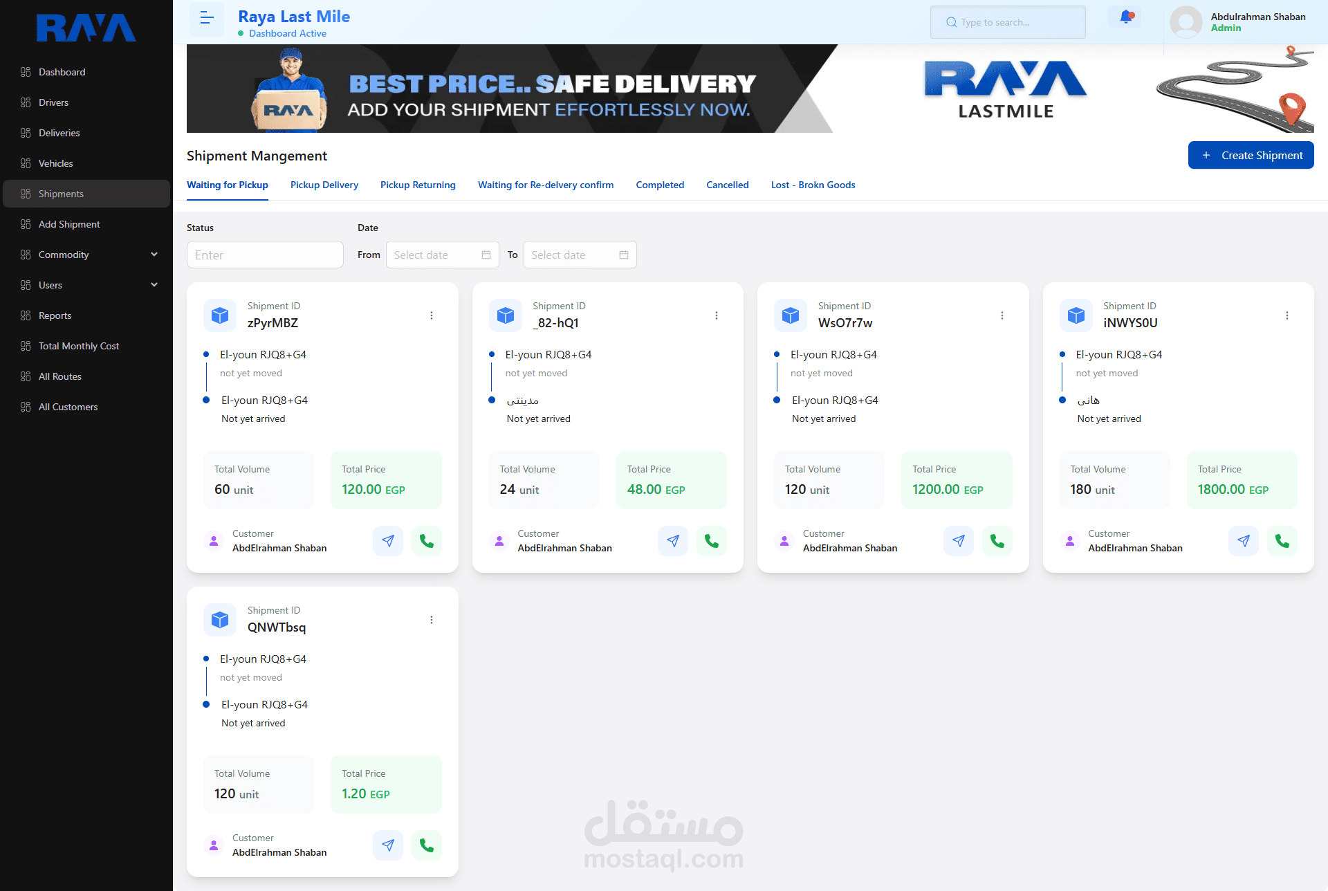 "تقدم الديمو حلولاً متكاملة لإدارة عمليات التوصيل النهائي، تشمل إدارة المركبات، والمنتجات، والسائقين، ونظام إدارة علاقات العملاء (CRM).