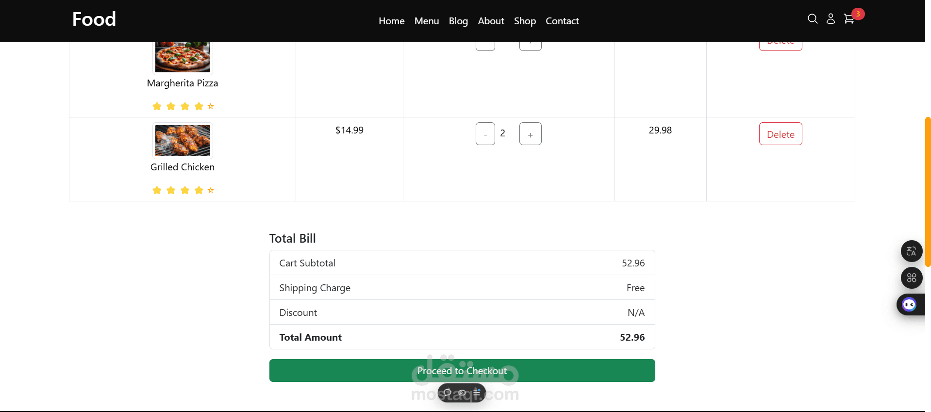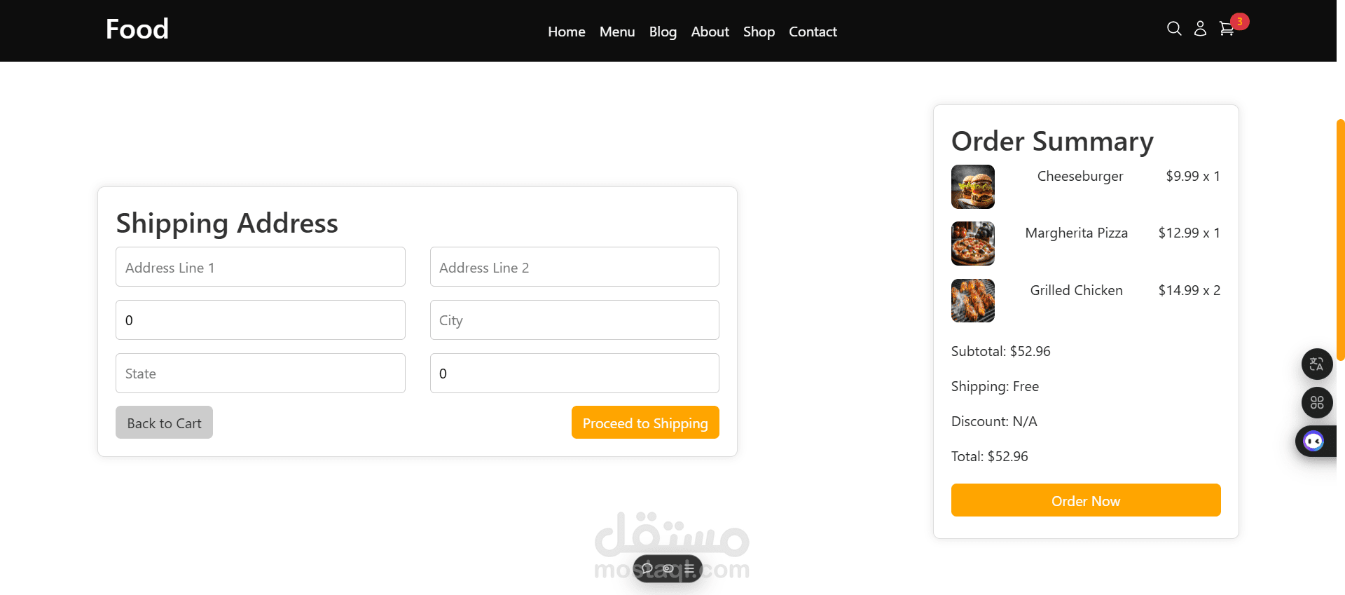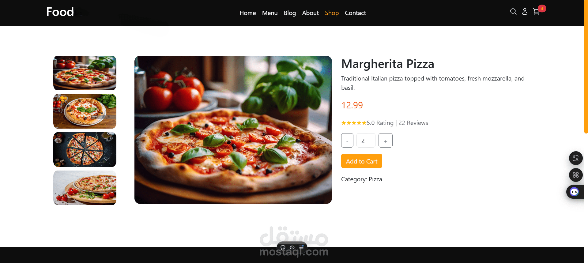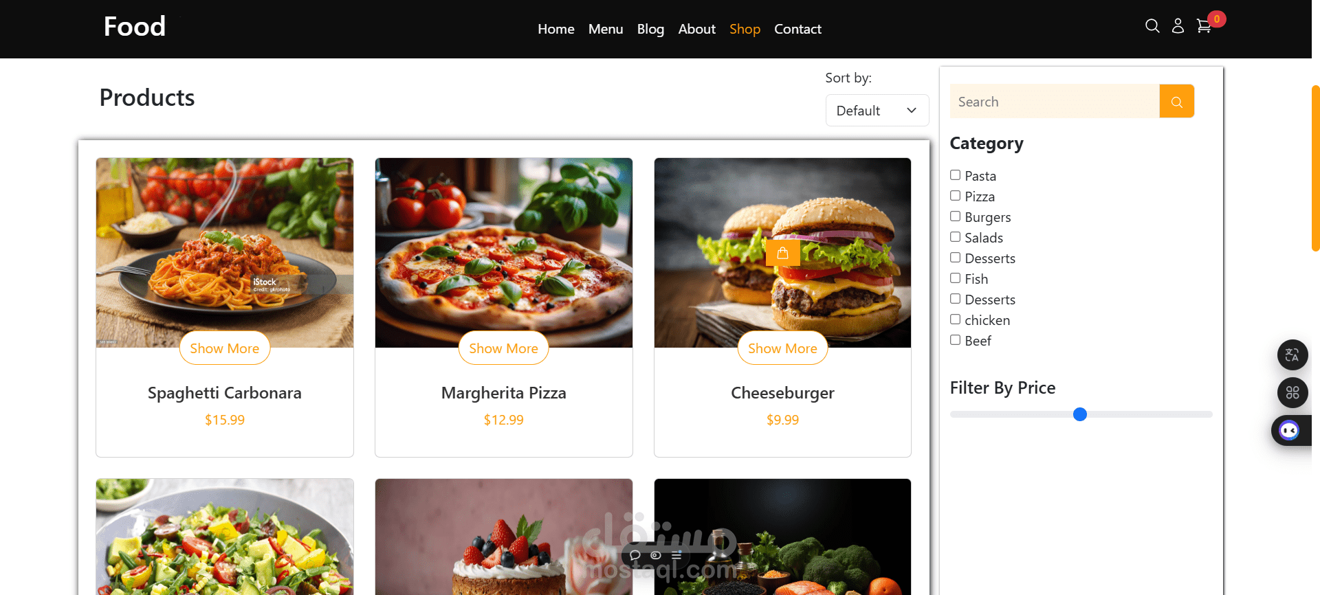 الموقع يوفر تجربة مستخدم سهلة من خلال واجهة أنيقة، قائمة منسقة للأطباق، وأقسام مميزة مثل الصفحة الرئيسية، المنتجات، وصفحة التواصل.