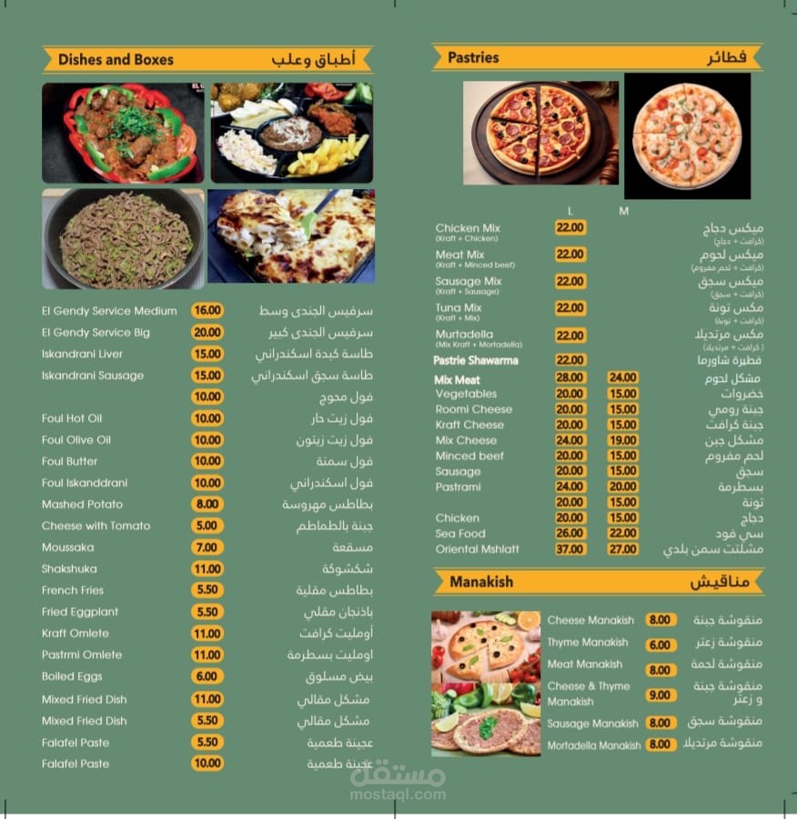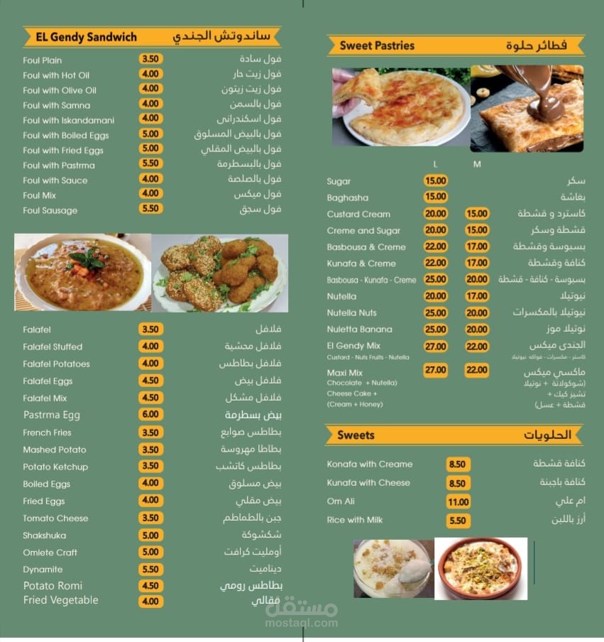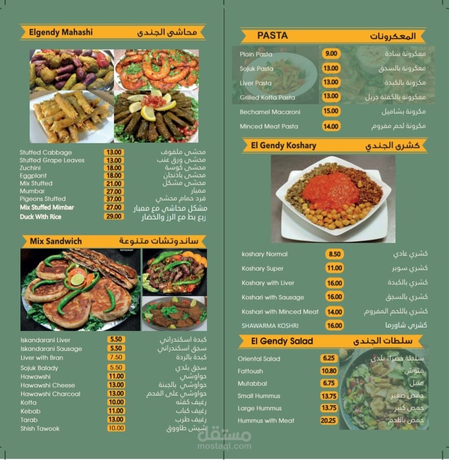 Design a complete menu for a food restaurant in the Emirates