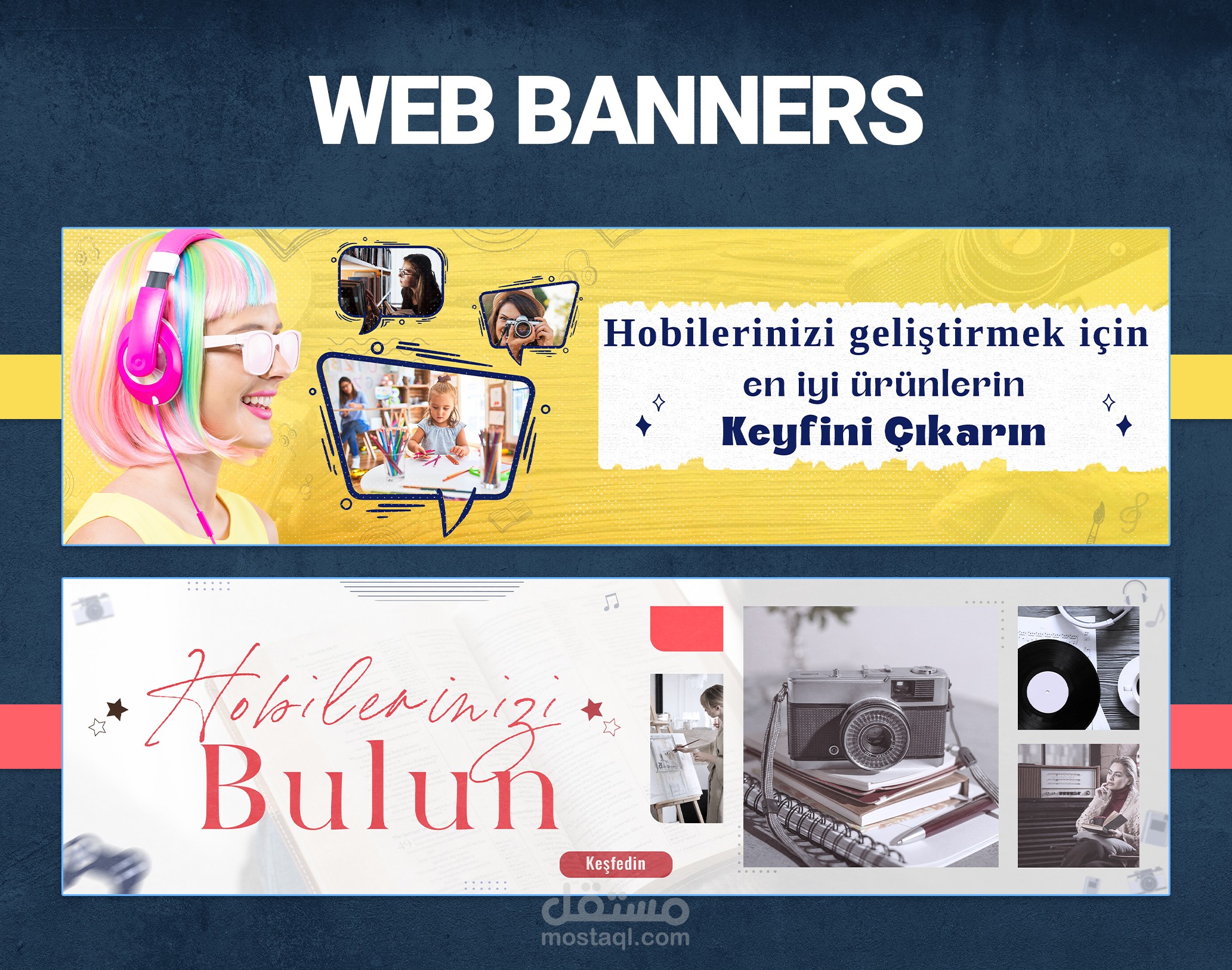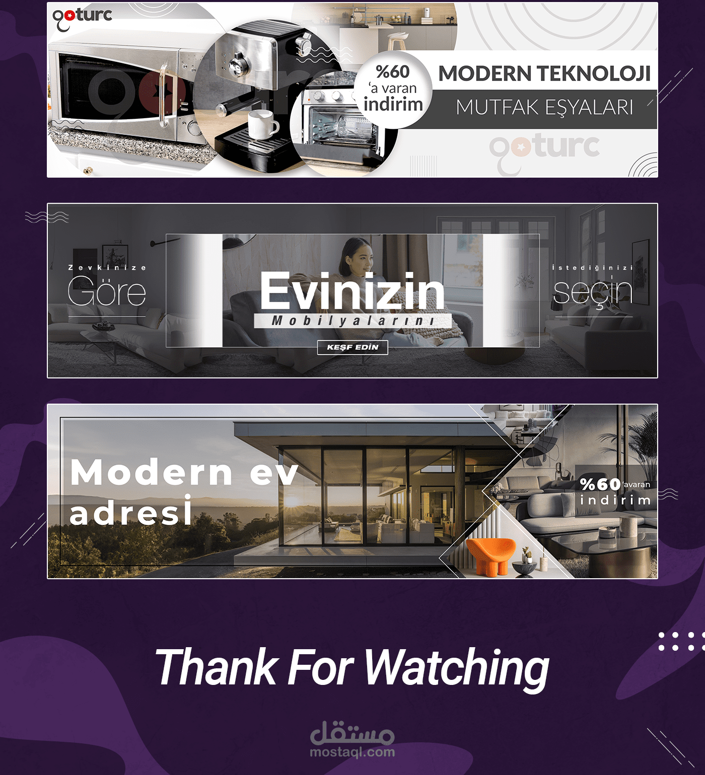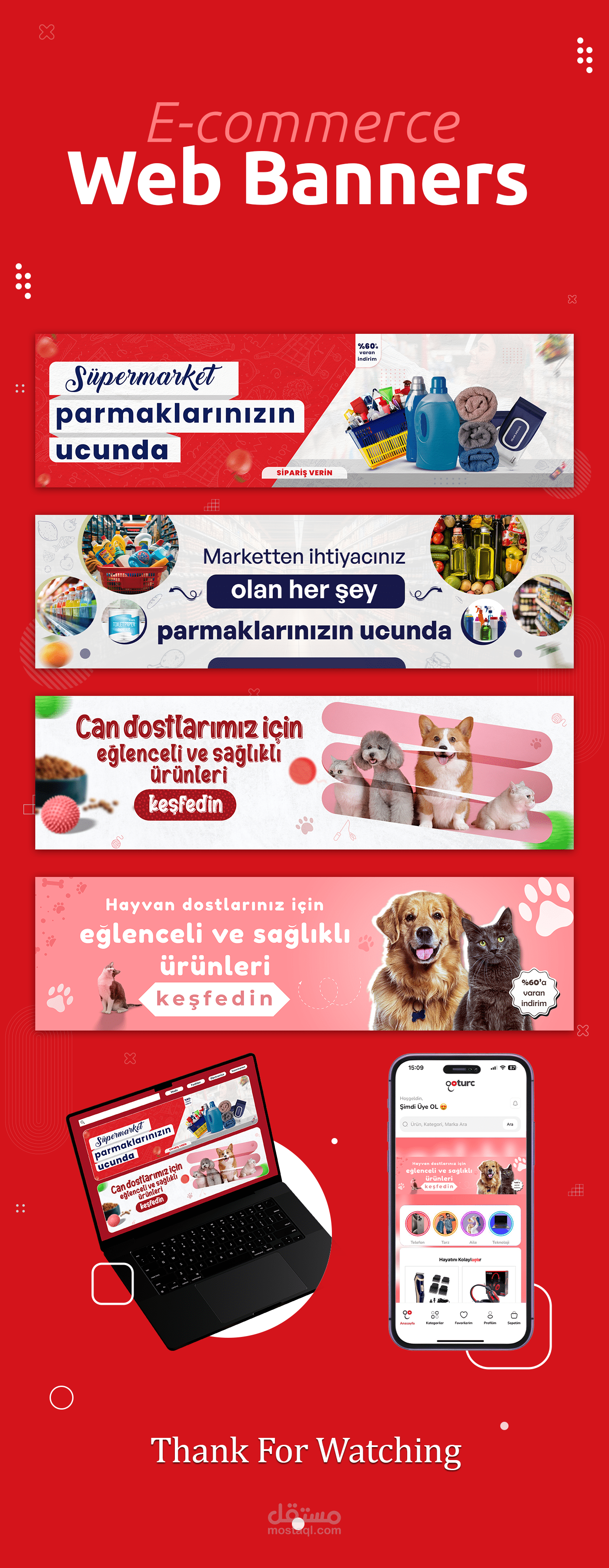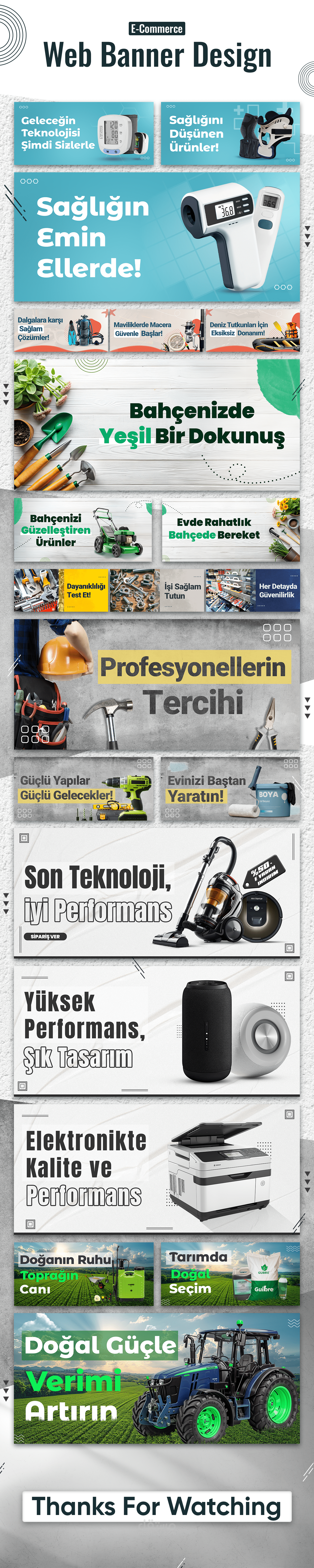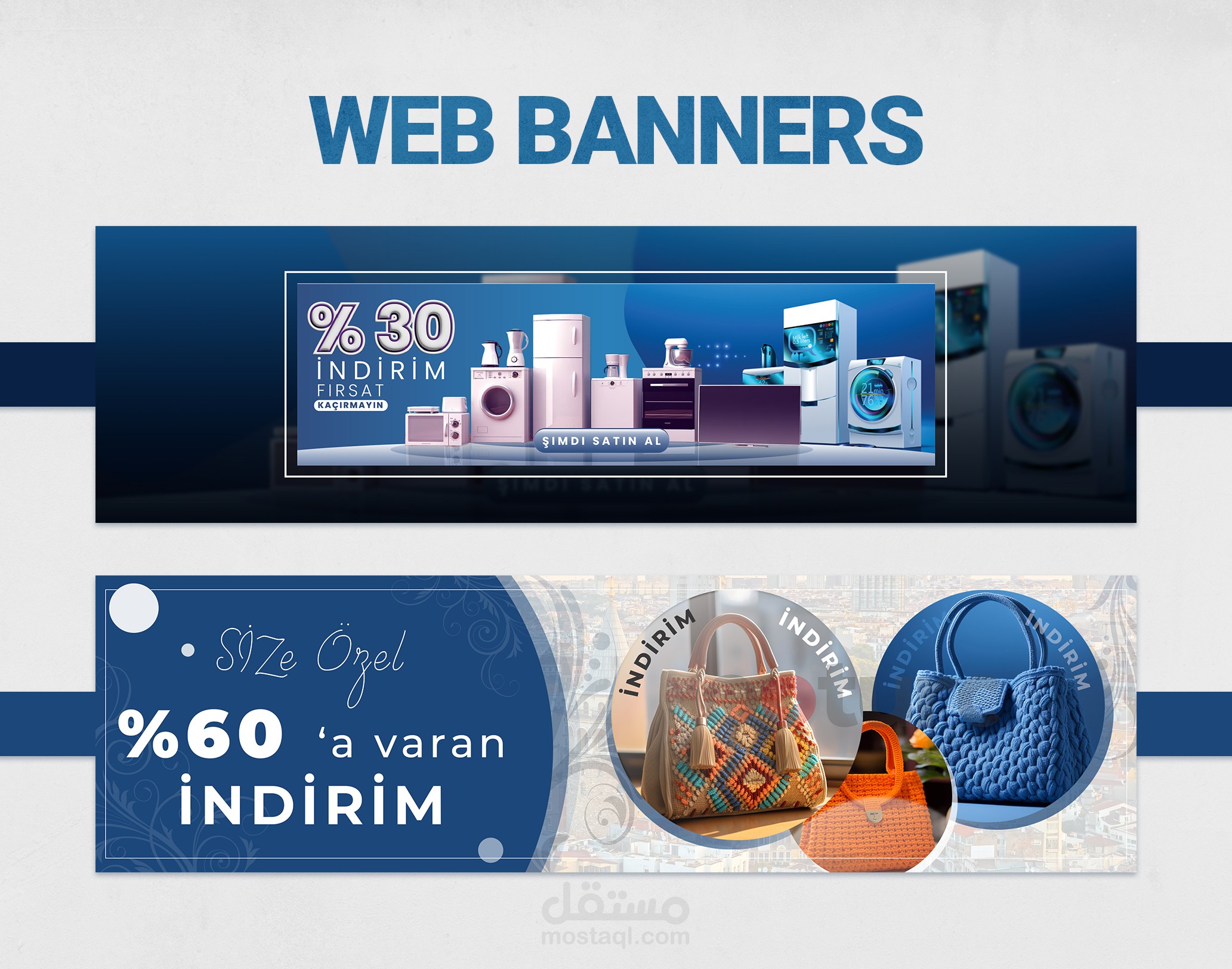 لافتات الويب لفئات المنتجات تم تصميمها لموقع وتطبيق بيع عن طريق الانترنت اسمه "internet avcisi"
