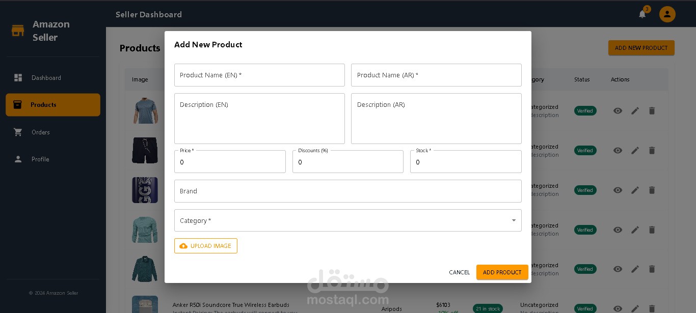 قمت بتطوير منصة تجارة إلكترونية احترافية شبيهة بأمازون باستخدام أحدث التقنيات في الواجهة الأمامية والخلفية. اعتمدت على React.js وTailwind CSS وMUI وRedux UI لتوفير تصميم جذاب وسريع الاستجابة. وللتعامل مع البيانات، استخدمت Axios، وتم ربط النظام بقاعدة بيانات MongoDB من خلال واجهة RESTful API مبرمجة باستخدام NestJS. وهذا الموقع متفرع من موقع امازون الخاص بي و يهدف هذا المشروع لتقديم أداء عالي وسهولة في الاستخدام للبائعيين في امازون ولإدارة العمليات التجارية بكفاءة.