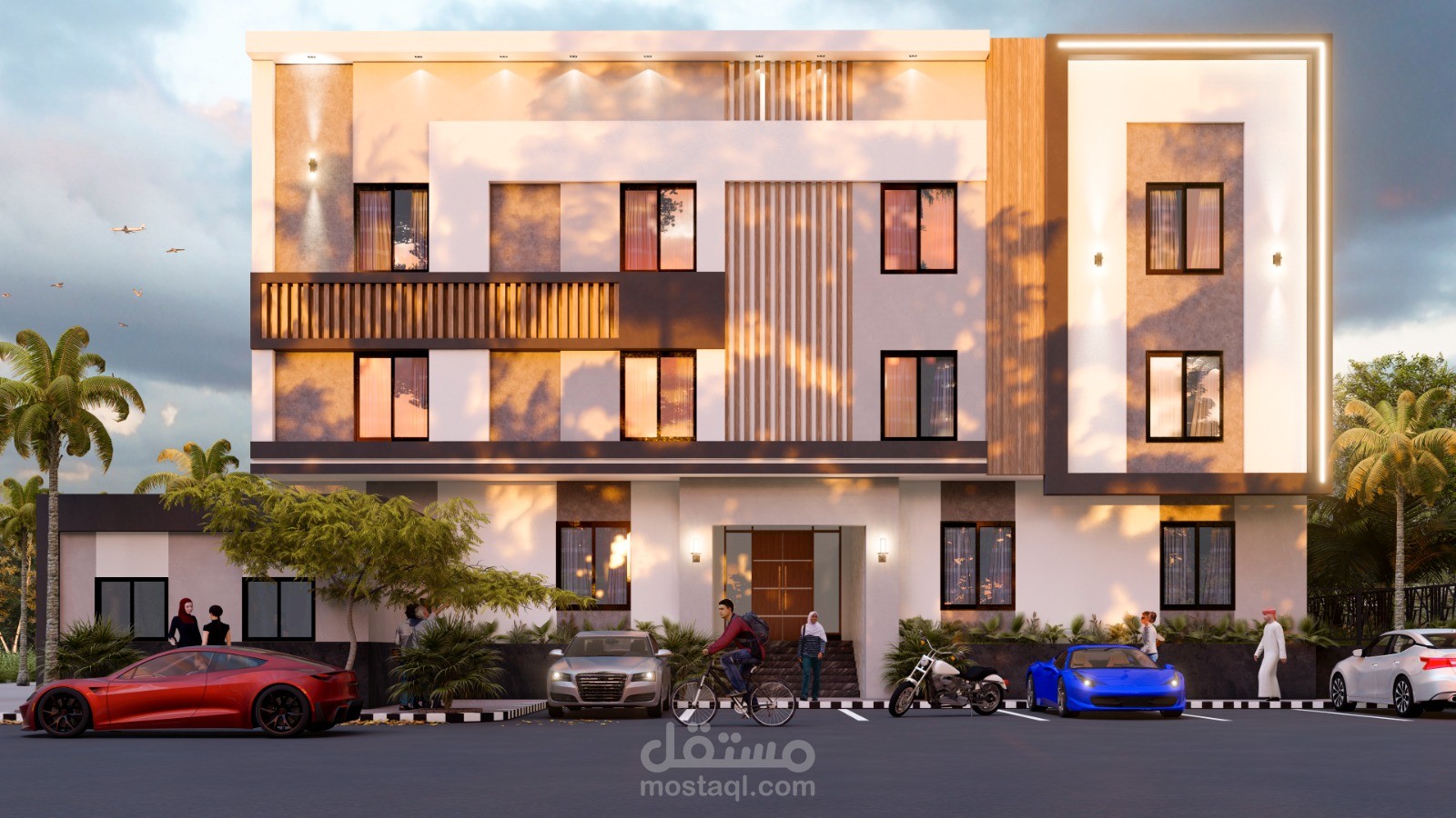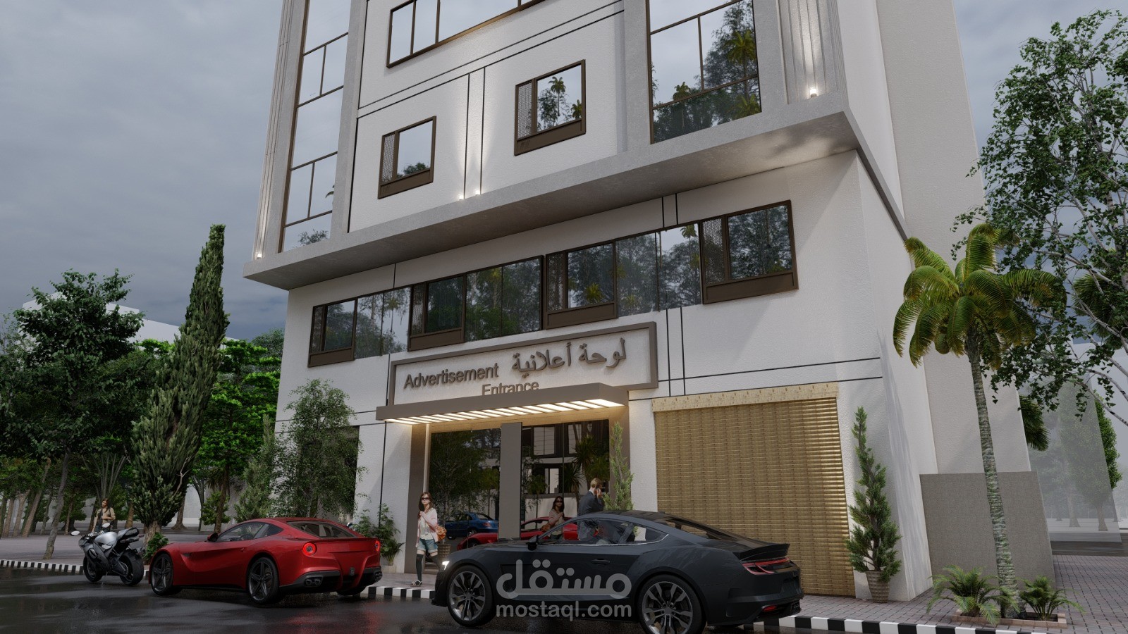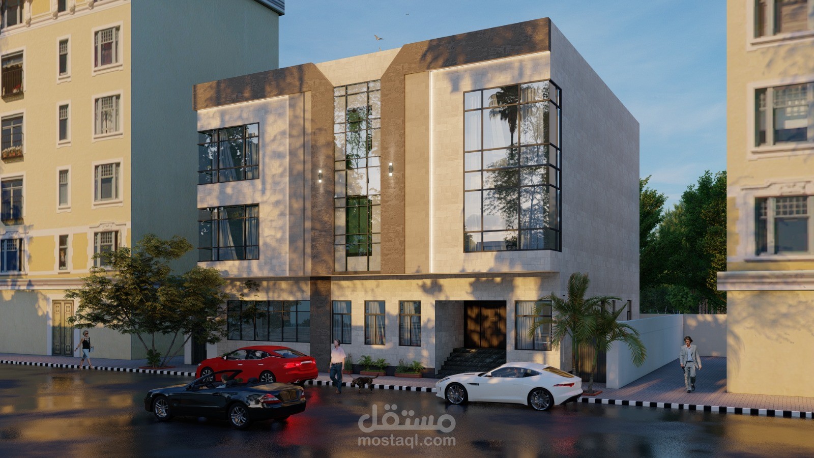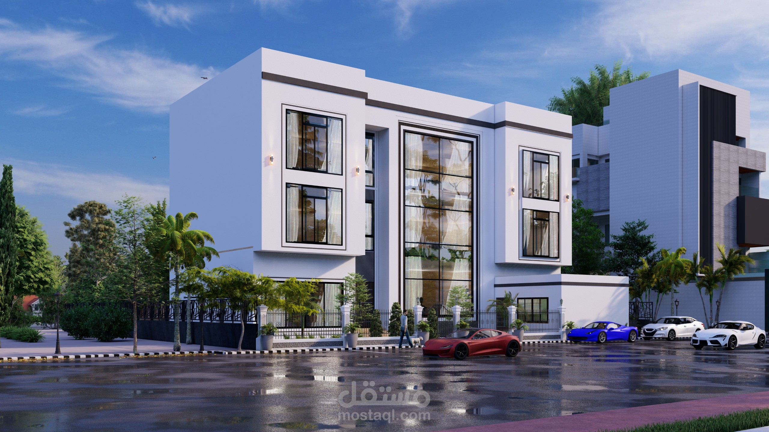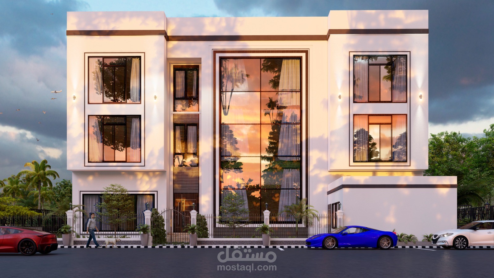التصميم الخارجي: تصميم واجهات خارجية عصرية أو كلاسيكية تضفي طابعاً مميزاً على مشروعك، سواء كان سكنياً، تجارياً، أو استثمارياً.