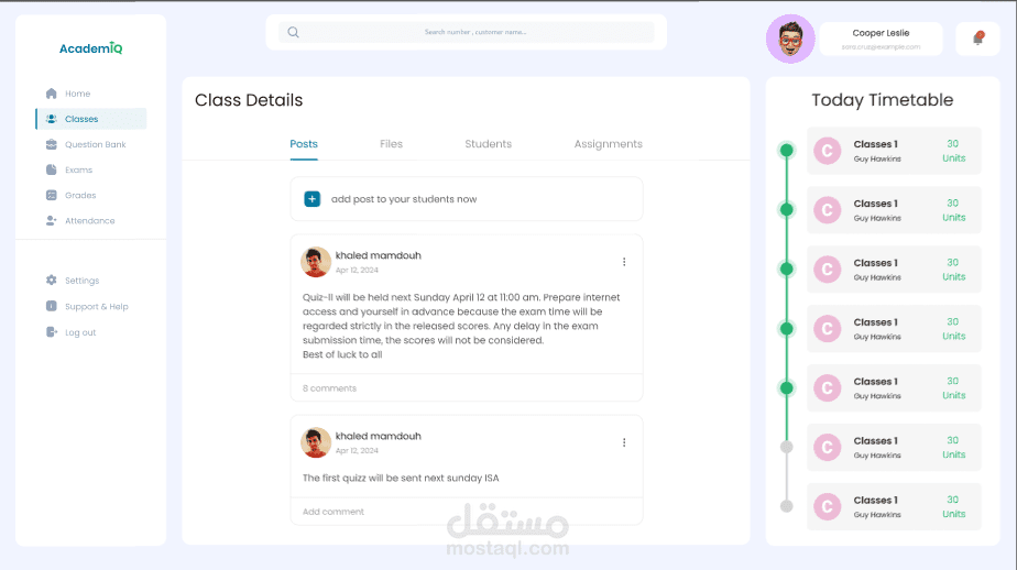 Academiq هو منصة تعليمية متكاملة تهدف إلى تقديم محتوى تعليمي تفاعلي للطلاب والمدرسين. تشمل المنصة ميزات متعددة مثل إدارة الدورات، اختبارات تفاعلية، وتتبع تقدم الطلاب، مما يوفر تجربة تعلم شاملة عبر الإنترنت.