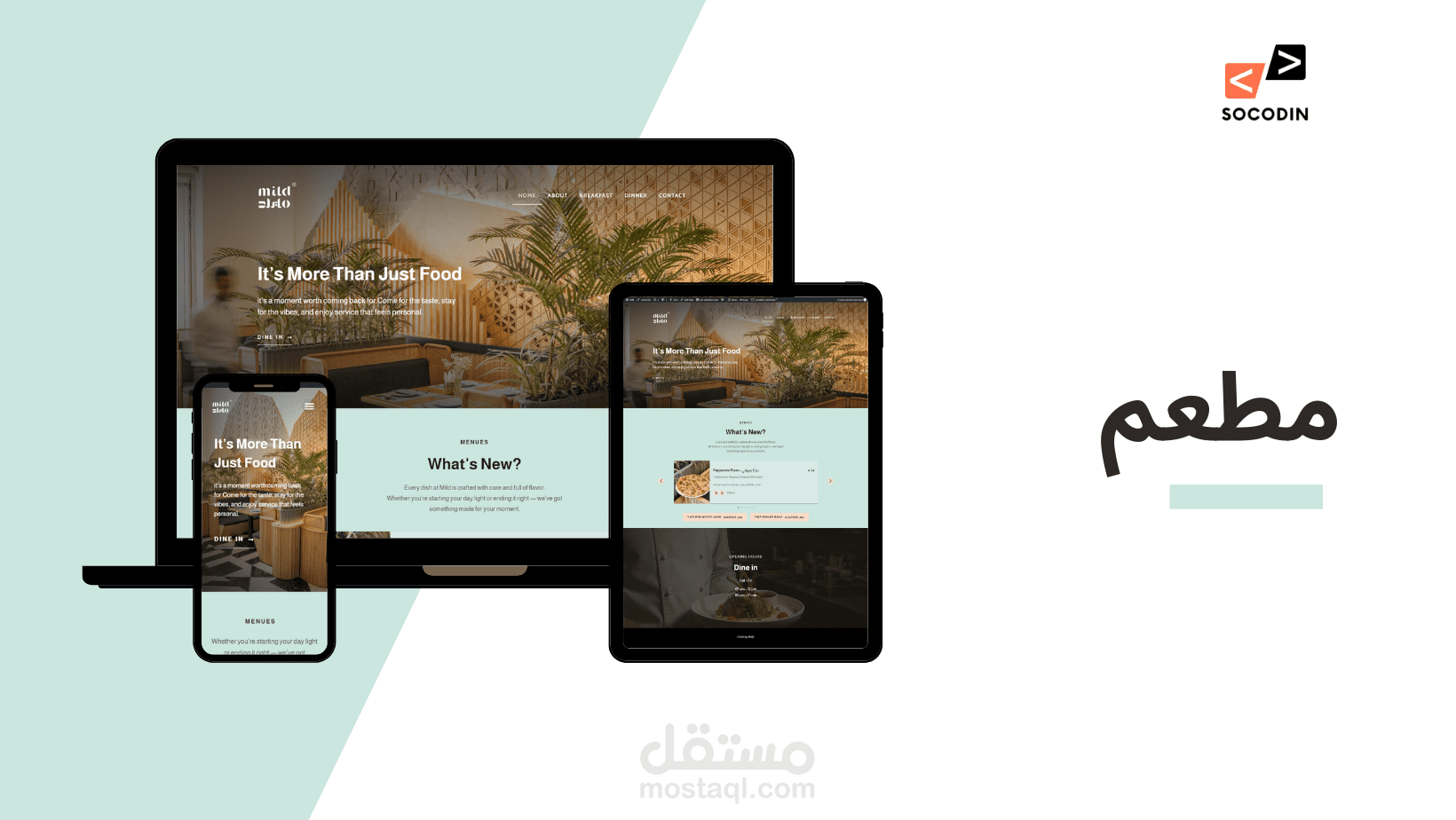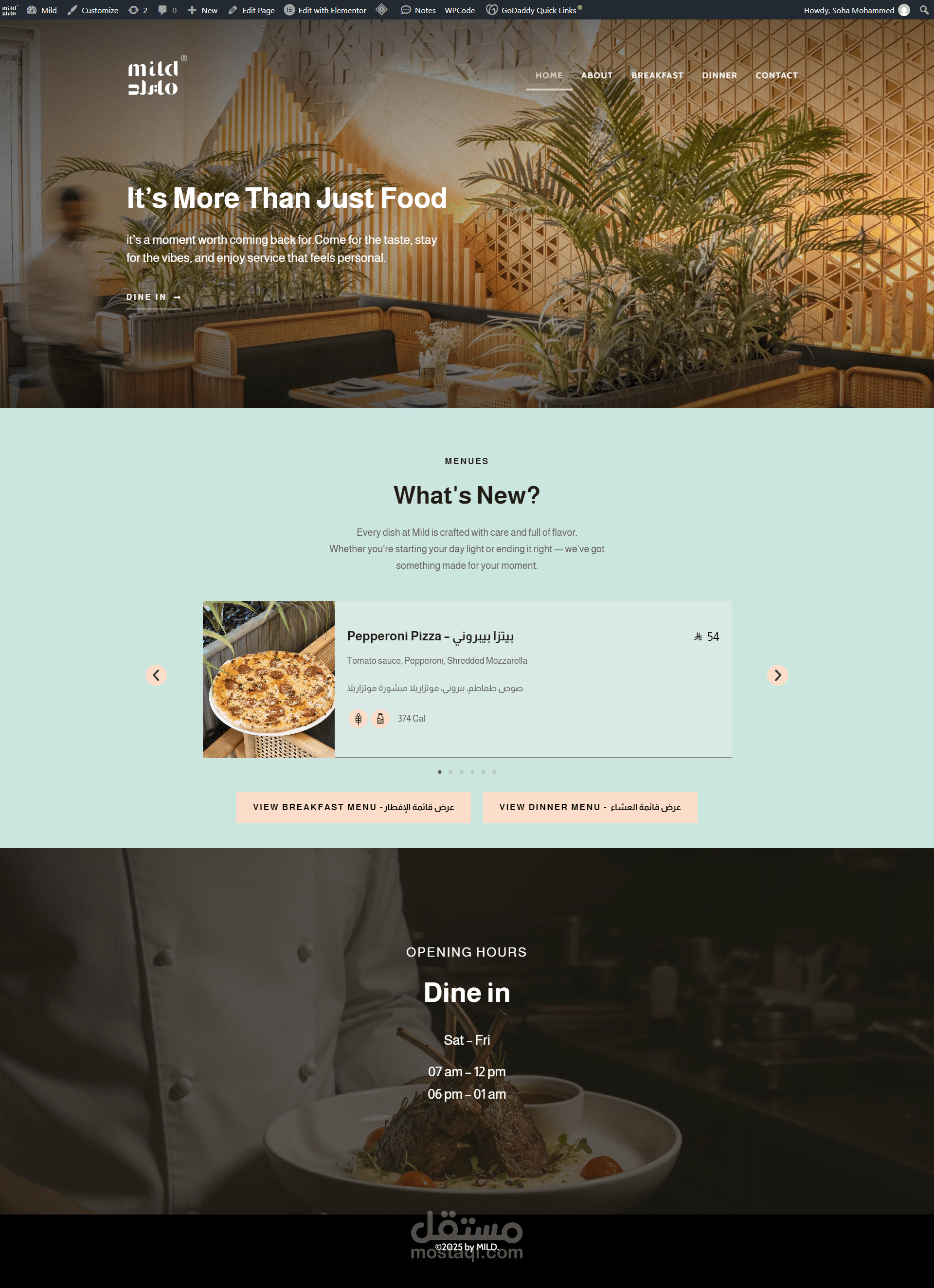 مرحبًا بك في مطعم mild مبني على منصة ووردبريس بأحدث إصدار، مع تصميم احترافي Responsive متوافق مع جميع الأجهزة (موبايل – تابلت – كمبيوتر).