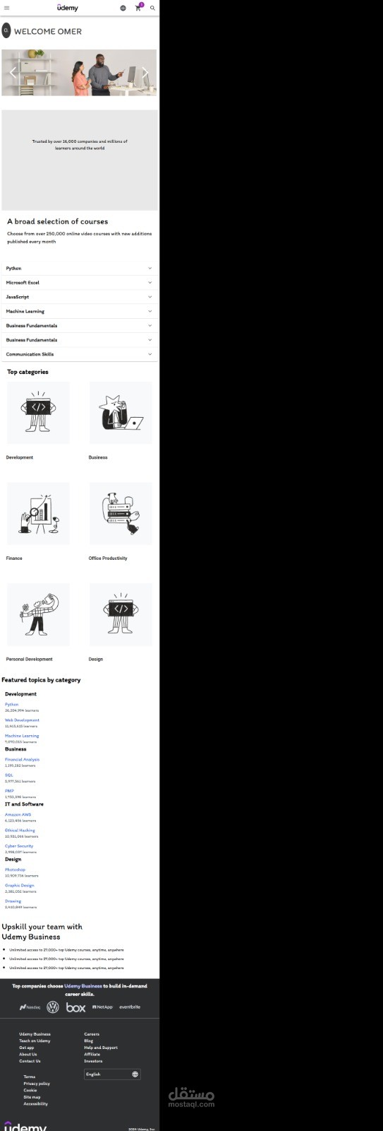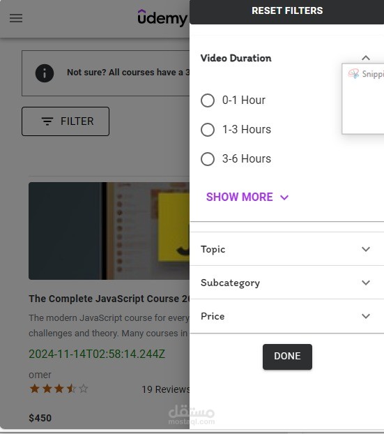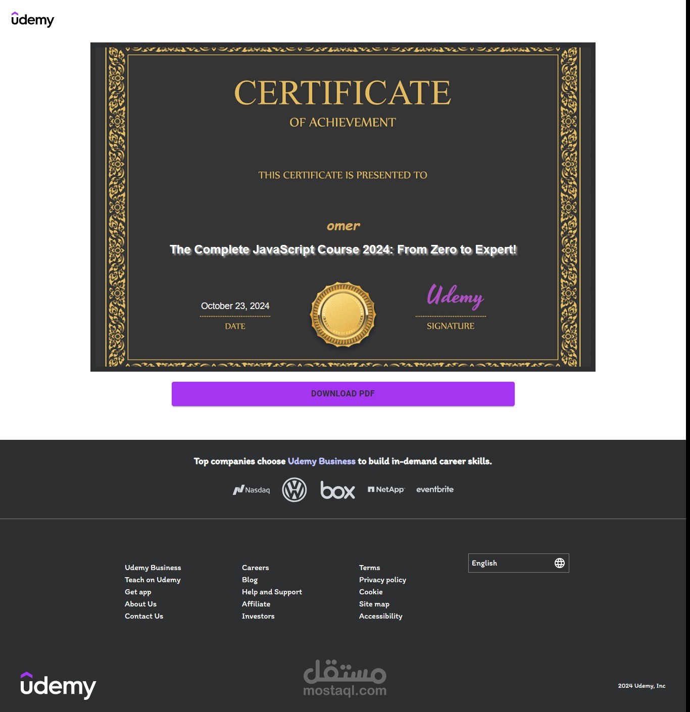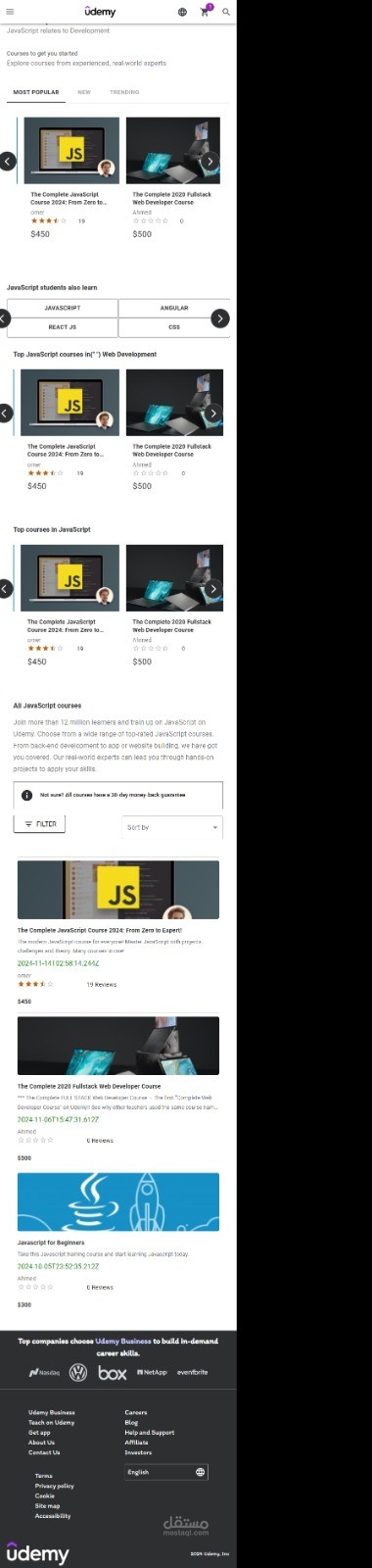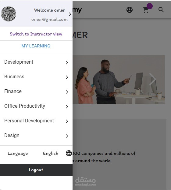 مشروع منصة تعليمية متكاملة شبيهة بـ Udemy، توفر تجربة سلسة للمستخدمين والطلاب. يتميز الموقع بعرض دورات تعليمية شاملة مع إمكانية الشراء باستخدام PayPal. يحتوي كل كورس على مجموعة من الفيديوهات التعليمية، وعند الانتهاء من مشاهدتها يحصل الطالب تلقائيًا على شهادة إتمام الدورة.