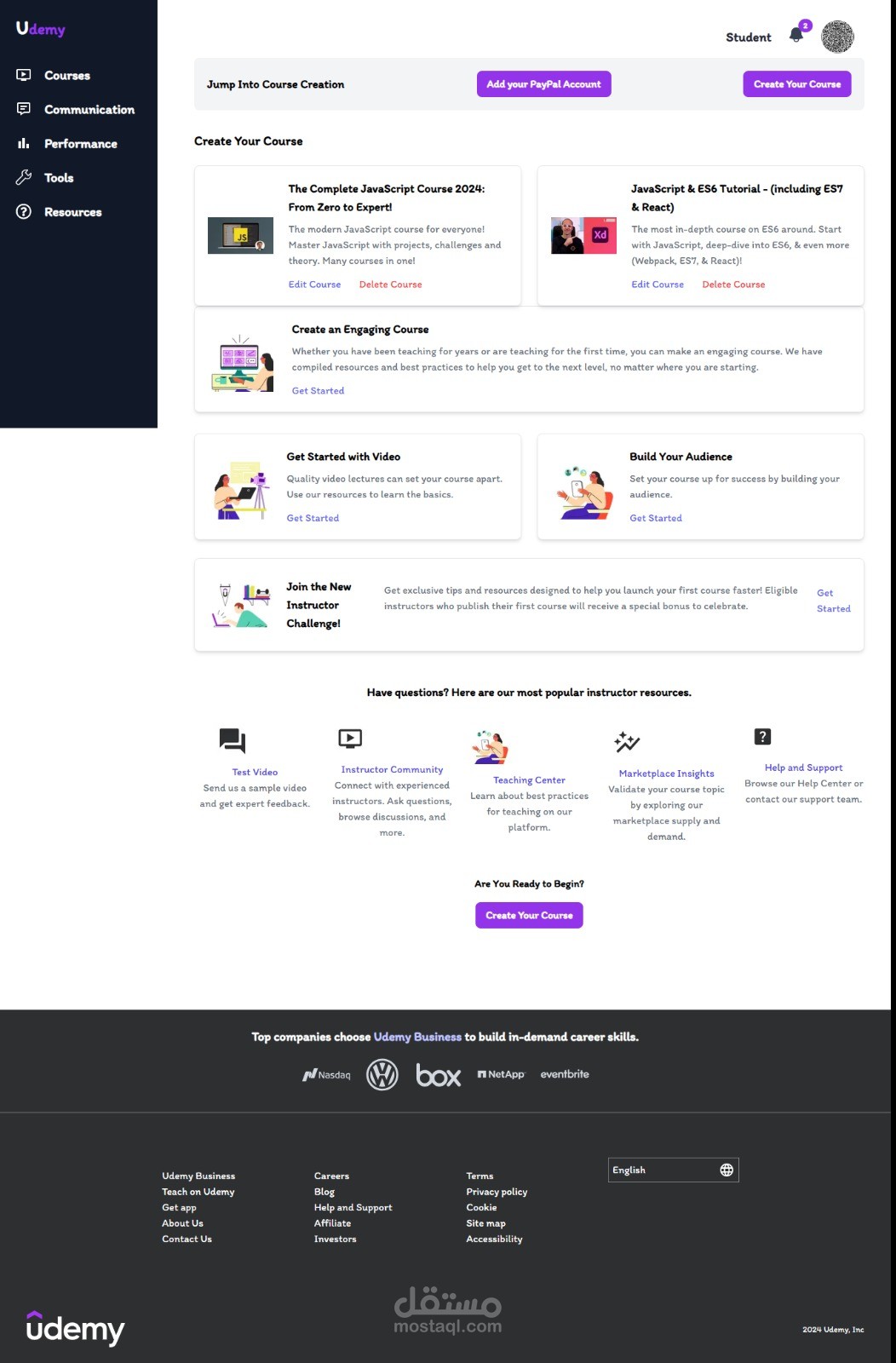 كما توفر المنصة ميزات مخصصة للمدربين (Instructors)، حيث يمكنهم إضافة دوراتهم بسهولة مع جميع التفاصيل المطلوبة، بالإضافة إلى إمكانية متابعة عمليات البيع ومراقبة أداء دوراتهم بشكل مباشر.