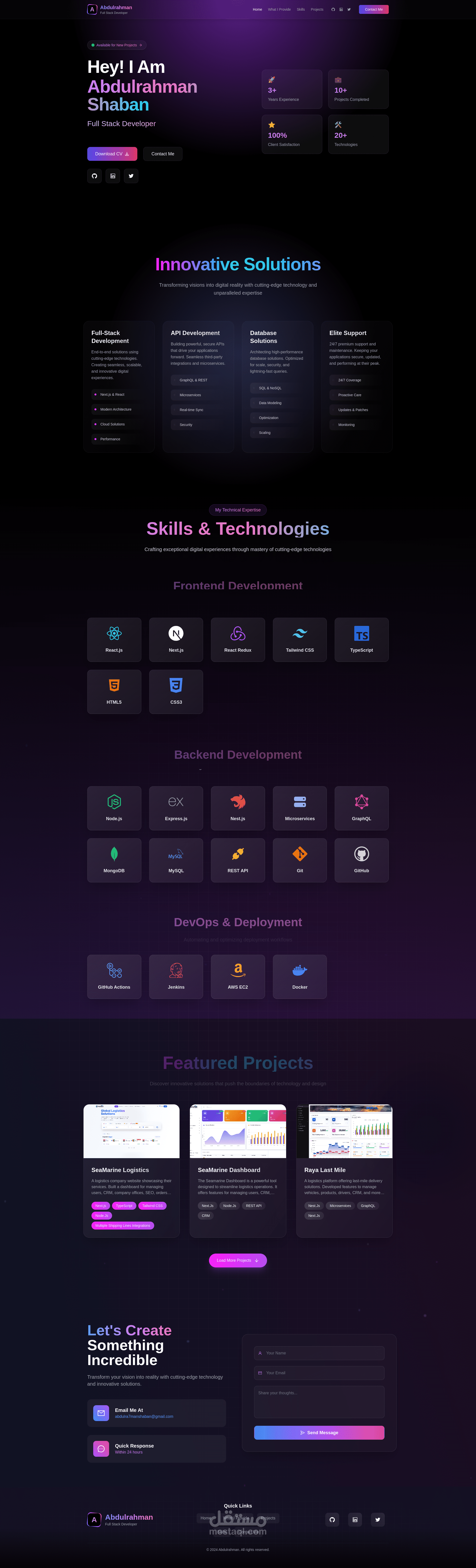 "مرحبًا بكم في محفظتي الشخصية، حيث أقدم حلولًا تقنية مخصصة لتلبية احتياجات أعمالكم. أعمل على تصميم وتطوير مواقع وتطبيقات ويب مبتكرة تساعد عملائي في تحسين كفاءتهم التشغيلية وتعزيز تجاربهم الرقمية. من خلال التركيز على توفير حلول لوجستية متكاملة، وأدوات إدارية فعّالة، وأداء عالٍ، أهدف إلى تقديم قيمة حقيقية ودعم عملائي لتحقيق أهدافهم التجارية بنجاح."