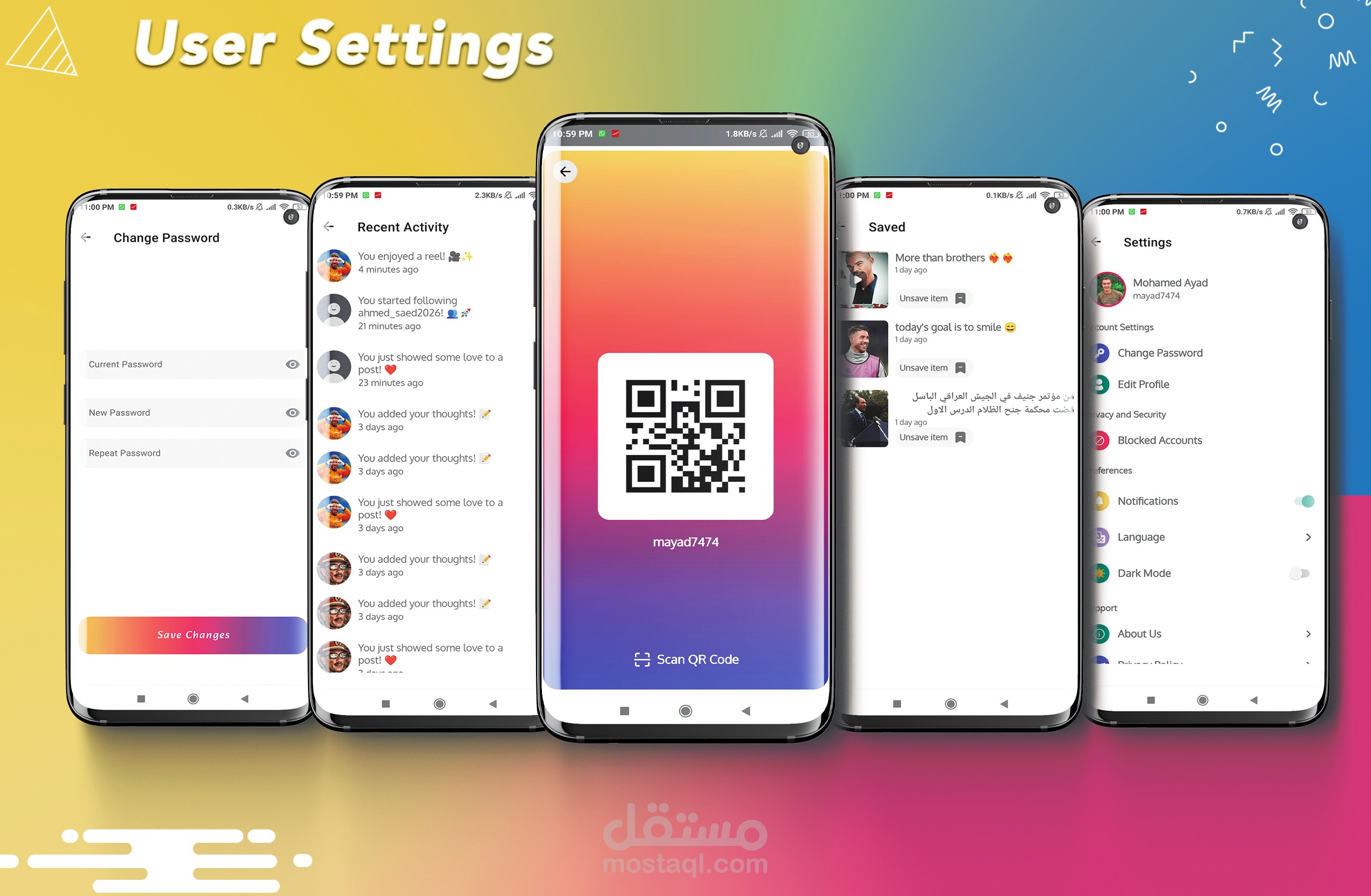 اللغة والوضع الليلي: يدعم التطبيق واجهة باللغة العربية والإنجليزية مع خاصية الوضع الليلي.