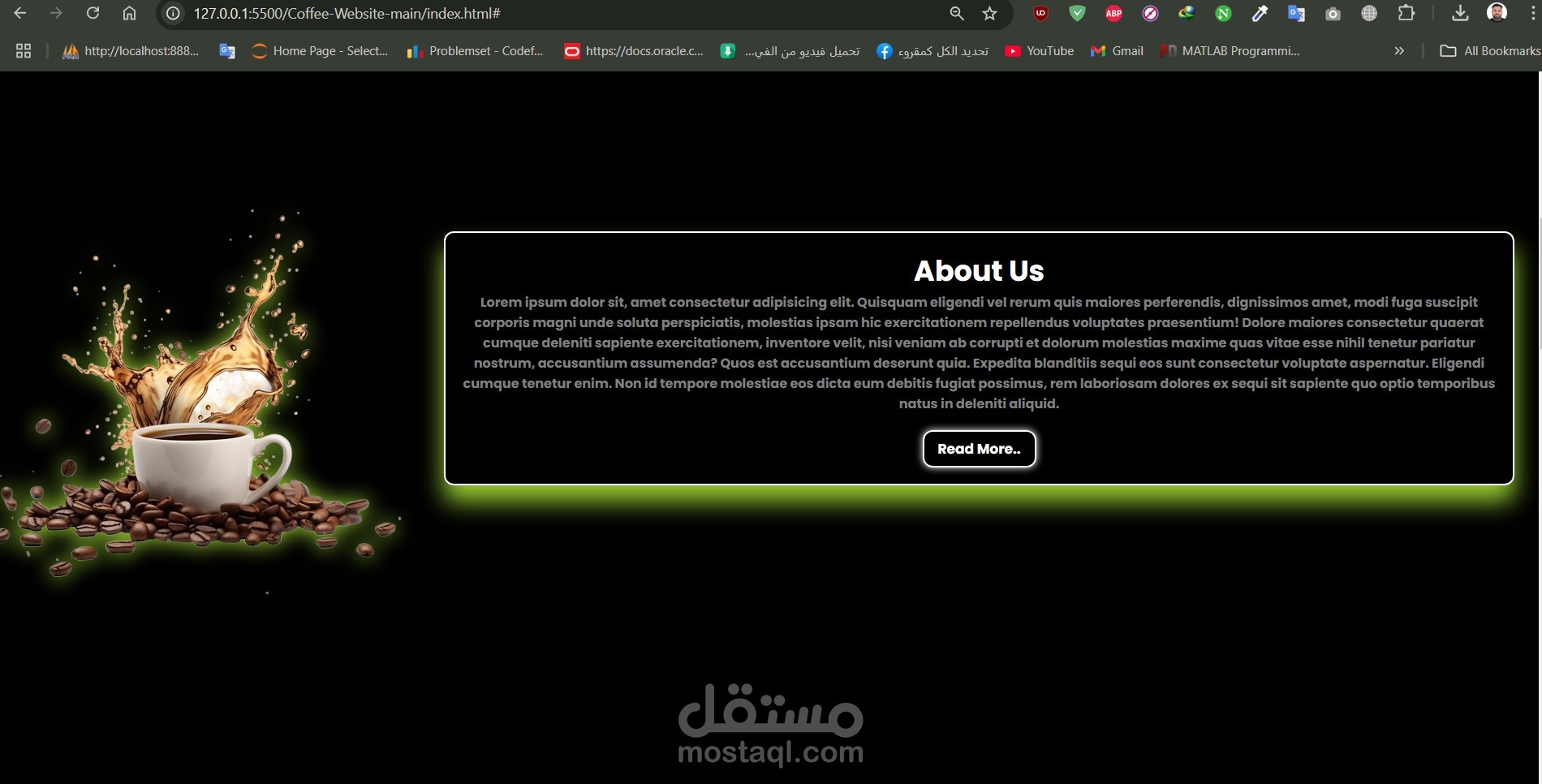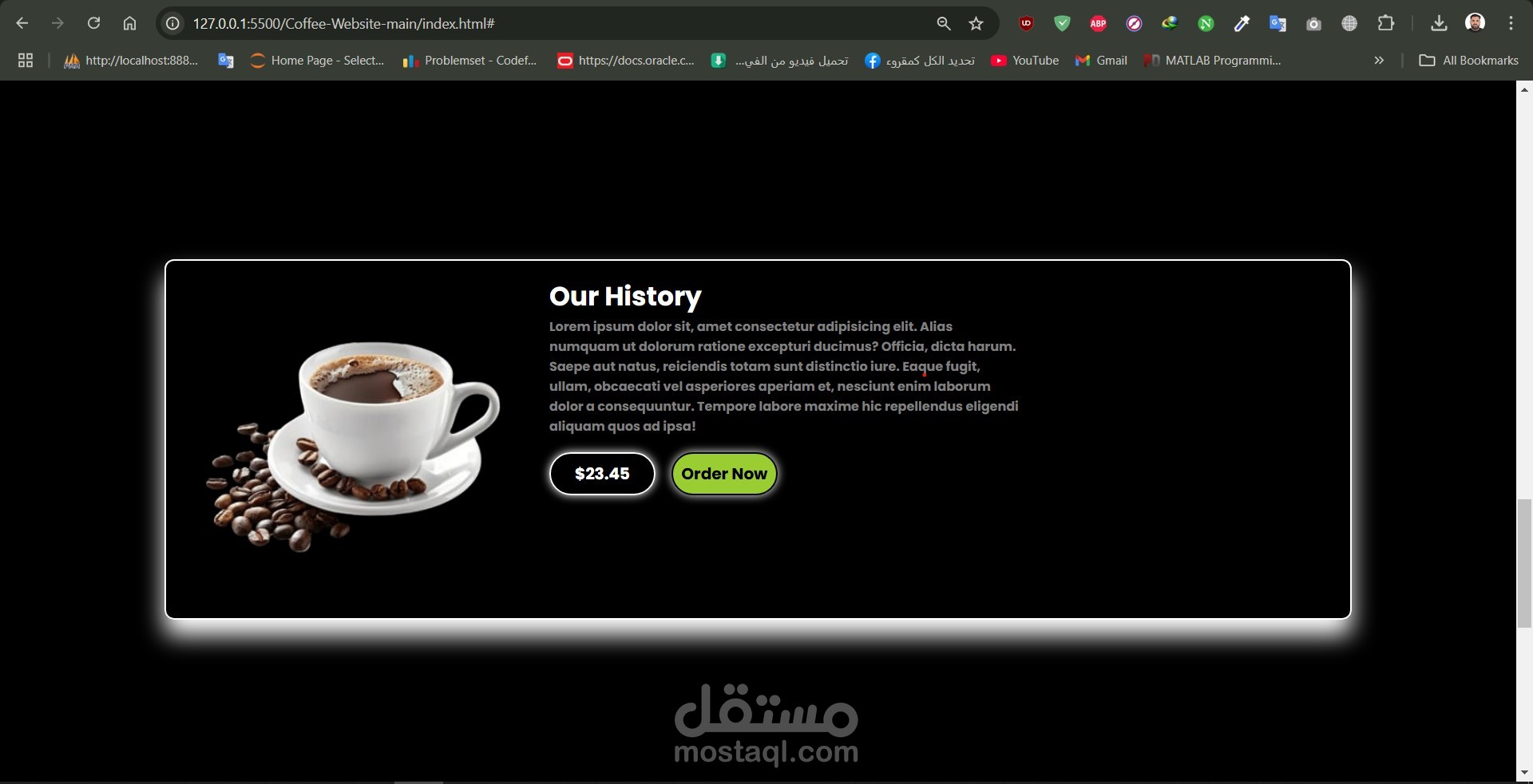 "تصميم صفحة هبوط لموقع Coffee-Website باستخدام HTML، CSS، وJavaScript"