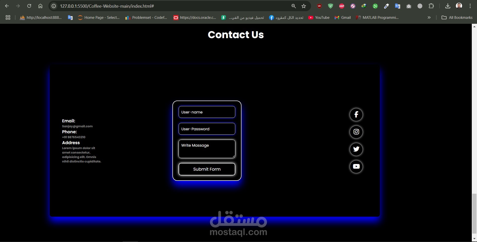اتصل بنا (Contact Us): صفحة تتضمن نموذج اتصال لتمكين الزوار من إرسال الاستفسارات أو التعليقات، مع معلومات الاتصال مثل الهاتف والبريد الإلكتروني.