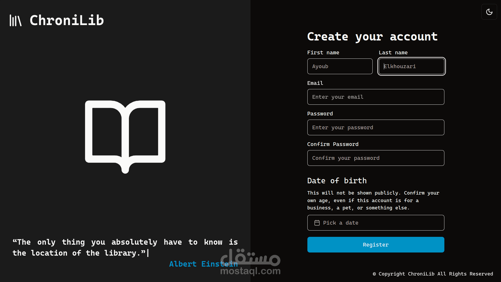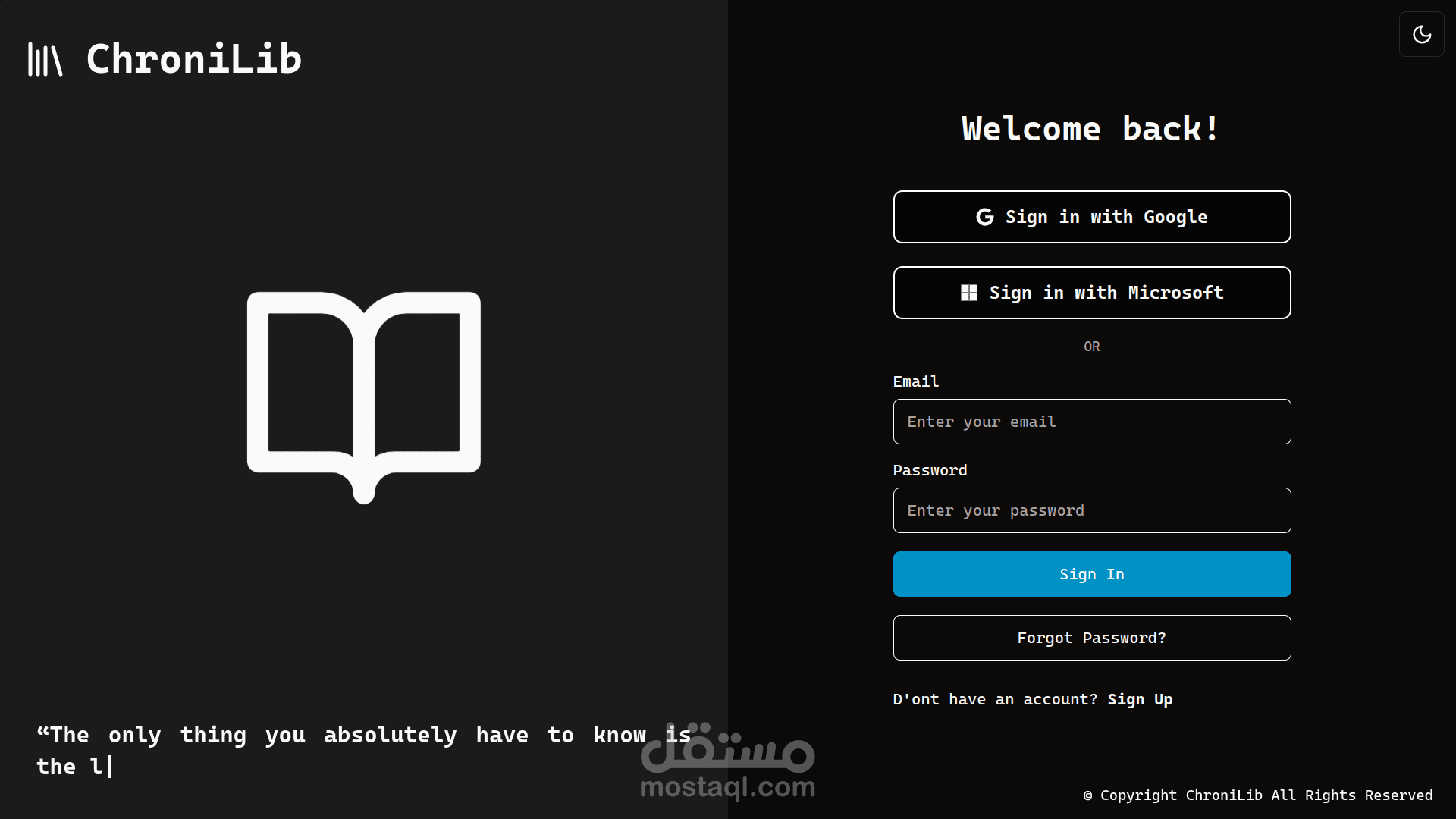 هذا تطبيق لإدارة المكتبات مصمم لإدارة سير العمل الكامل للمكتبة، بما في ذلك شراء الكتب، استئجارها، والمزيد. تم بناء التطبيق باستخدام إطار عمل NEXT.js ويقدم العديد من الميزات: