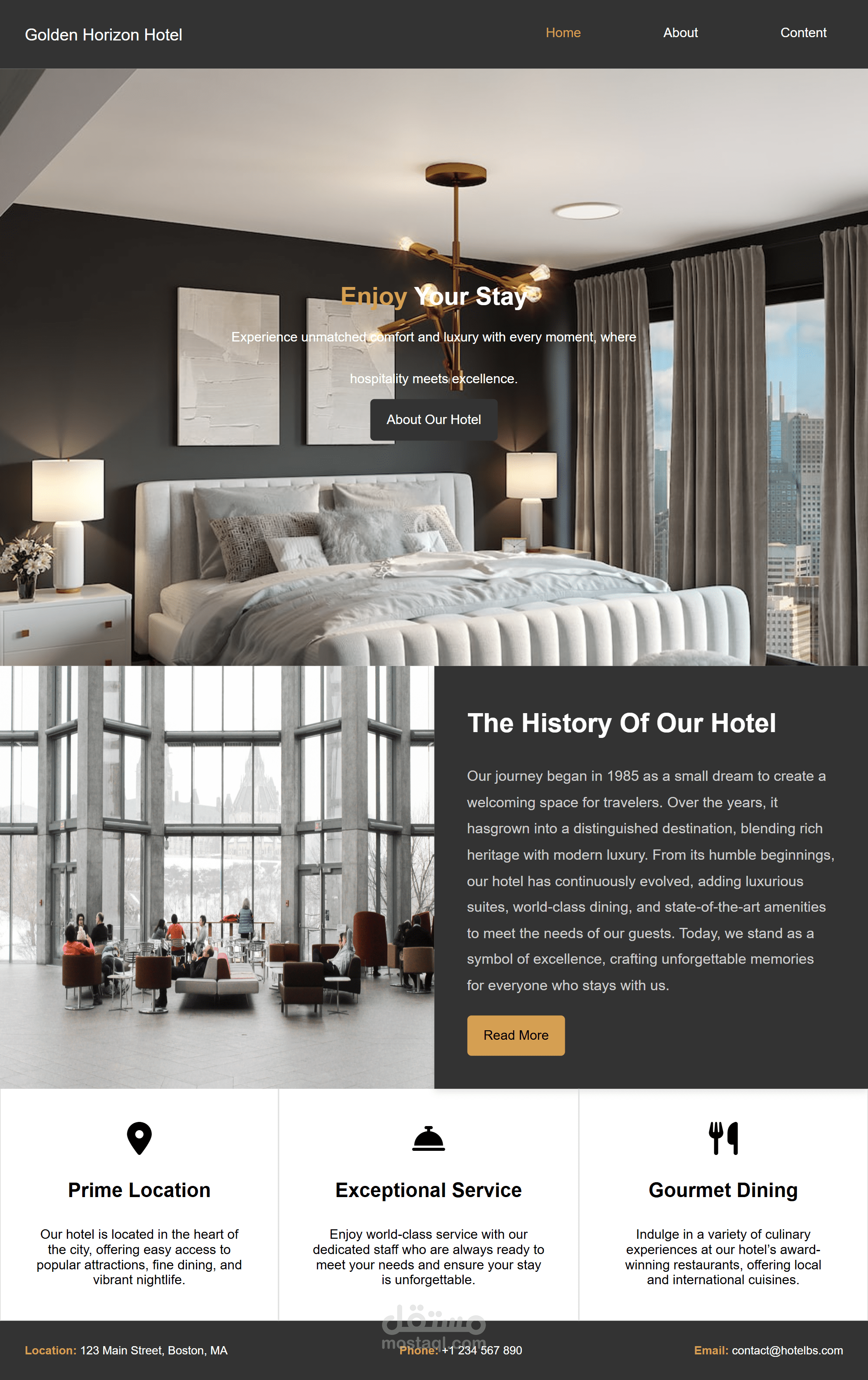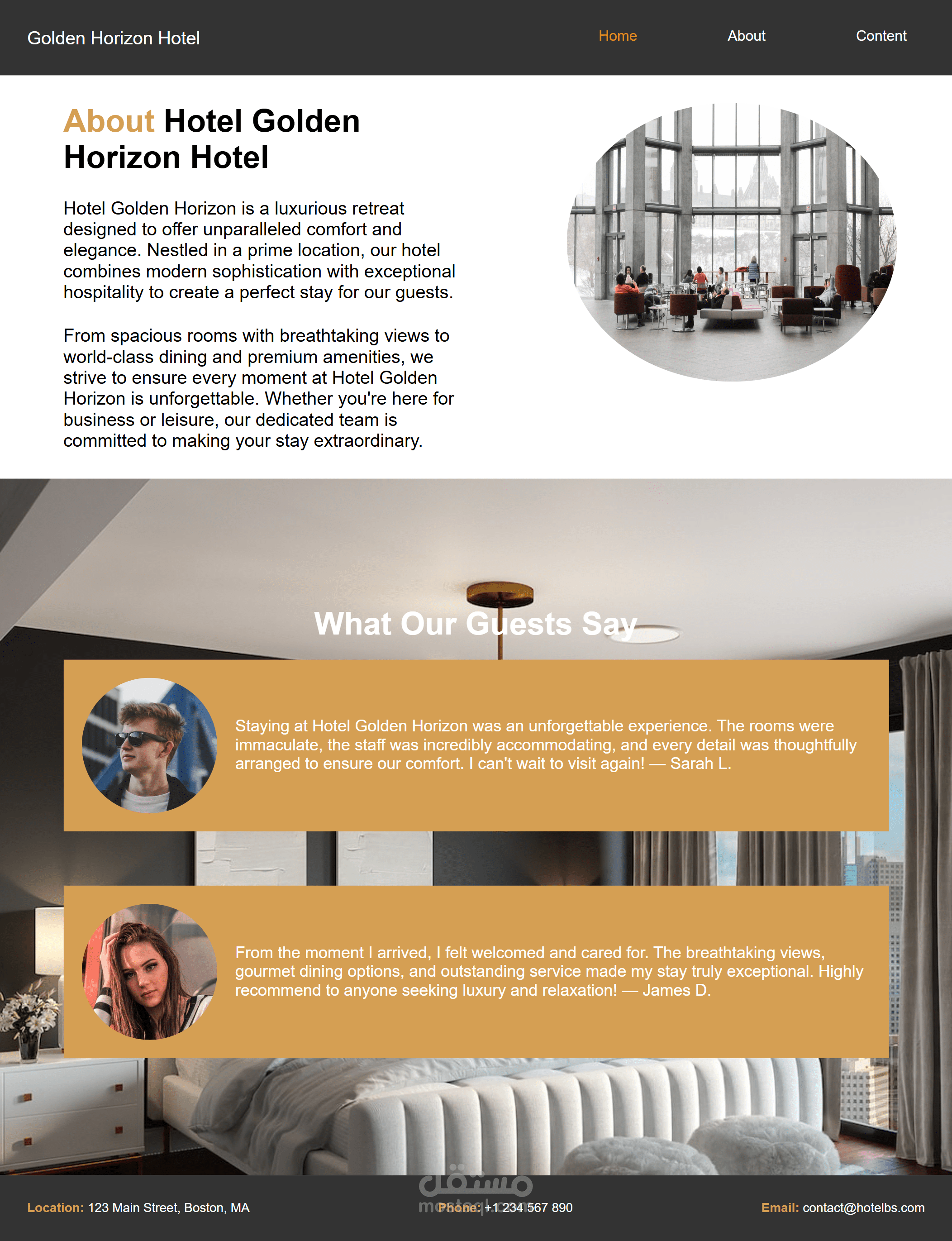 تم تصميم وتطوير واجهة موقع ويب احترافي لفندق باستخدام تقنيات HTML وCSS وJavaScript بهدف تقديم تجربة مستخدم سلسة وجذابة. يركز المشروع على إبراز الهوية البصرية للفندق وتسهيل تفاعل الزوار مع الموقع.