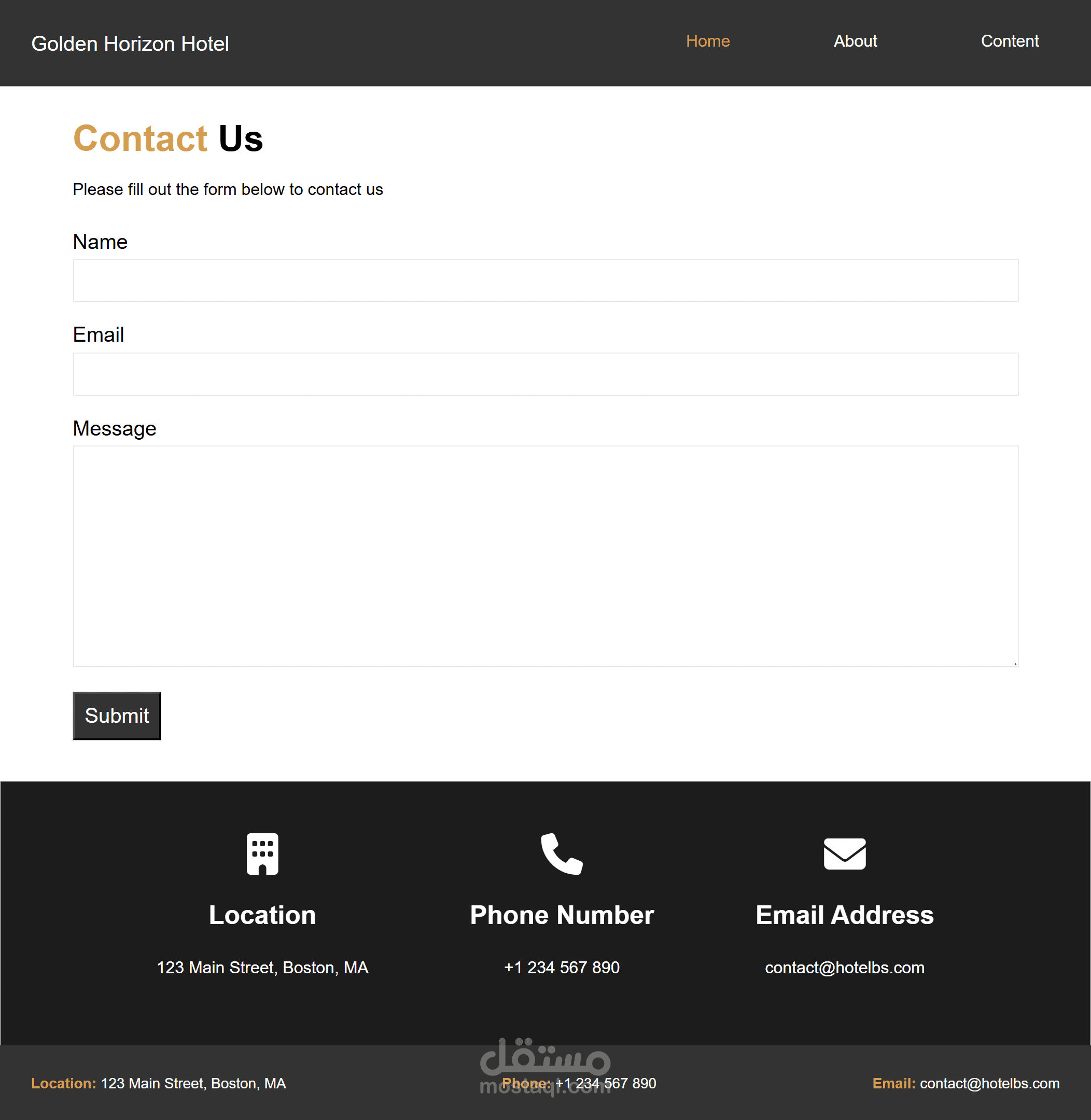تنظيم واضح للأقسام: الصفحة الرئيسية، من نحن، تواصل معنا.