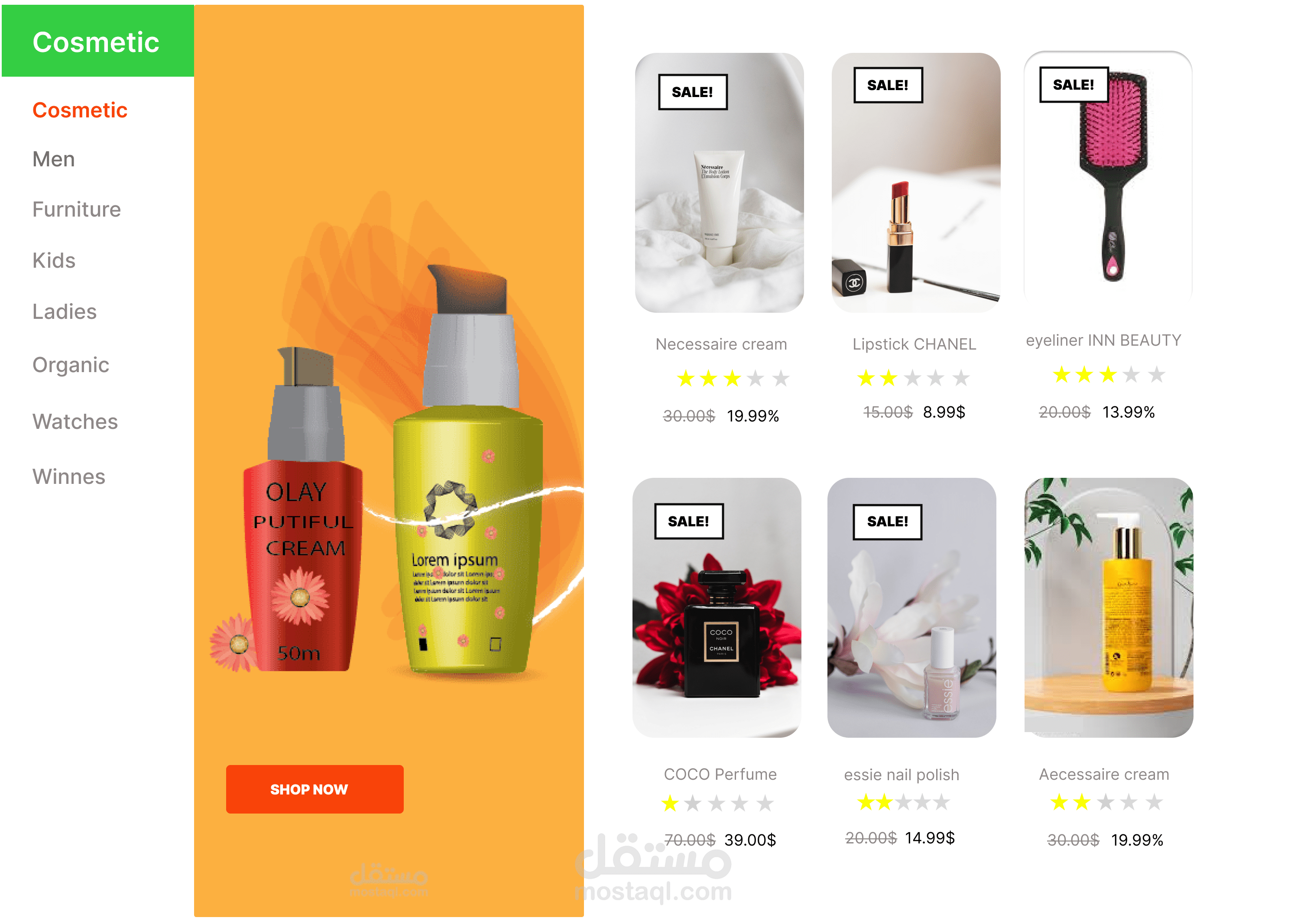 دعم لأقسام متعددة (رجال، نساء، أطفال، أثاث، مستحضرات التجميل).