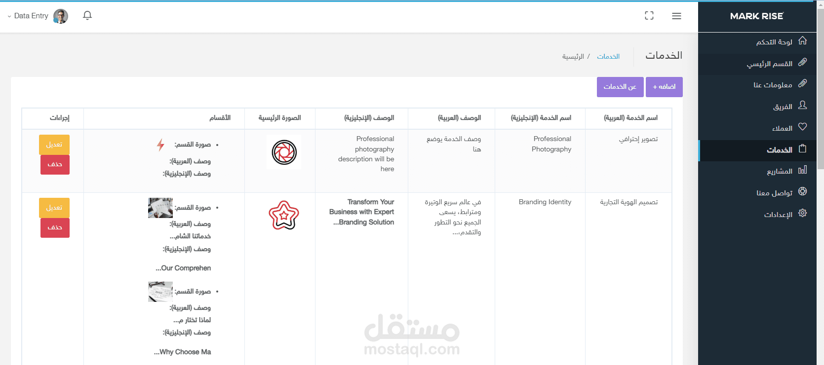 تم عمل لوحة تحكم للتحكم الكامل في الموقع مع الدعم الكامل للغة العربية والانجليزية .