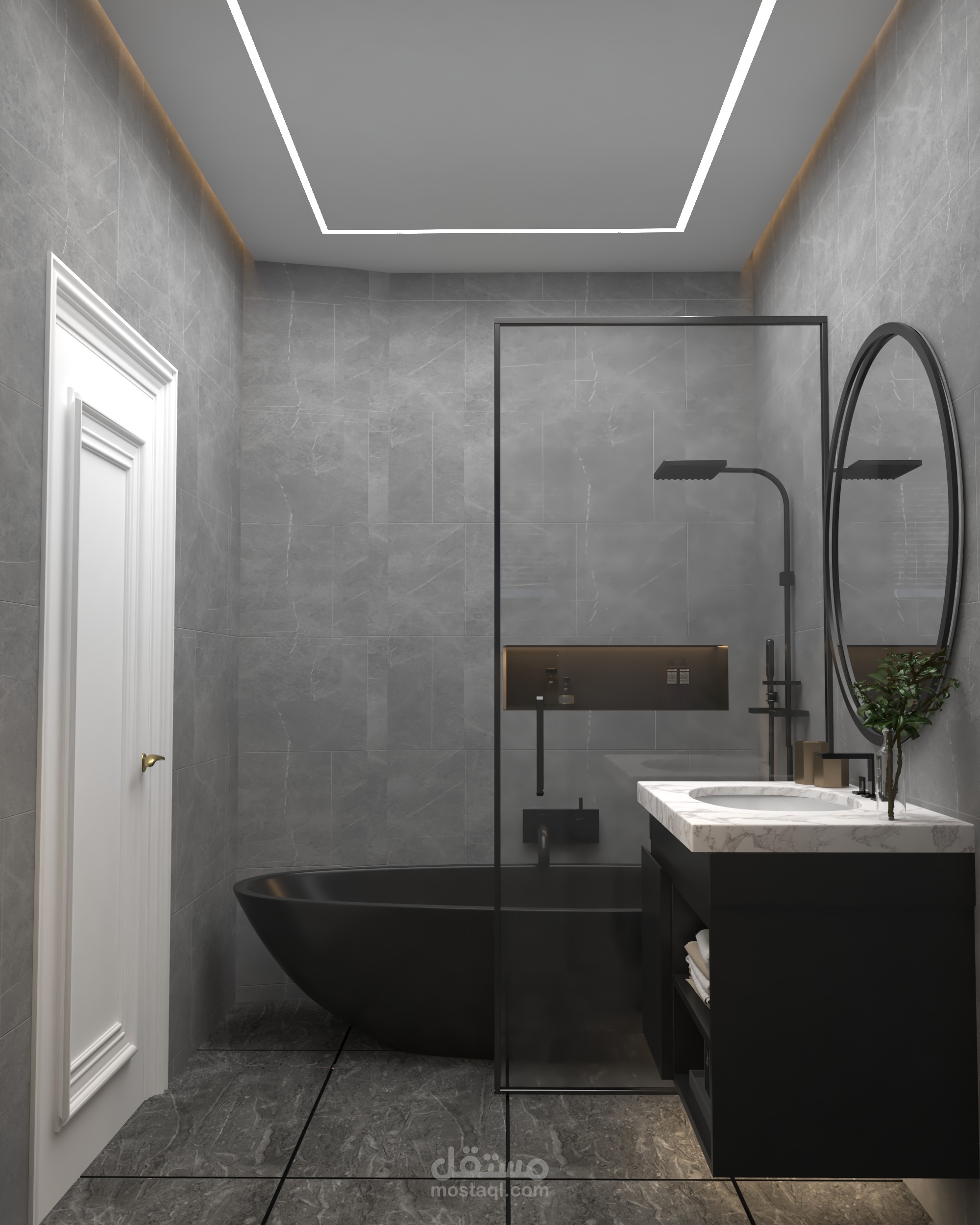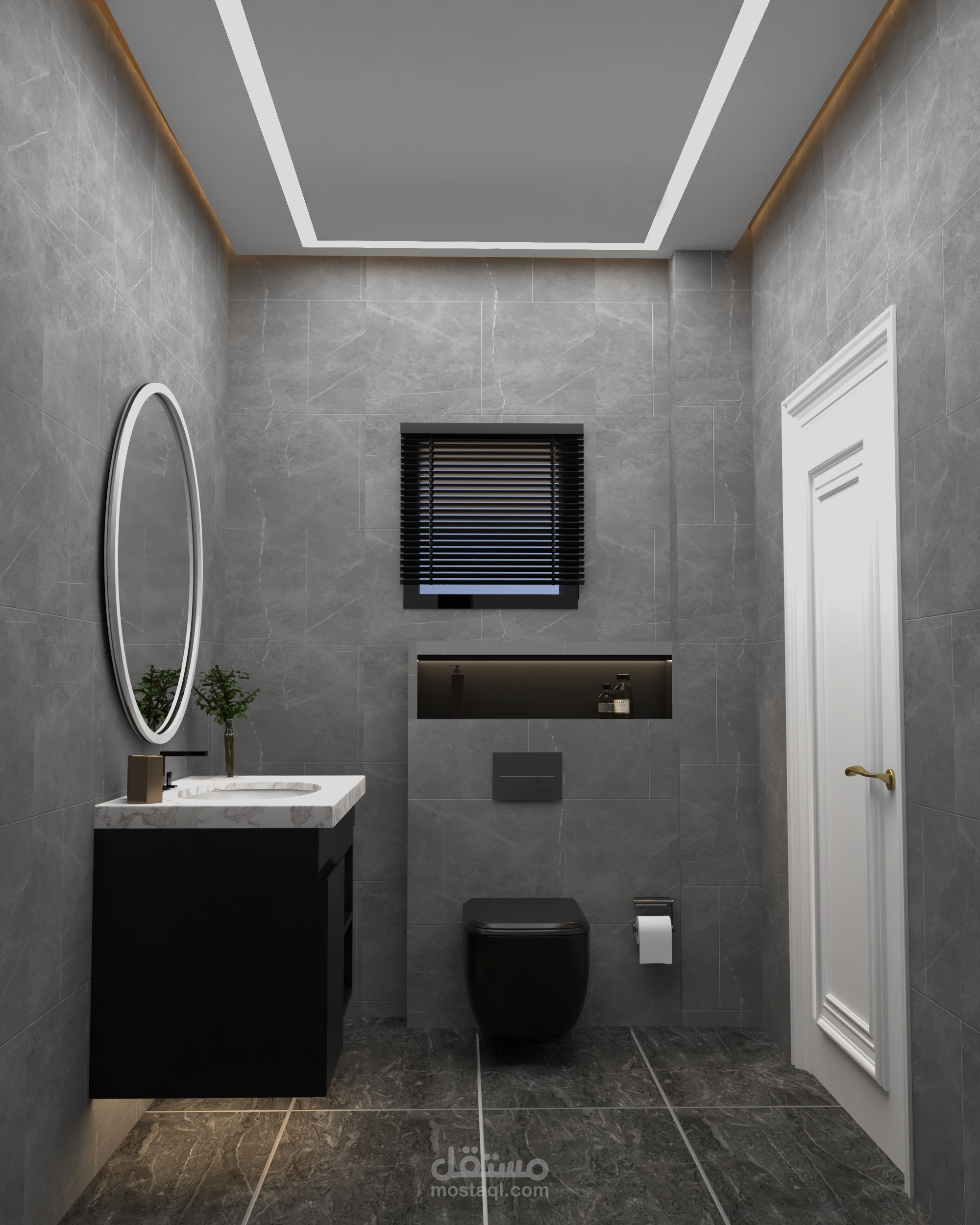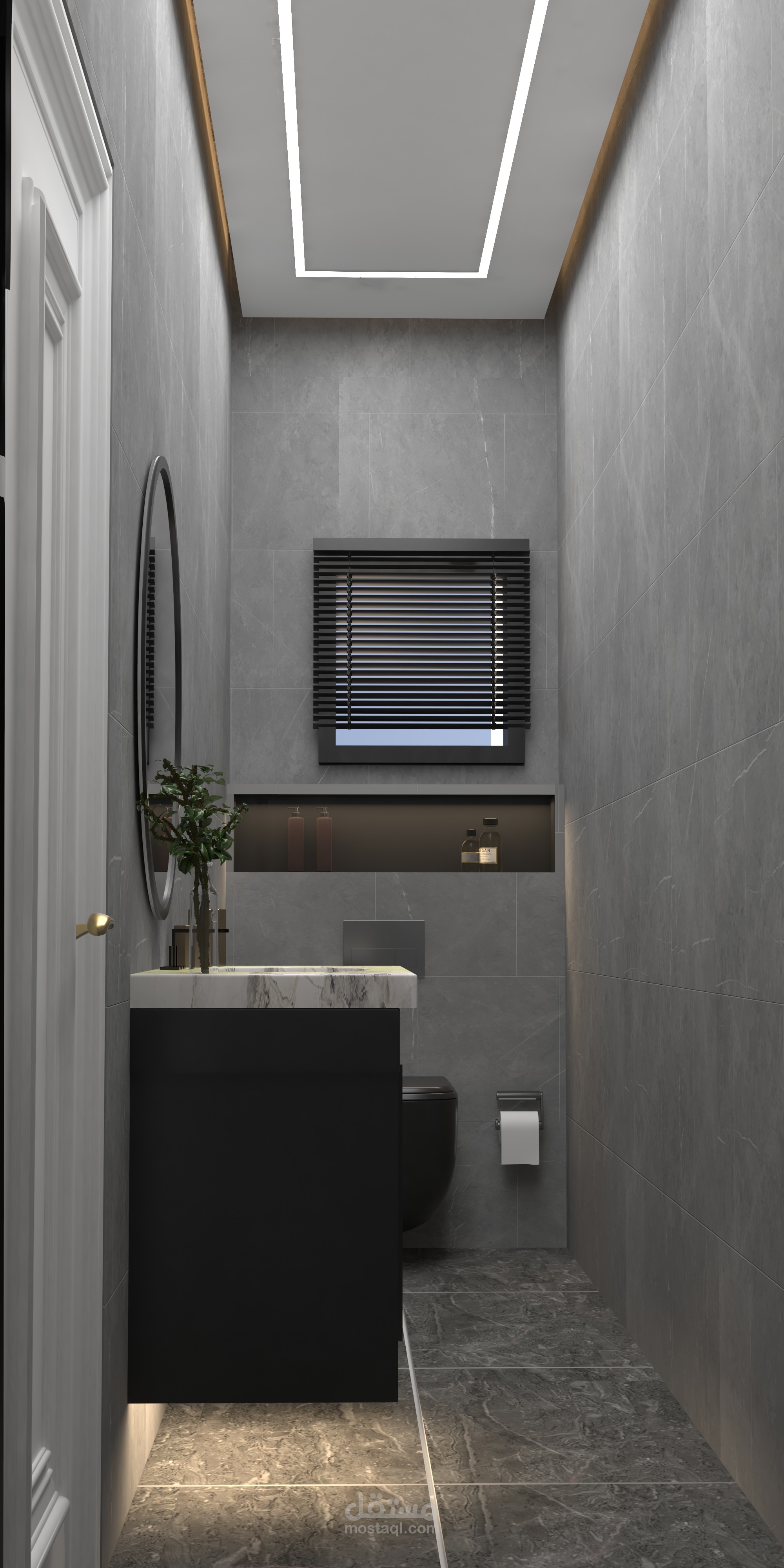 تصميم داخلي بالنمط الحديث لبيت مكون من طابقين.