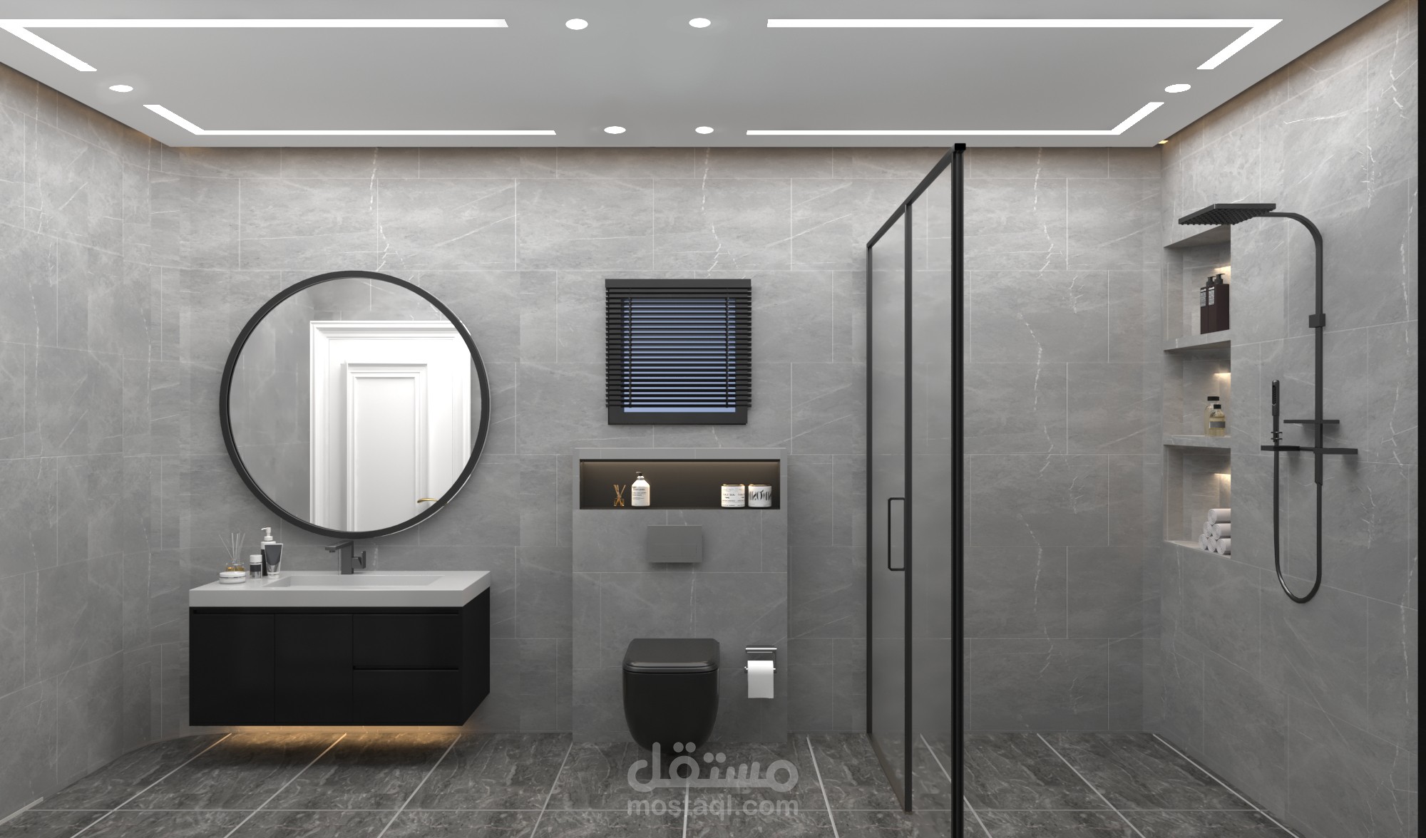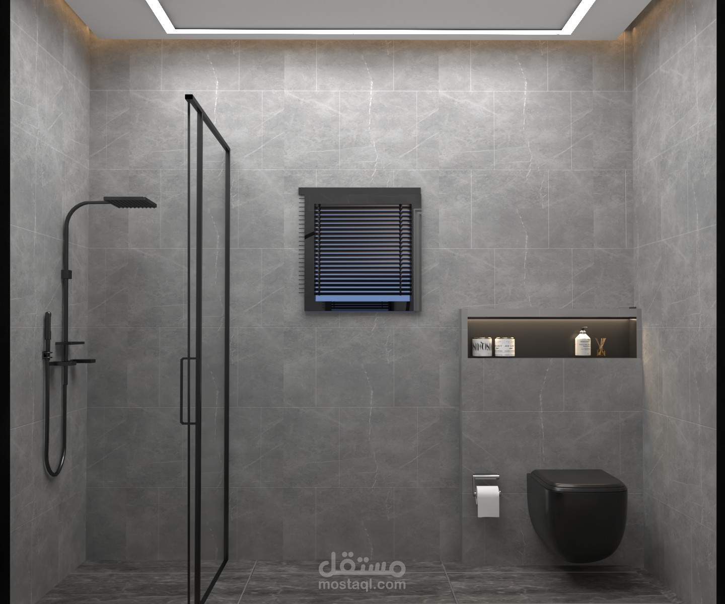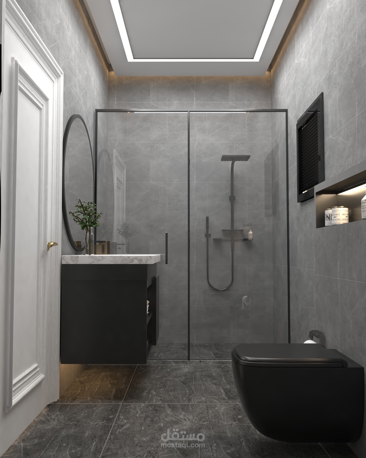 تصميم داخلي بالنمط الحديث لبيت مكون من طابقين.