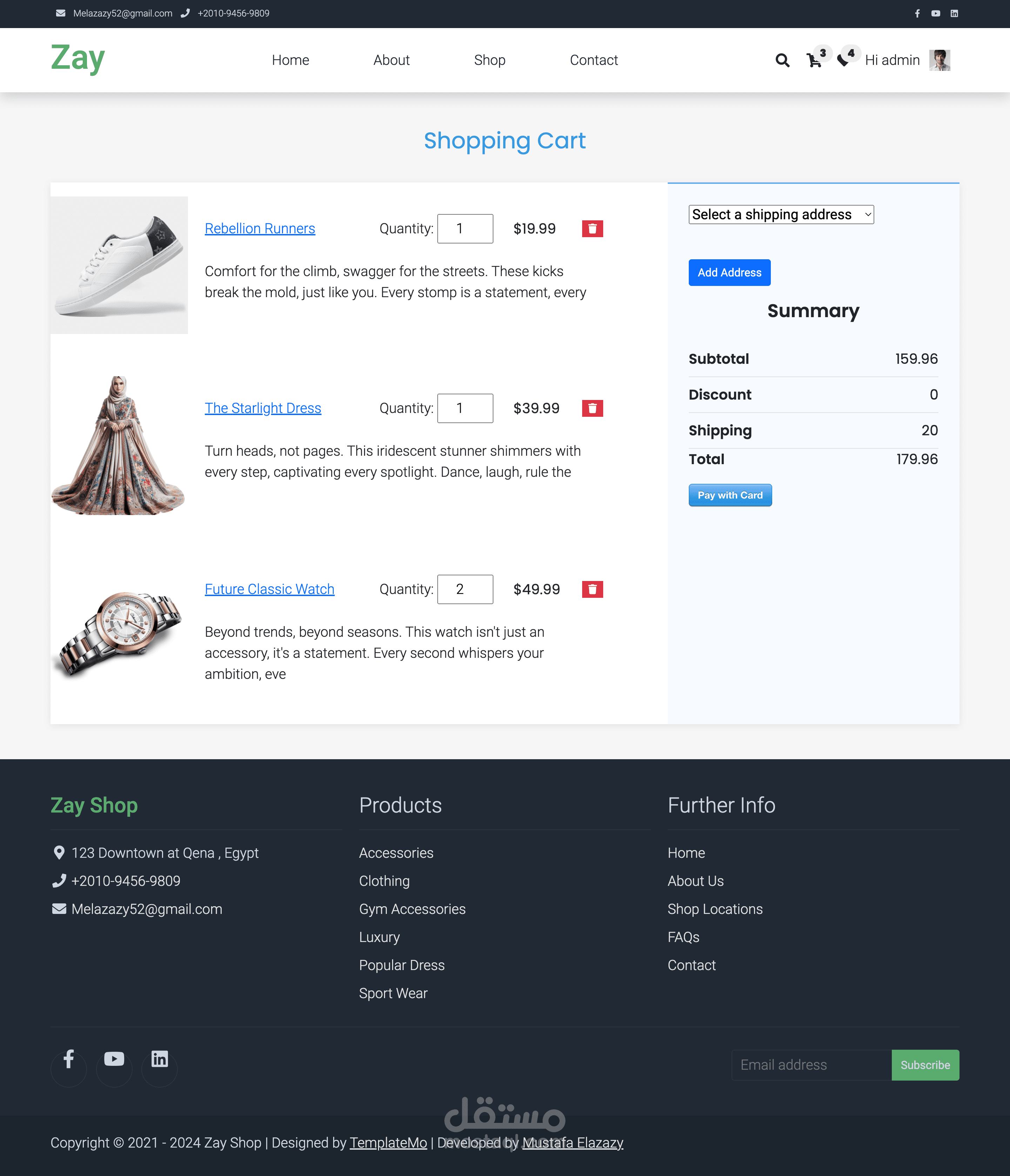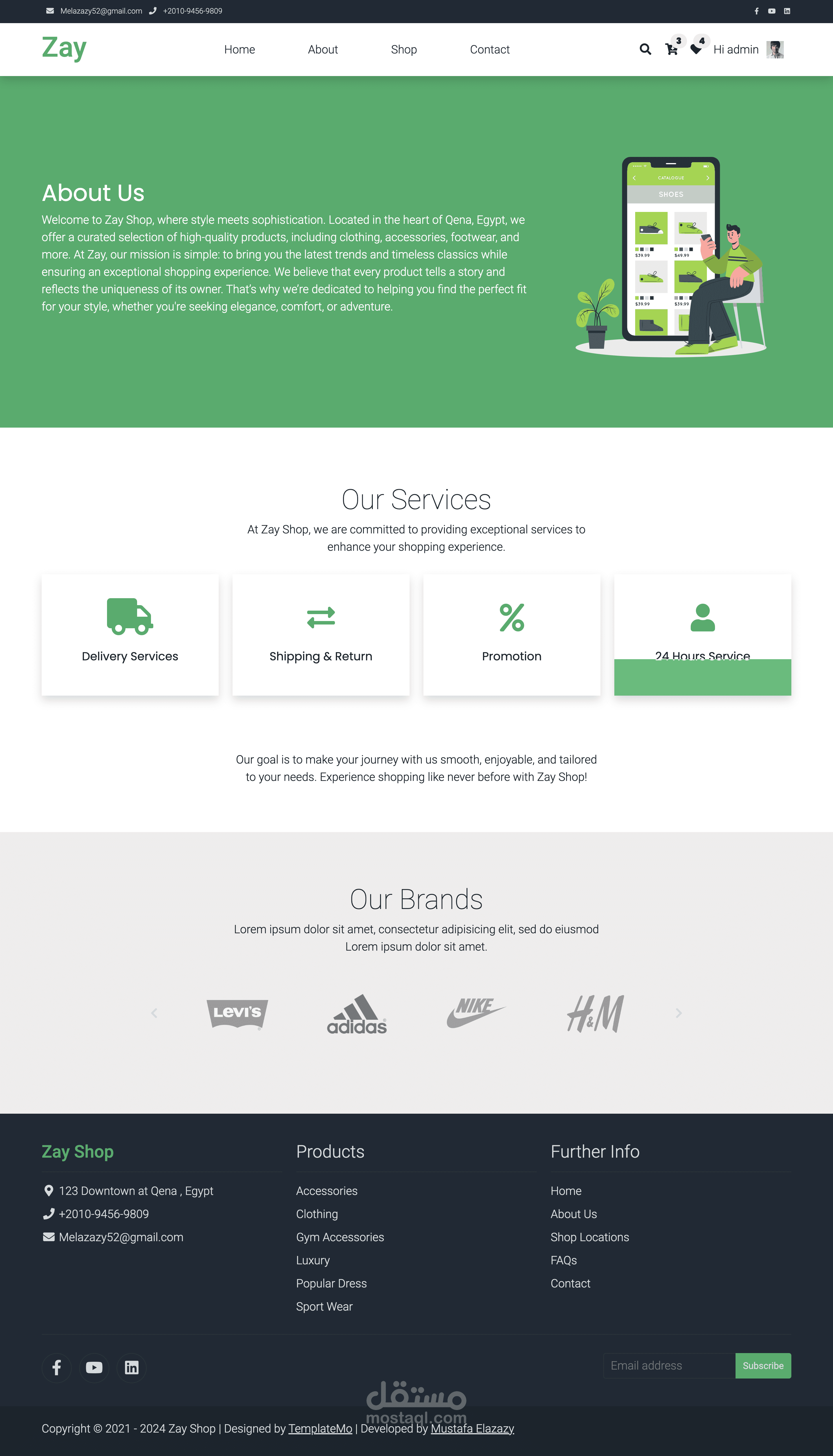 •يحتوي الموقع على لوحة تحكم إدارية تسمح للإدارة بإضافة وتعديل وحذف المنتجات بسهولة، بالإضافة إلى إدارة الطلبات والعملاء.