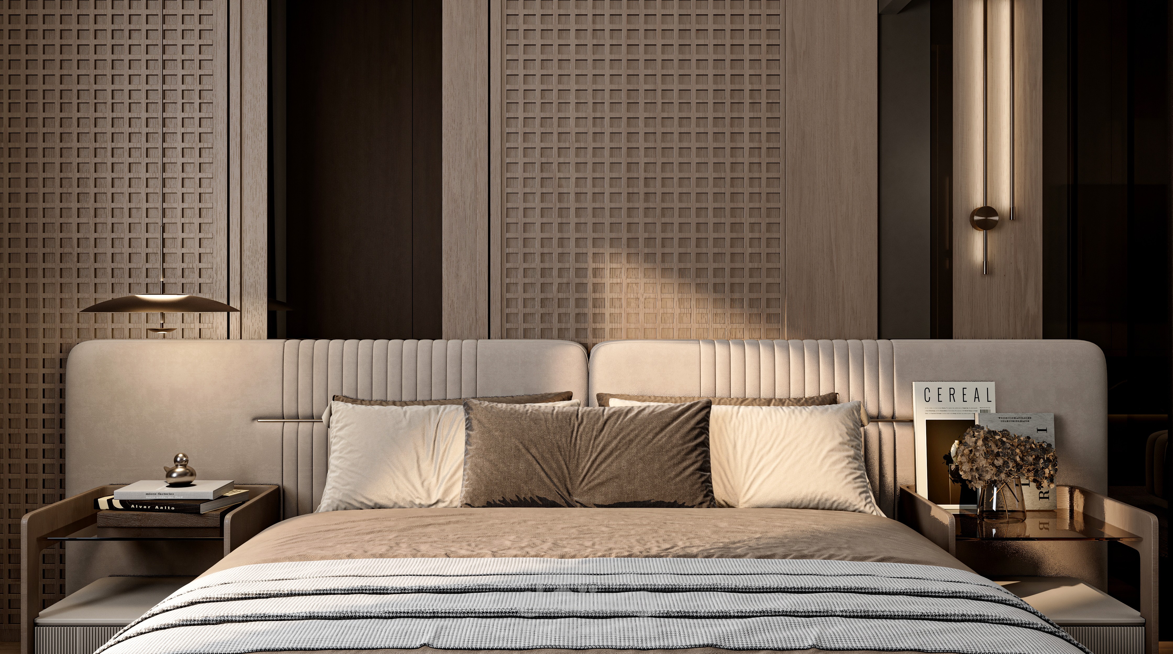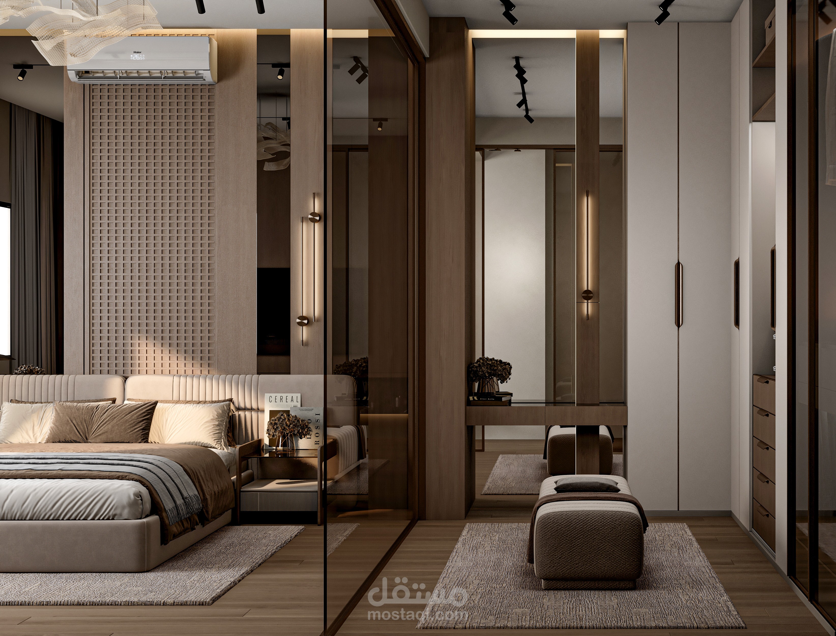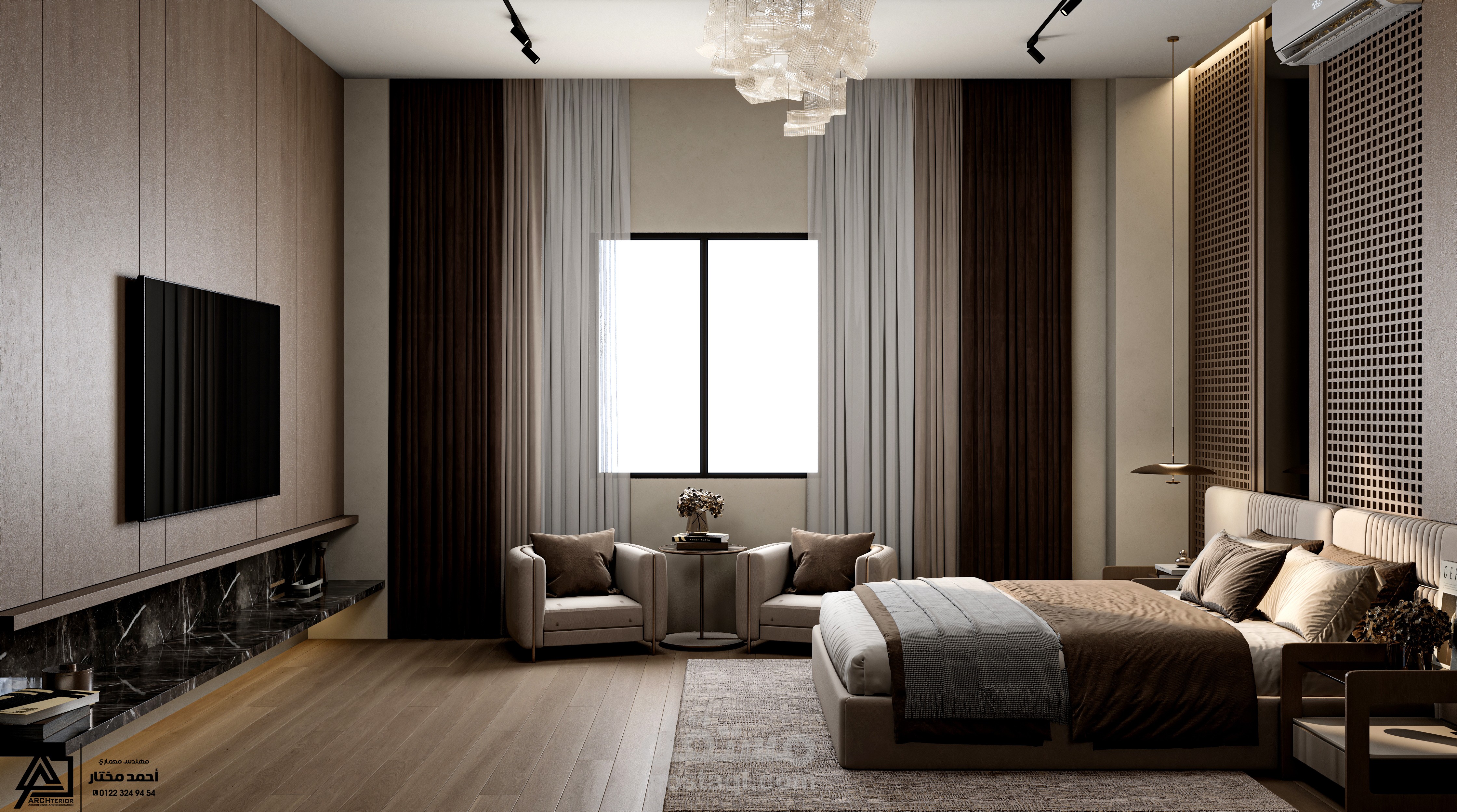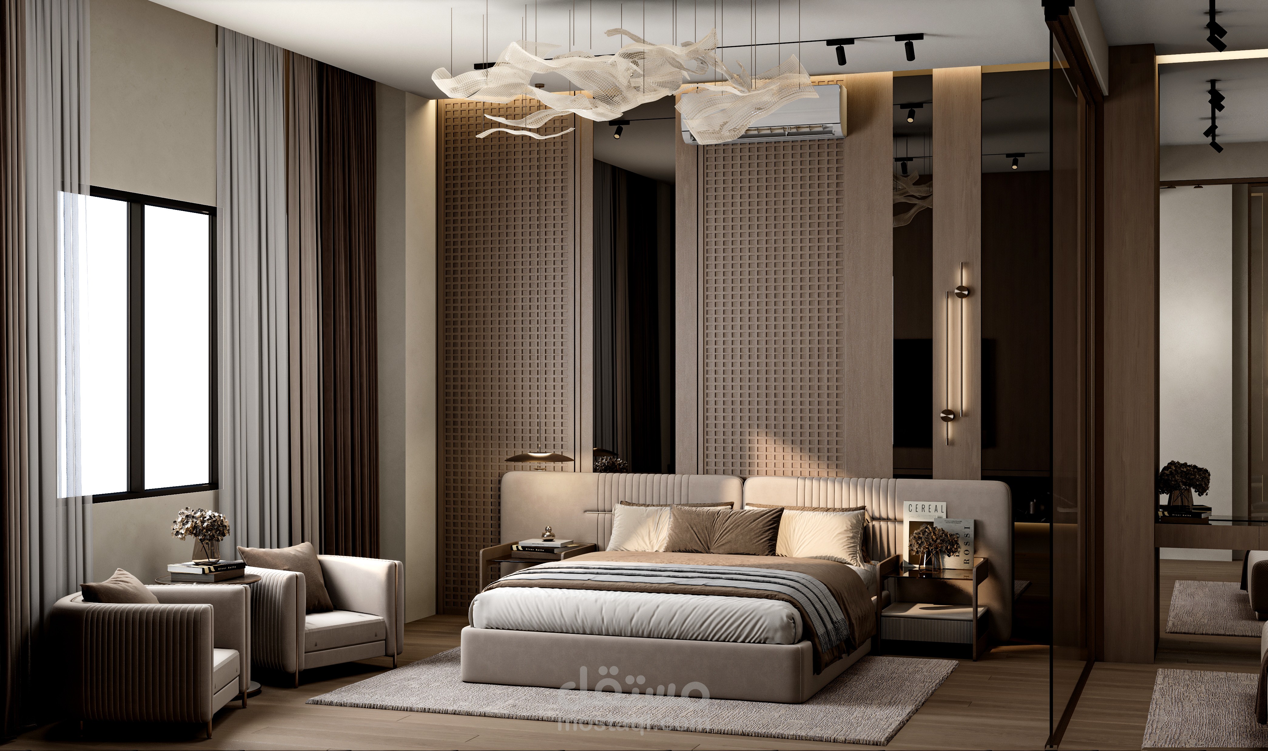 تصميم غرفة ماستر على الطراز المودرن العصري يجمع بين الأناقة والراحة مع مراعاة التفاصيل الوظيفية