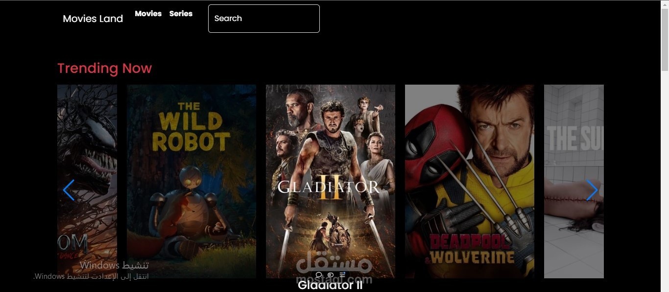 also contains a slider that displays the trending movies vurrently and it updates every day