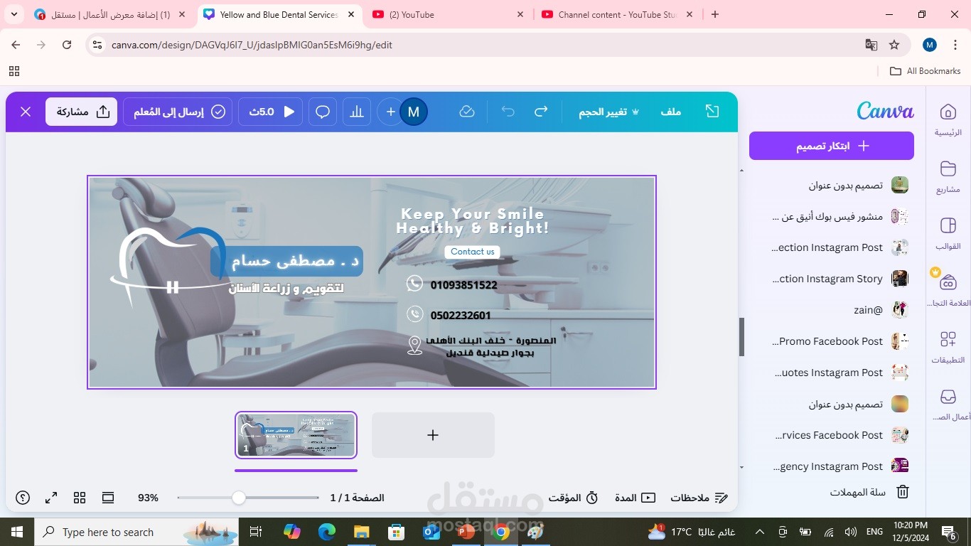 تصميم كافر لصفحة طبيب اسنان على مواقع التواصل الأجتماعي