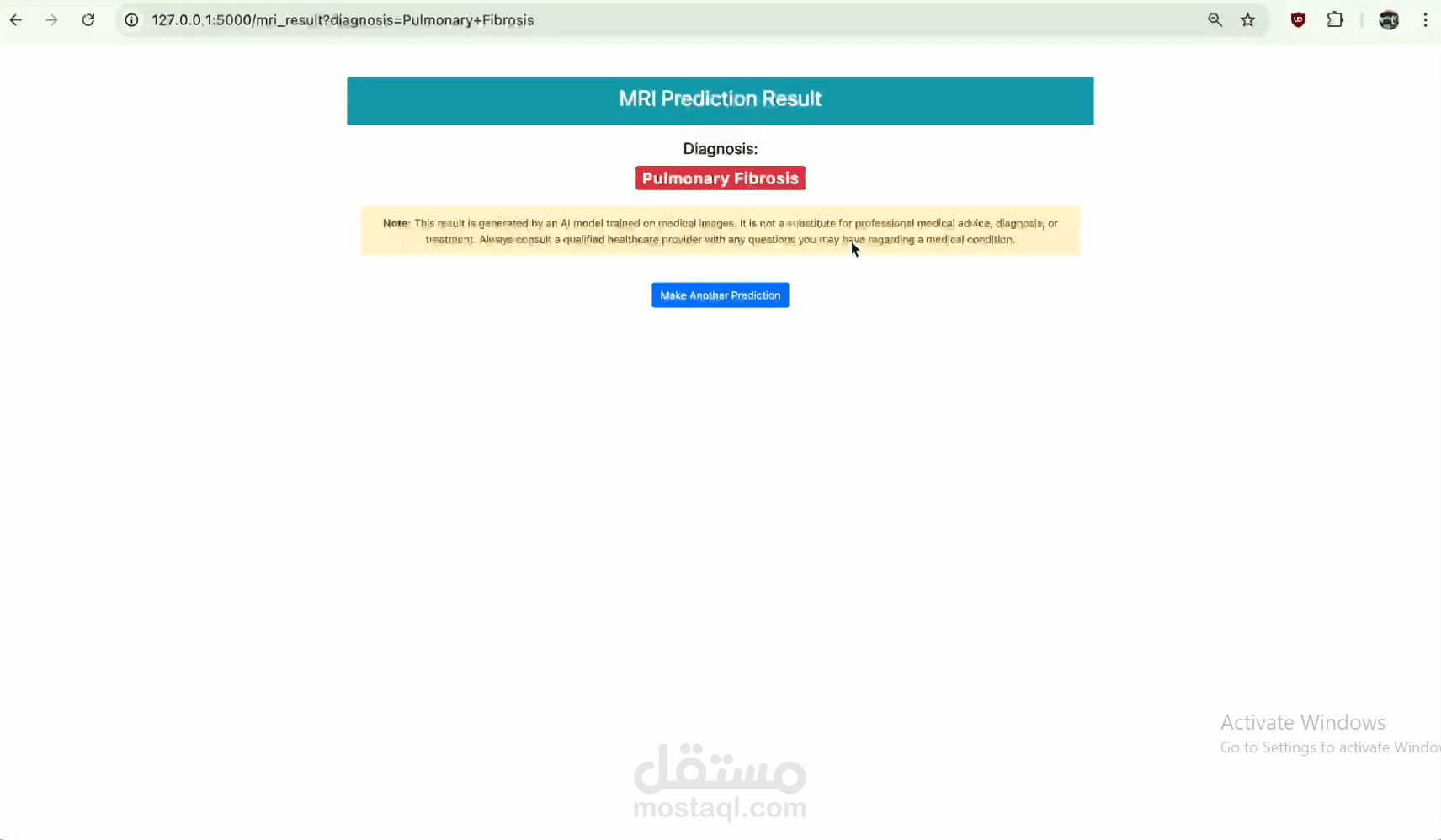 النظام نجح في تقديم منصة دقيقة لتحليل وتشخيص أمراض الرئة. استخدم تقنيات التعلم العميق لتحليل صور الأشعة السينية والرنين المغناطيسي بدقة عالية. ده ساعد في تحسين سرعة التشخيص وتقليل الأخطاء البشرية