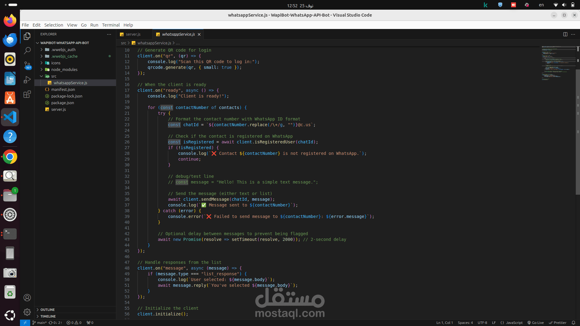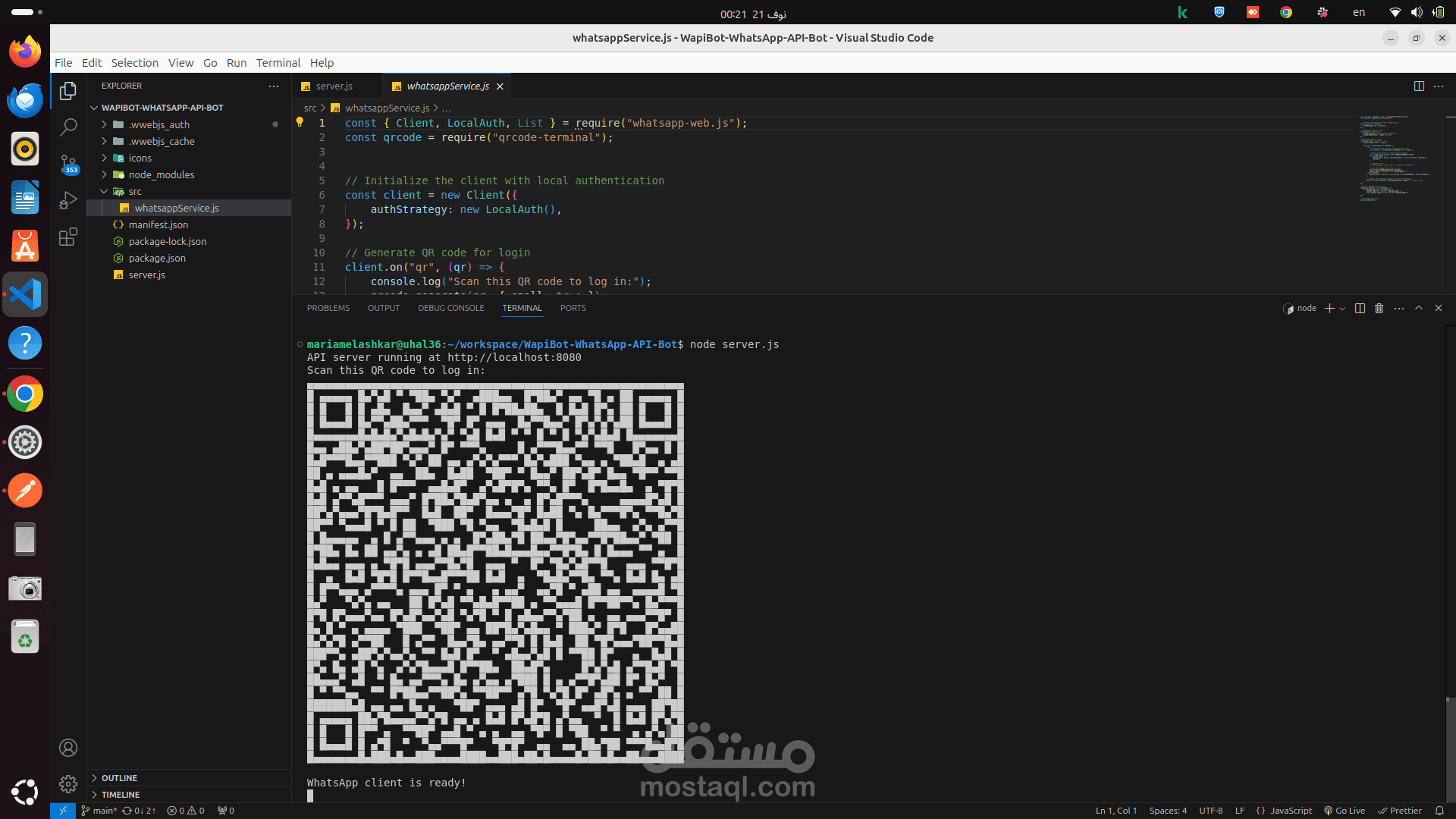 whatsapp-web.js : مكتبة للتعامل مع واجهة WhatsApp.