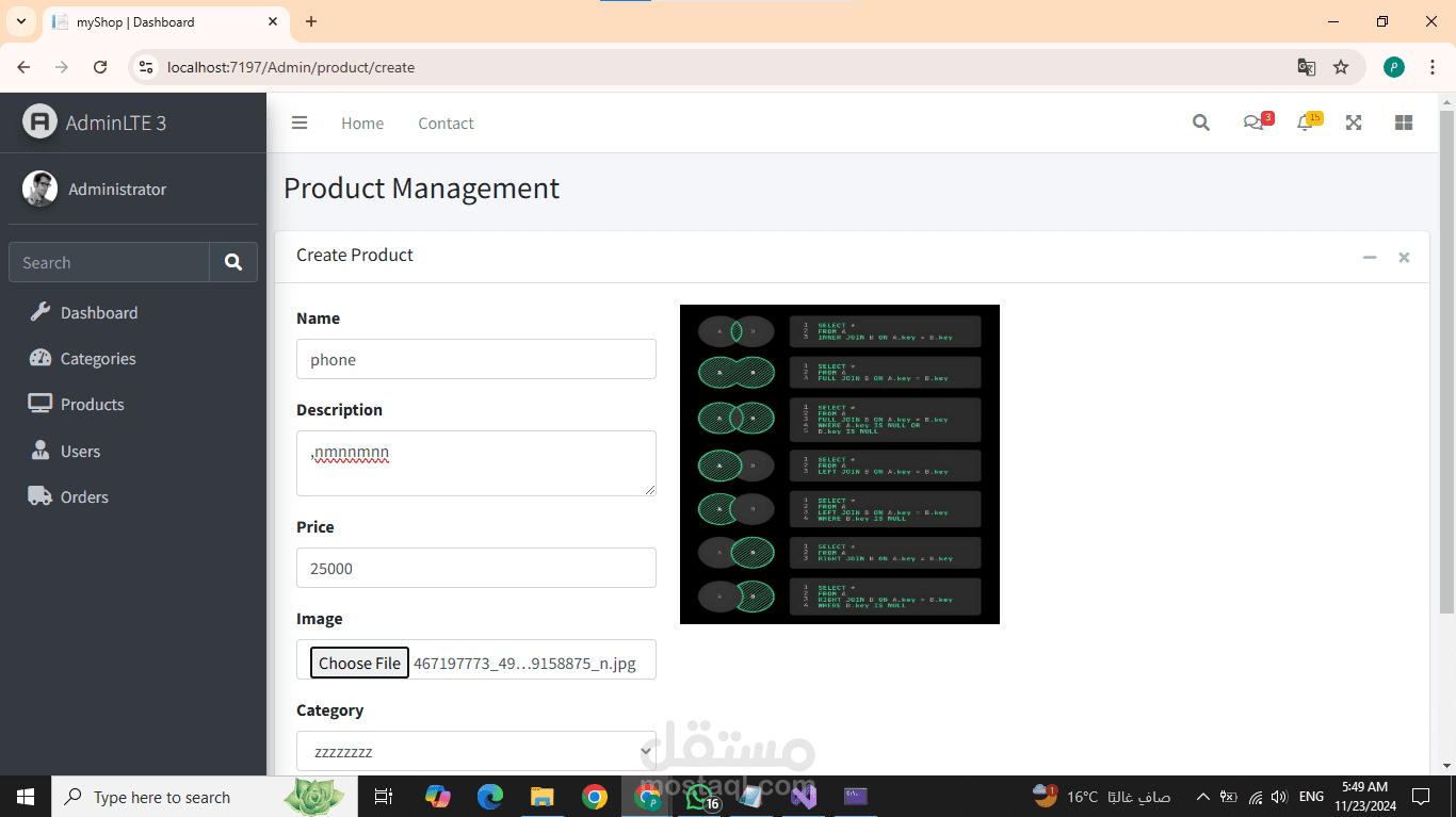 لوحة تحكم للإدارة: إدارة شاملة للفئات، المنتجات، والمستخدمين عبر واجهة مخصصة للإدارة.