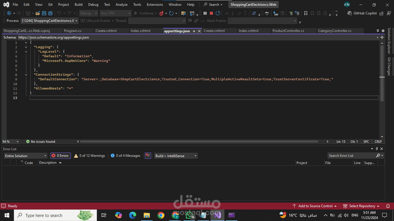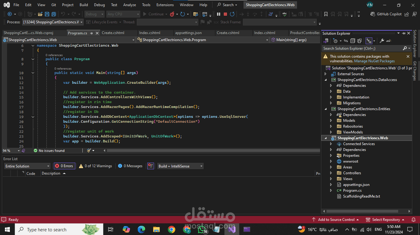 Back-End: ASP.NET Core MVC مع Entity Framework Core لتطوير منطق الأعمال وربط قواعد البيانات.