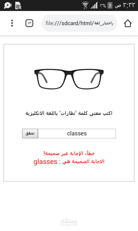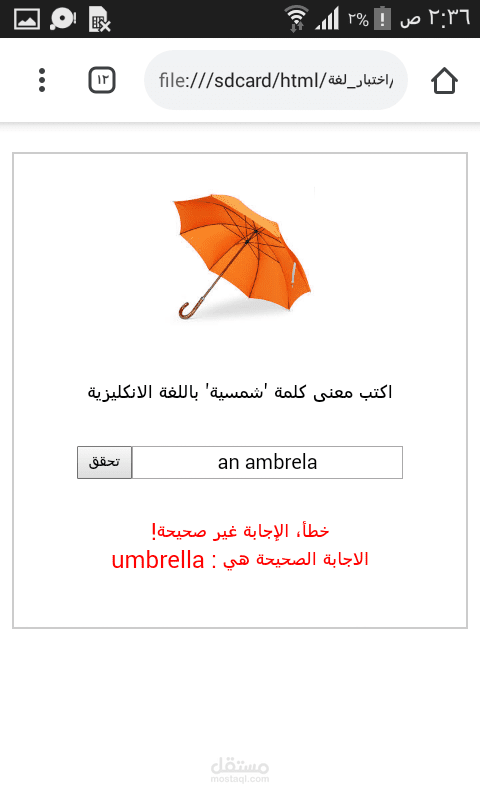 قمت ببرمجة اختبار لكلمات اللغة الانكليزية بشكل جذاب و مرتب