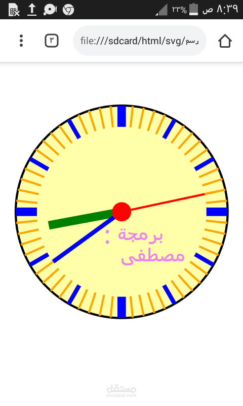 برمجة ساعة عقارب متحركة و متزامنة مع توقيت الهاتف باستخدام ( html , css , javascript , svg )