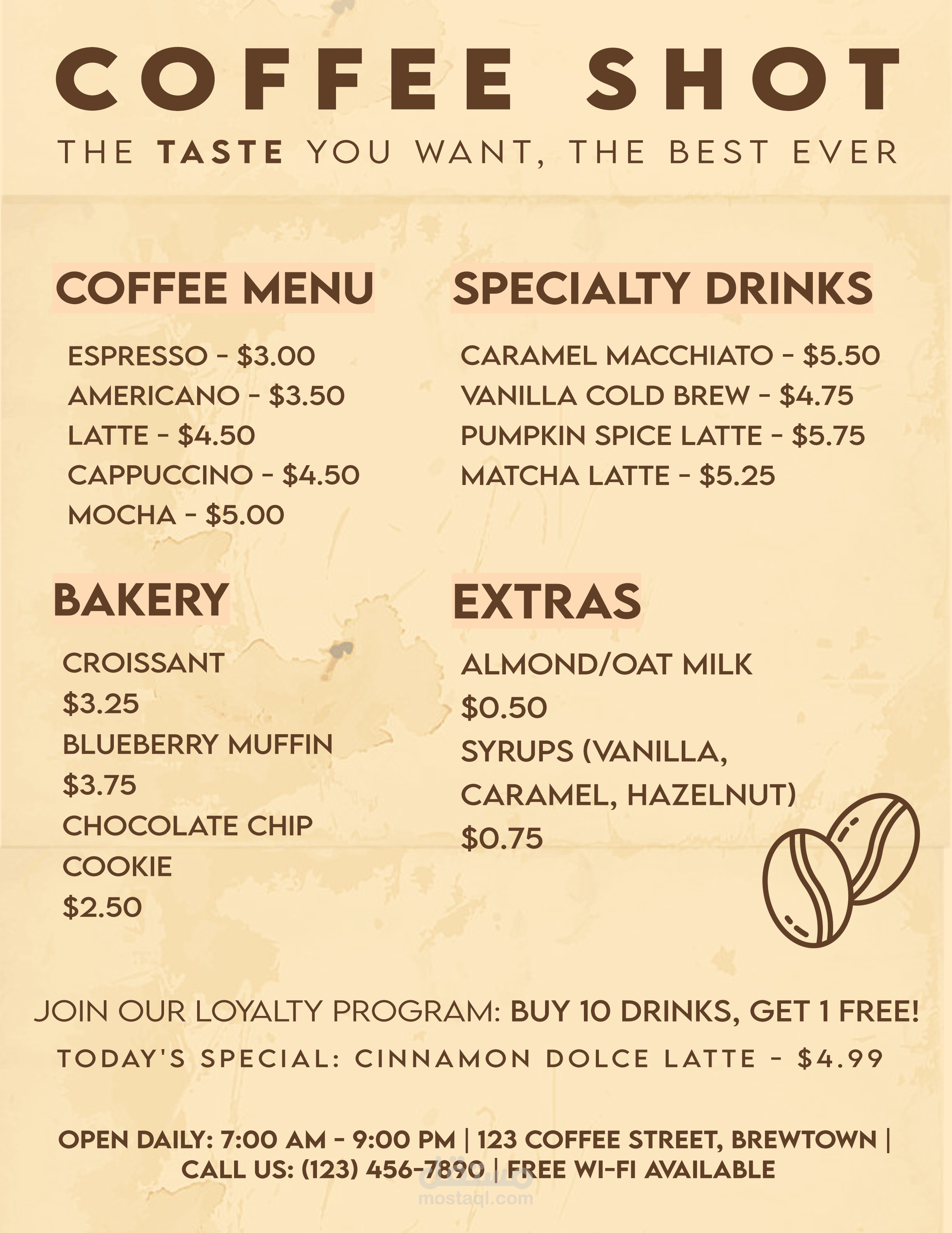COFFEE SHOT MENU DESIGN
