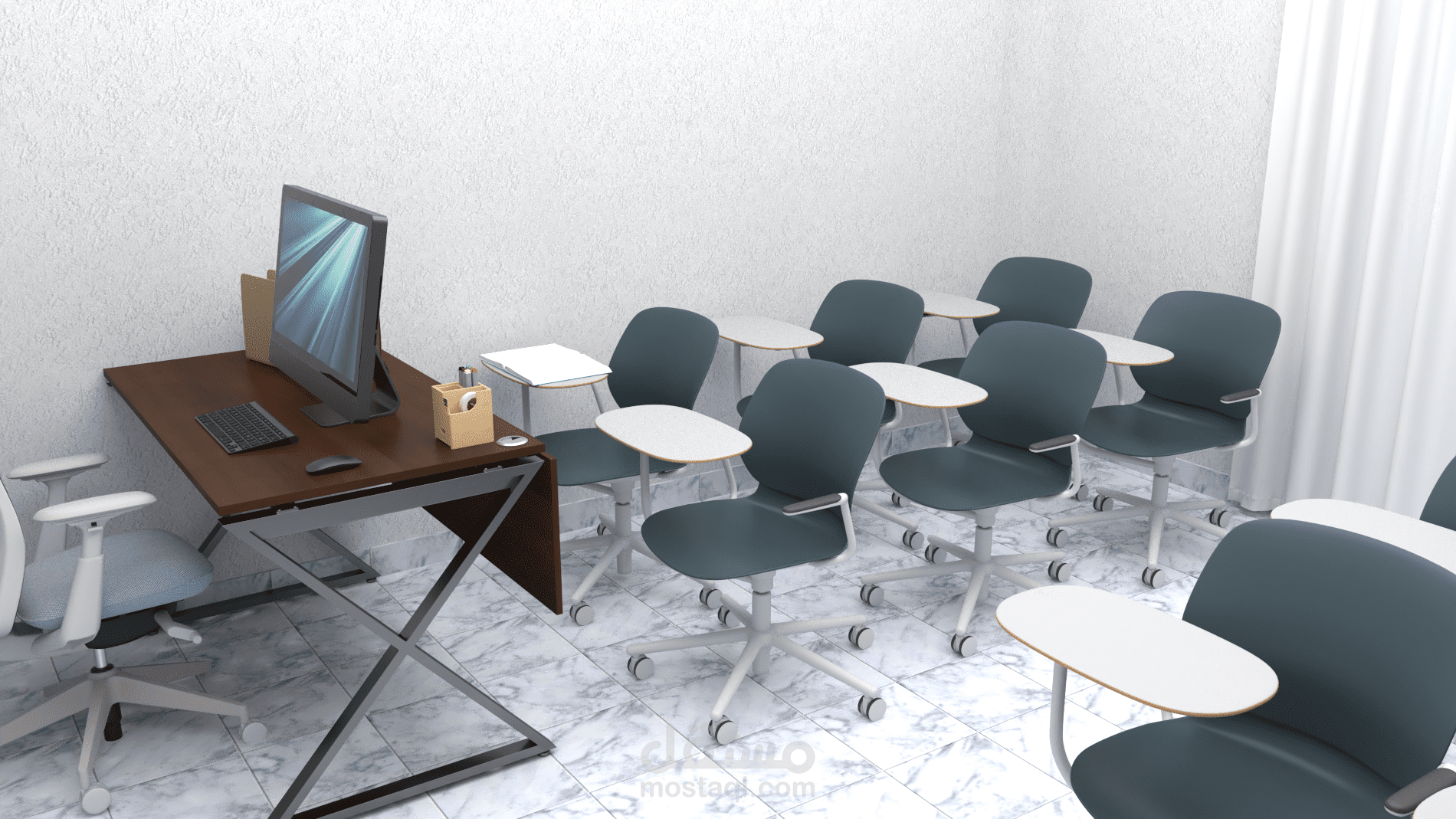 مشروع مبنى تعليمي بالقاهرة يشمل فصول دراسية و مكاتب ادارية و غرفة اجتماعات و منطقة انتظار و كافيتيريا صغيرة لاستقبال الطلاب في كل مراحل التعليم المدرسية.