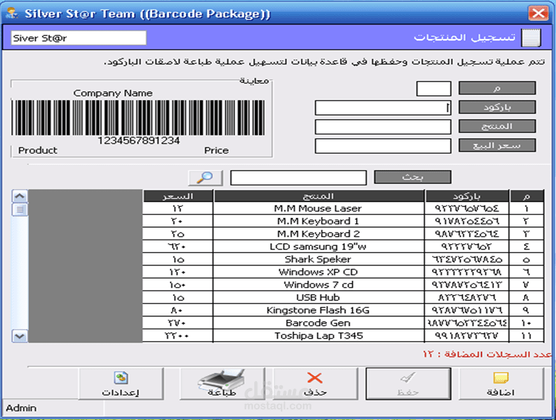 تطبيق لطباعة ملصقات الباركود للمنتجات مع خيارات اظهار الشركة والسعر والباركود وتاريخ الصلاحية