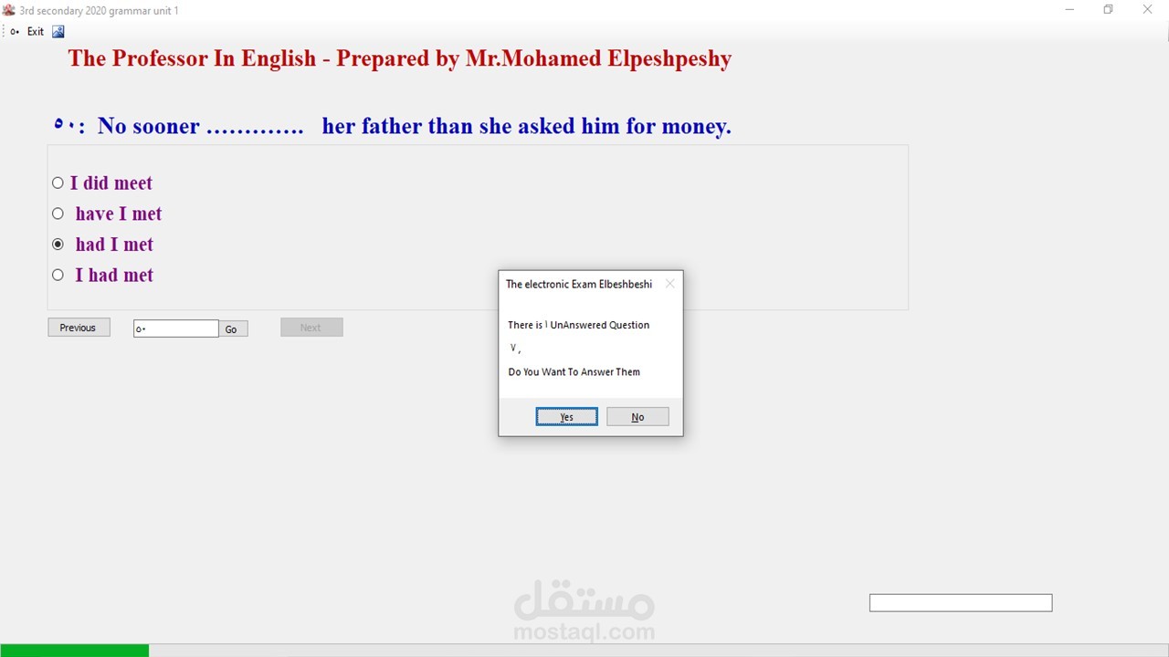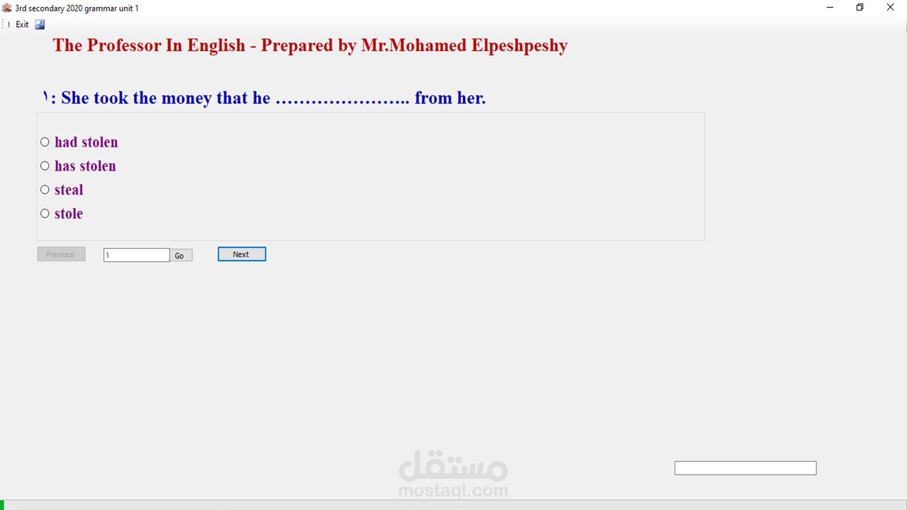 - يقوم البرنامج باعداد امتحان بشكل عشوائي متغير كليا