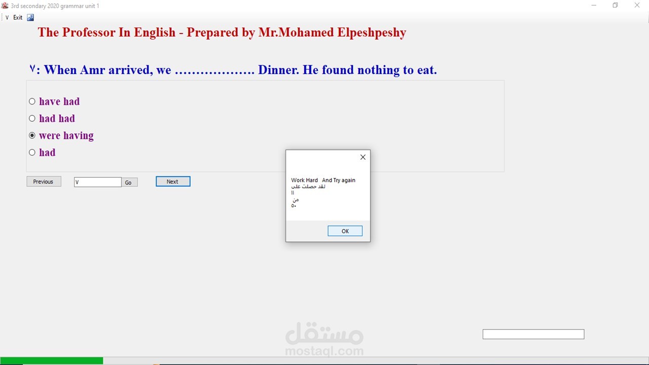 برنامج تم اعداده لمدرس يتم تغذية البرنامج بملف الاسئلة ونوع كل سؤال